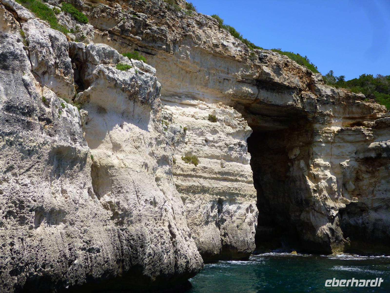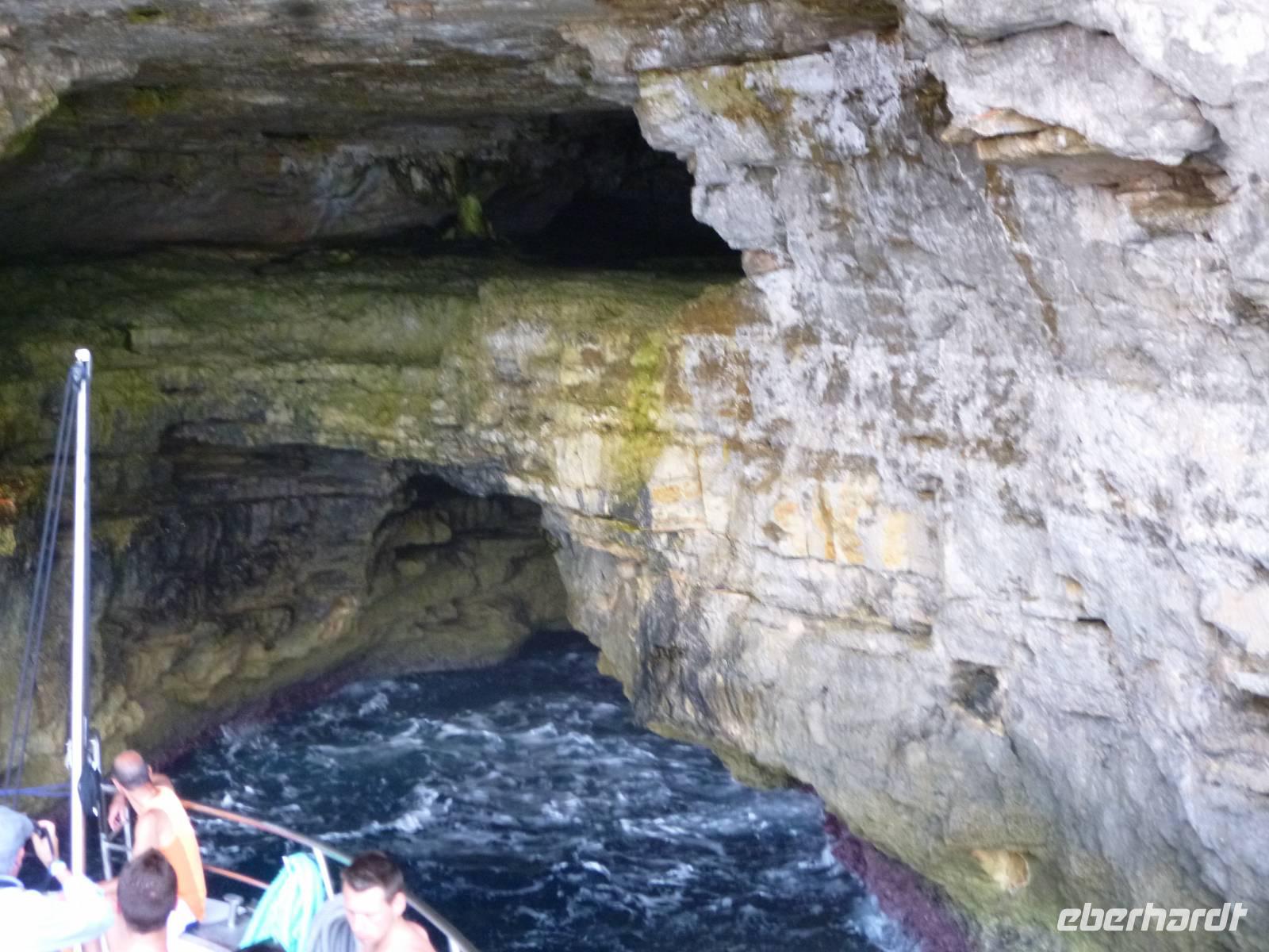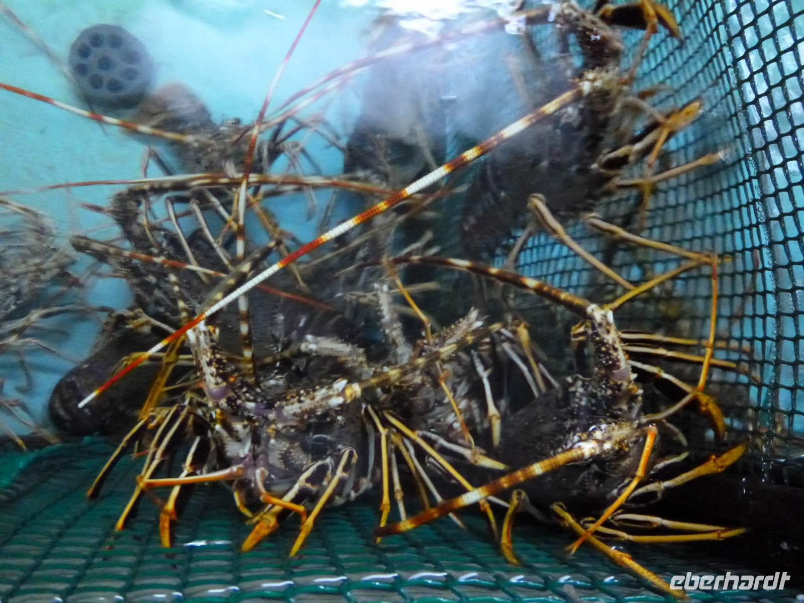 Zur Mittagszeit erreichen wir den kleinen Fischerort Fornells. Hier gibt es nicht nur herrlichen Sandstrand, sondern auch viele Restaurants und Bars. Die bekanntesten unter ihnen bieten als Spezialität Langustensuppe an und mindestens einmal im Jahr kommt der spanische König hierher, um diese Spezialität zu geniessen. Zwischen 50 und 80 € kostet das kulinarische Vergnügen, nix für uns. Bei unserem Rundgang durch den Ort führte uns Roland zum Restaurant eines Freundes und wir durften uns anschauen, wie Langusten gezüchtet werden. Anschließend fuhren wir zum Cap de Cavalleria. Die schroffen Küstenfelsen und die schäumende Brandung bieten ein tolles Naturschauspiel