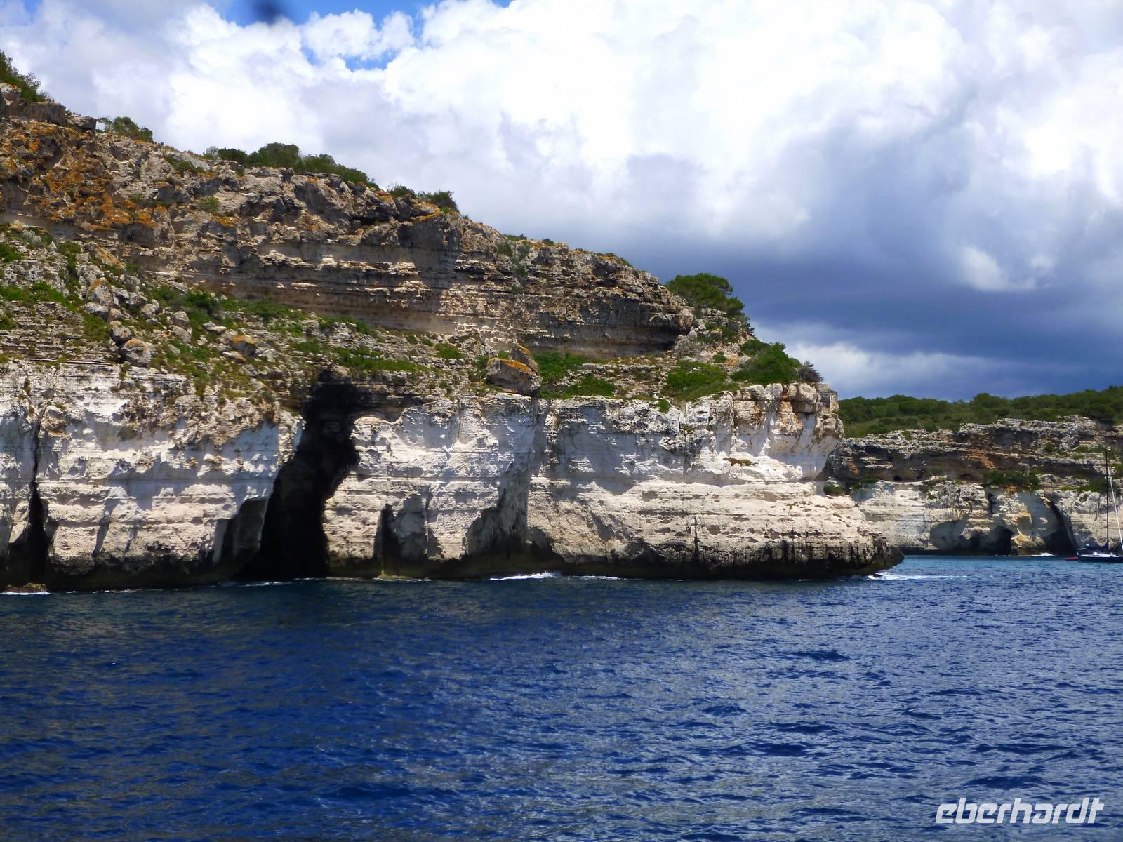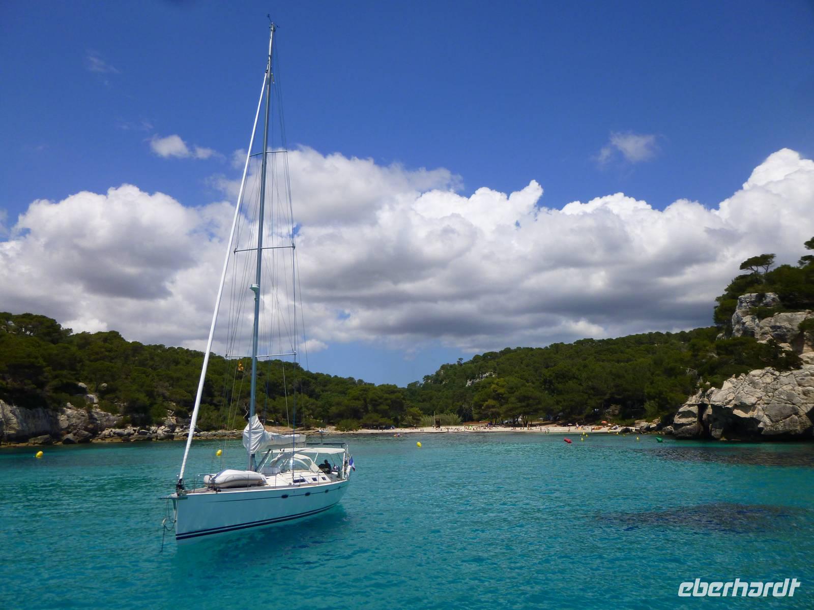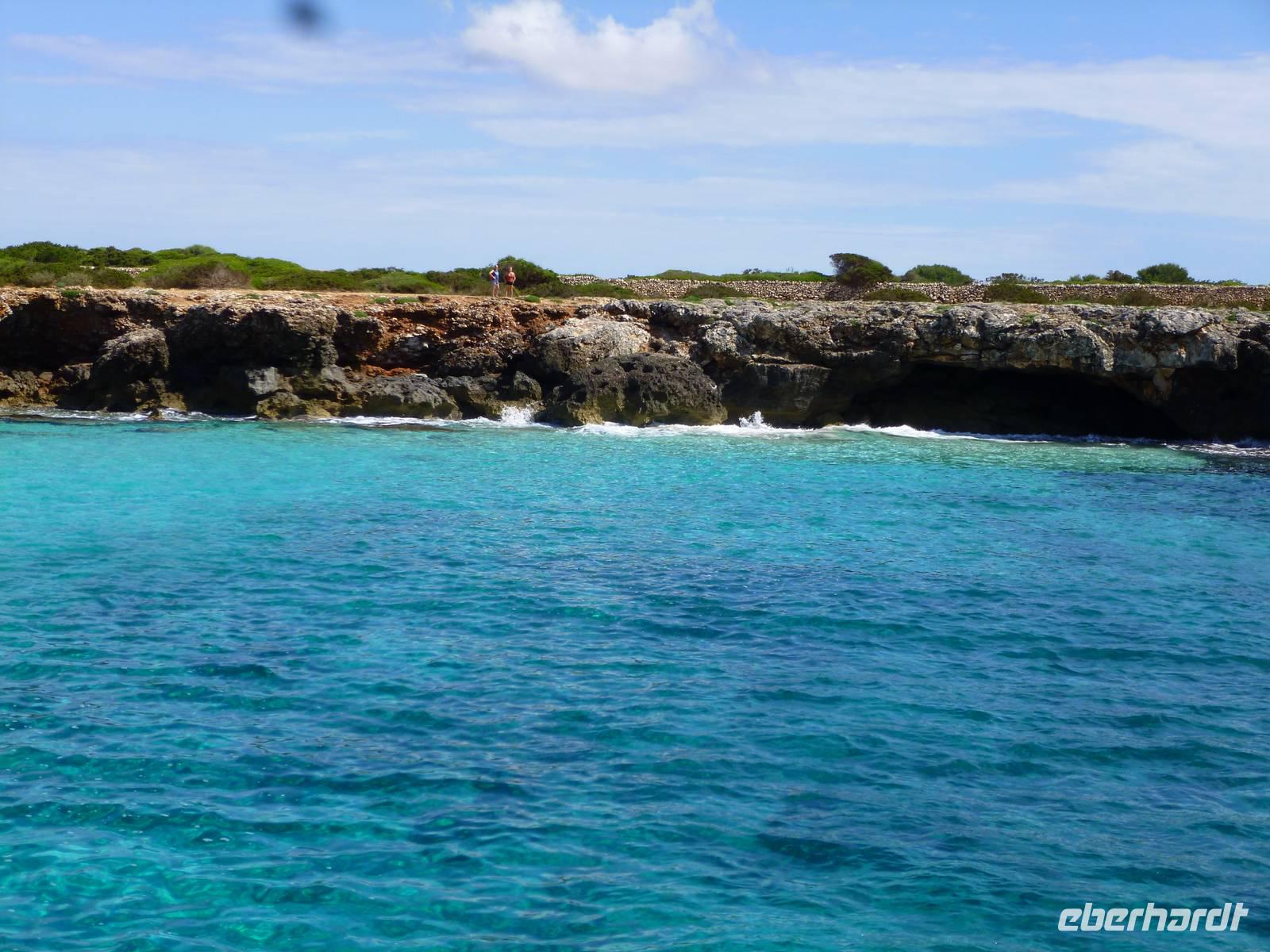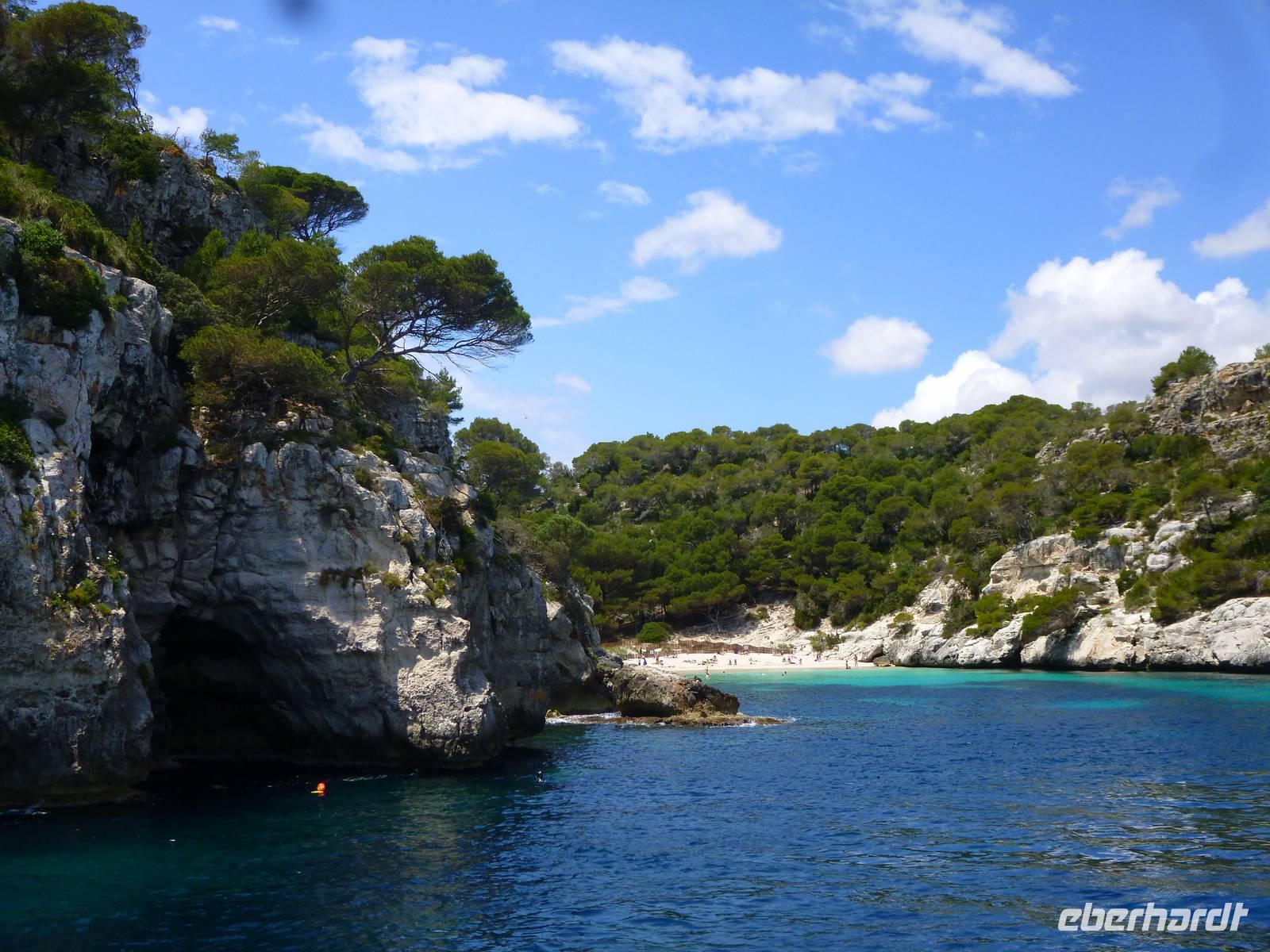 Nach einem gemütlichen Frühstück fahren wir zum Hafen von Ciutadella und besteigen das Ausflugsschiff „San Telmo" die Sonne lacht.Mit unserer Crew schippern wir auf das offene Meer und erreichen nach ca. 90 Minuten die Bucht von Son Saura, unserem ersten Halt. Während die Paella zubereitet wird, wandern wir mit Ronald entlang des Küstenwanderweges zur Naturbucht Es Talaier. Wir erhalten viele Informationen zu Flora und Fauna der Insel und erleben fast unberührte Natur. In der ruhigen Bucht genießen wir dnn ein erfrischendes Bad im türkisfarbenen Wasser.An Bord zurück ließen wir uns eine leckere von der Besatzung zubereitete Paella schmecken. Danach ging es entlang der felsigen Küste bis zur Cala Galdana an der Westküste Menorcas und weiter zur Cala Turqueta, unserem nächsten Stopp. Über kleine Wege entlang der steilen Küste erreichen wir die wunderschöne, kleine ruhige Badebucht mit herrlichem Sandstrand und kleinen Felshöhlen in denen Wanderer, Angler und Jugendliche gelegentlich übernachten. Leider vielen wieder Tropfen vom Himmel, so das viele schnell wieder das schützende Boot aufsuchten. Bei zum Teil ruhiger See erreichen wir am Nachmittag wieder unsere Heimathafen.