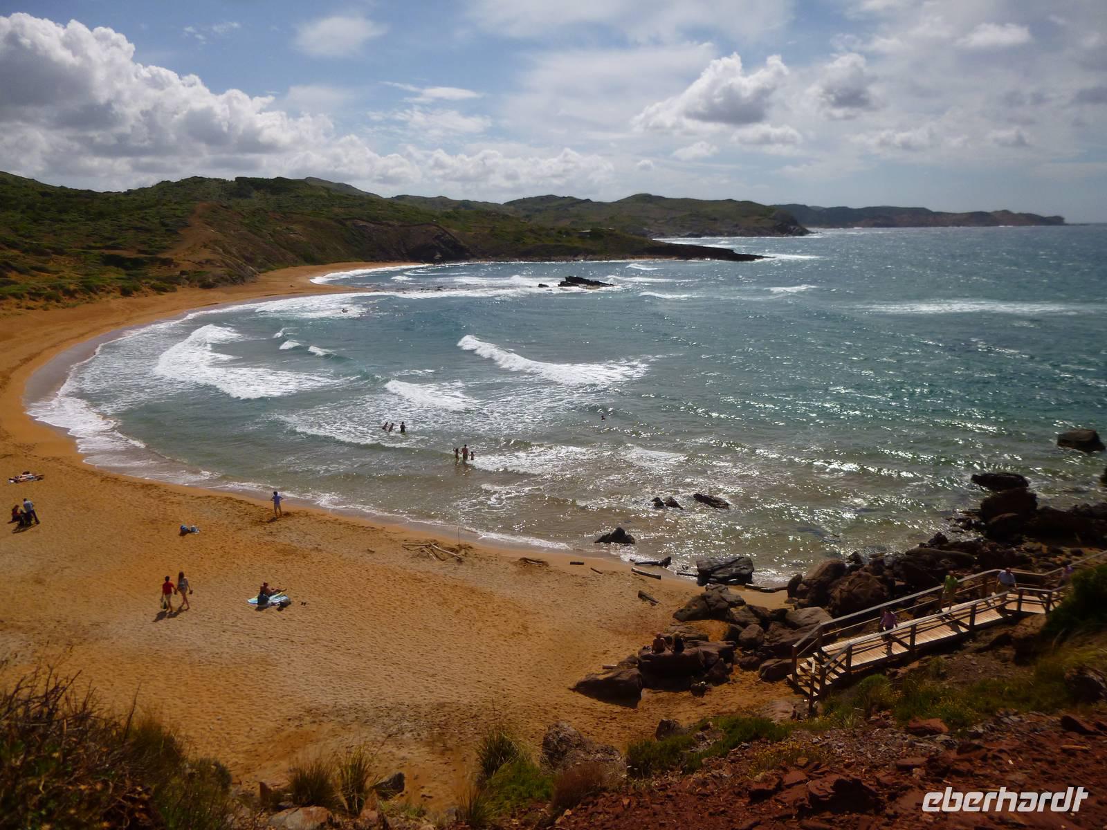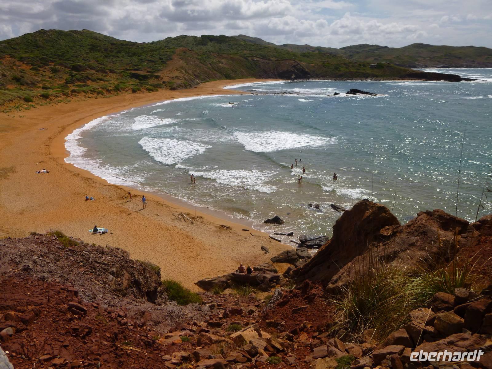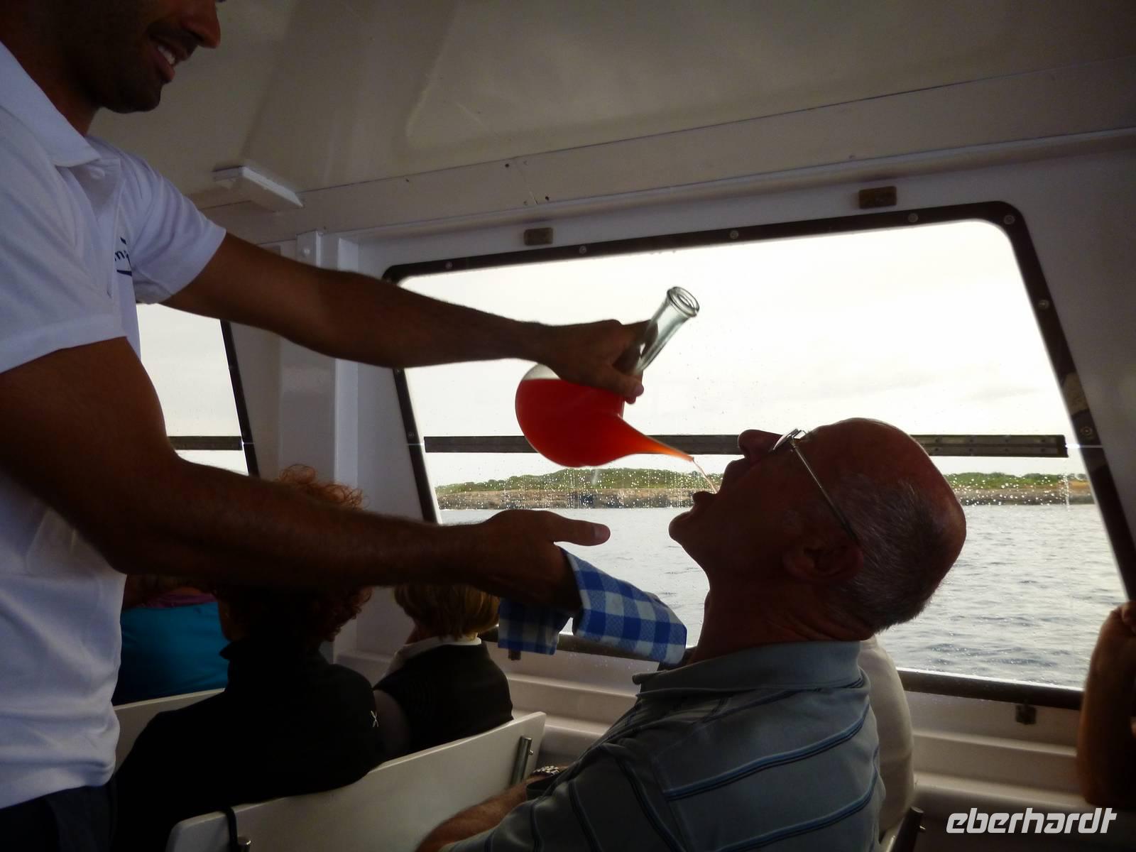 Nach einem gemütlichen Frühstück fahren wir zum Hafen von Ciutadella und besteigen das Ausflugsschiff „San Telmo" die Sonne lacht.Mit unserer Crew schippern wir auf das offene Meer und erreichen nach ca. 90 Minuten die Bucht von Son Saura, unserem ersten Halt. Während die Paella zubereitet wird, wandern wir mit Ronald entlang des Küstenwanderweges zur Naturbucht Es Talaier. Wir erhalten viele Informationen zu Flora und Fauna der Insel und erleben fast unberührte Natur. In der ruhigen Bucht genießen wir dnn ein erfrischendes Bad im türkisfarbenen Wasser.An Bord zurück ließen wir uns eine leckere von der Besatzung zubereitete Paella schmecken. Danach ging es entlang der felsigen Küste bis zur Cala Galdana an der Westküste Menorcas und weiter zur Cala Turqueta, unserem nächsten Stopp. Über kleine Wege entlang der steilen Küste erreichen wir die wunderschöne, kleine ruhige Badebucht mit herrlichem Sandstrand und kleinen Felshöhlen in denen Wanderer, Angler und Jugendliche gelegentlich übernachten. Leider vielen wieder Tropfen vom Himmel, so das viele schnell wieder das schützende Boot aufsuchten. Bei zum Teil ruhiger See erreichen wir am Nachmittag wieder unsere Heimathafen.
