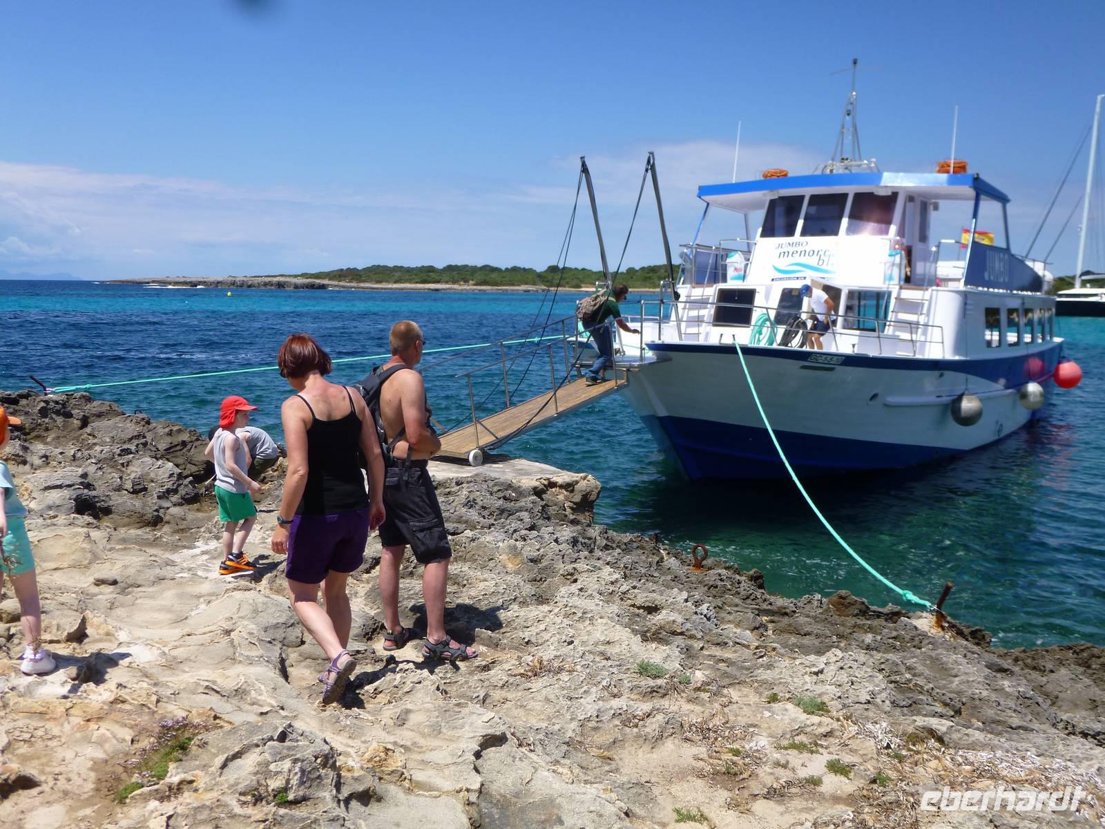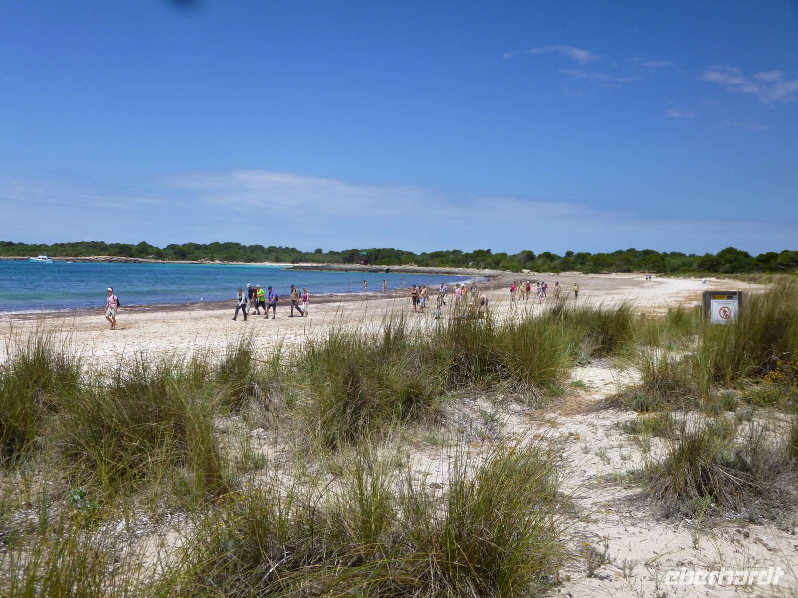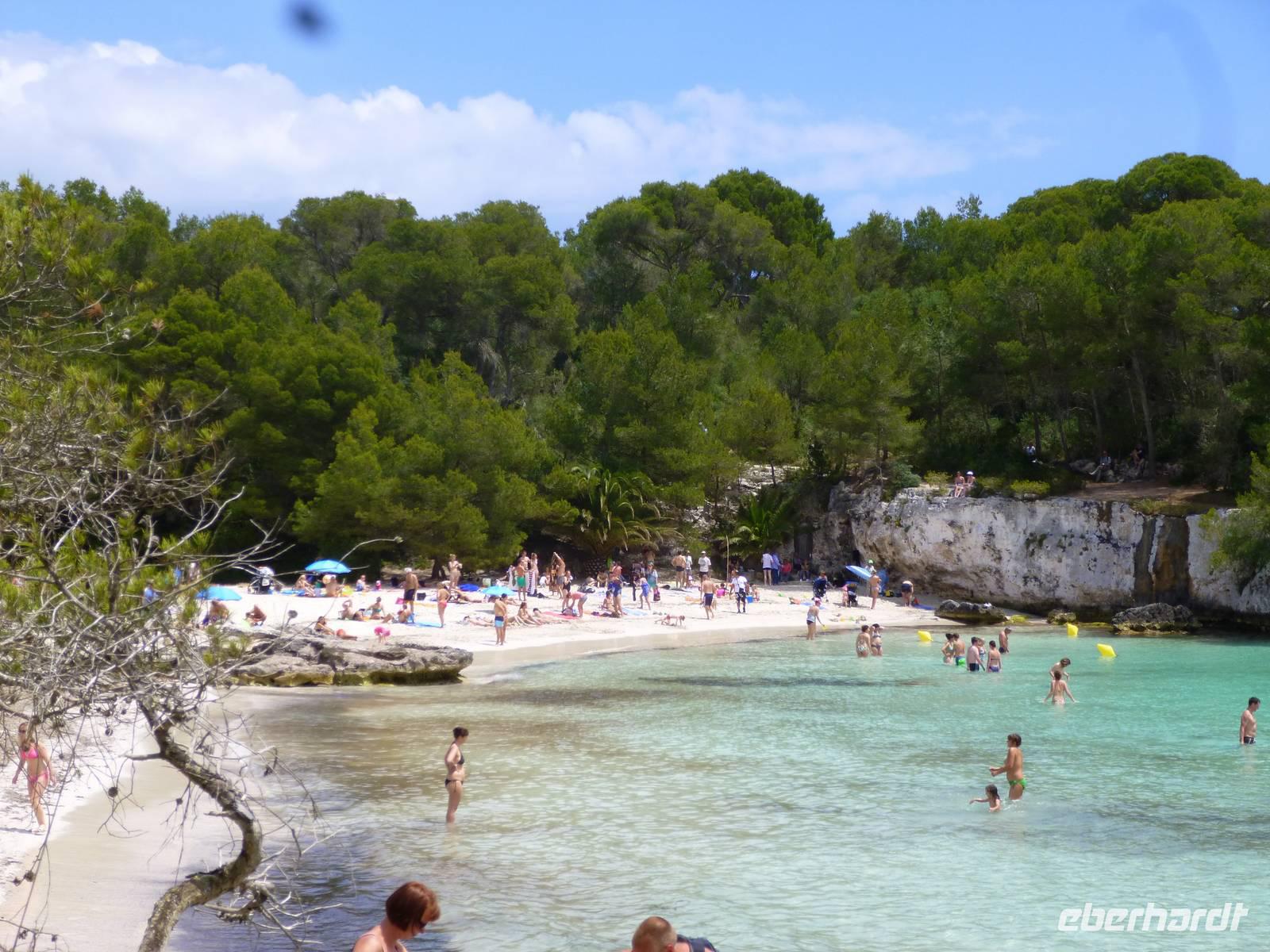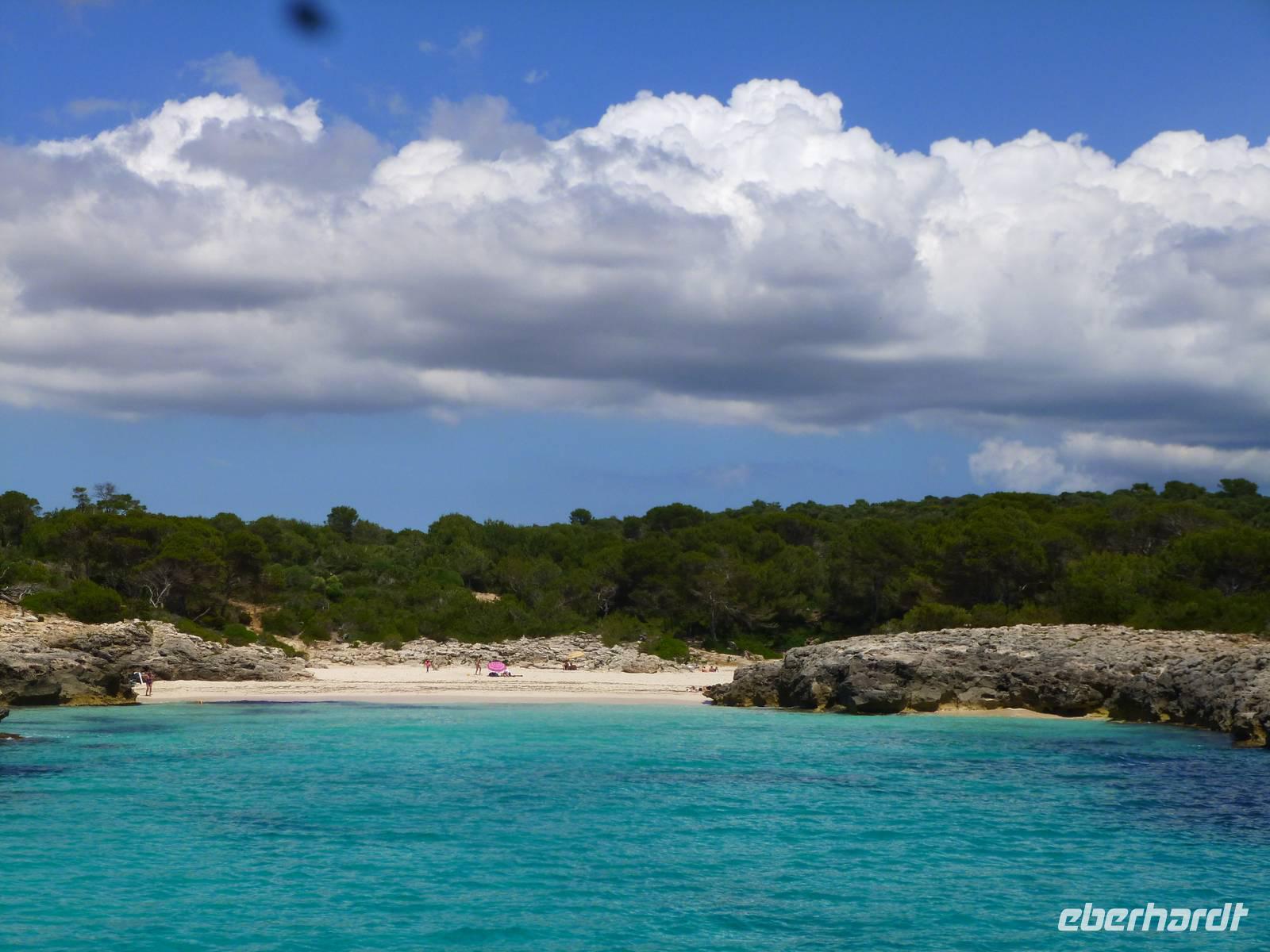 Nach einem gemütlichen Frühstück fahren wir zum Hafen von Ciutadella und besteigen das Ausflugsschiff „San Telmo" die Sonne lacht.Mit unserer Crew schippern wir auf das offene Meer und erreichen nach ca. 90 Minuten die Bucht von Son Saura, unserem ersten Halt. Während die Paella zubereitet wird, wandern wir mit Ronald entlang des Küstenwanderweges zur Naturbucht Es Talaier. Wir erhalten viele Informationen zu Flora und Fauna der Insel und erleben fast unberührte Natur. In der ruhigen Bucht genießen wir dnn ein erfrischendes Bad im türkisfarbenen Wasser.An Bord zurück ließen wir uns eine leckere von der Besatzung zubereitete Paella schmecken. Danach ging es entlang der felsigen Küste bis zur Cala Galdana an der Westküste Menorcas und weiter zur Cala Turqueta, unserem nächsten Stopp. Über kleine Wege entlang der steilen Küste erreichen wir die wunderschöne, kleine ruhige Badebucht mit herrlichem Sandstrand und kleinen Felshöhlen in denen Wanderer, Angler und Jugendliche gelegentlich übernachten. Leider vielen wieder Tropfen vom Himmel, so das viele schnell wieder das schützende Boot aufsuchten. Bei zum Teil ruhiger See erreichen wir am Nachmittag wieder unsere Heimathafen.