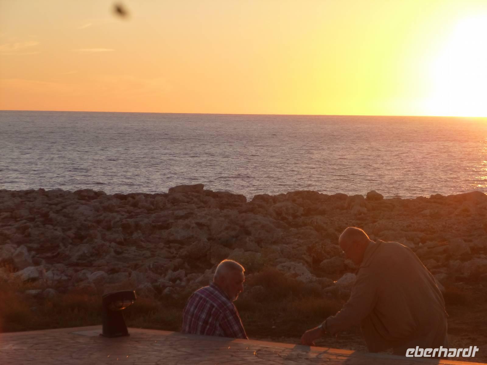 Bei einer kleinen Wanderung zur Bucht, konnten wir einen wunderschönen breiten Sandstrand entdecken und eine atemberaubende Aussicht auf die nördliche Küste genießen. Nach dem Abendessen traf sich ein Teil unserer Reisegruppe am felsigen Küstenstreifen von Cala Blanca um den fantastischen Sonnenuntergang zu genießen.