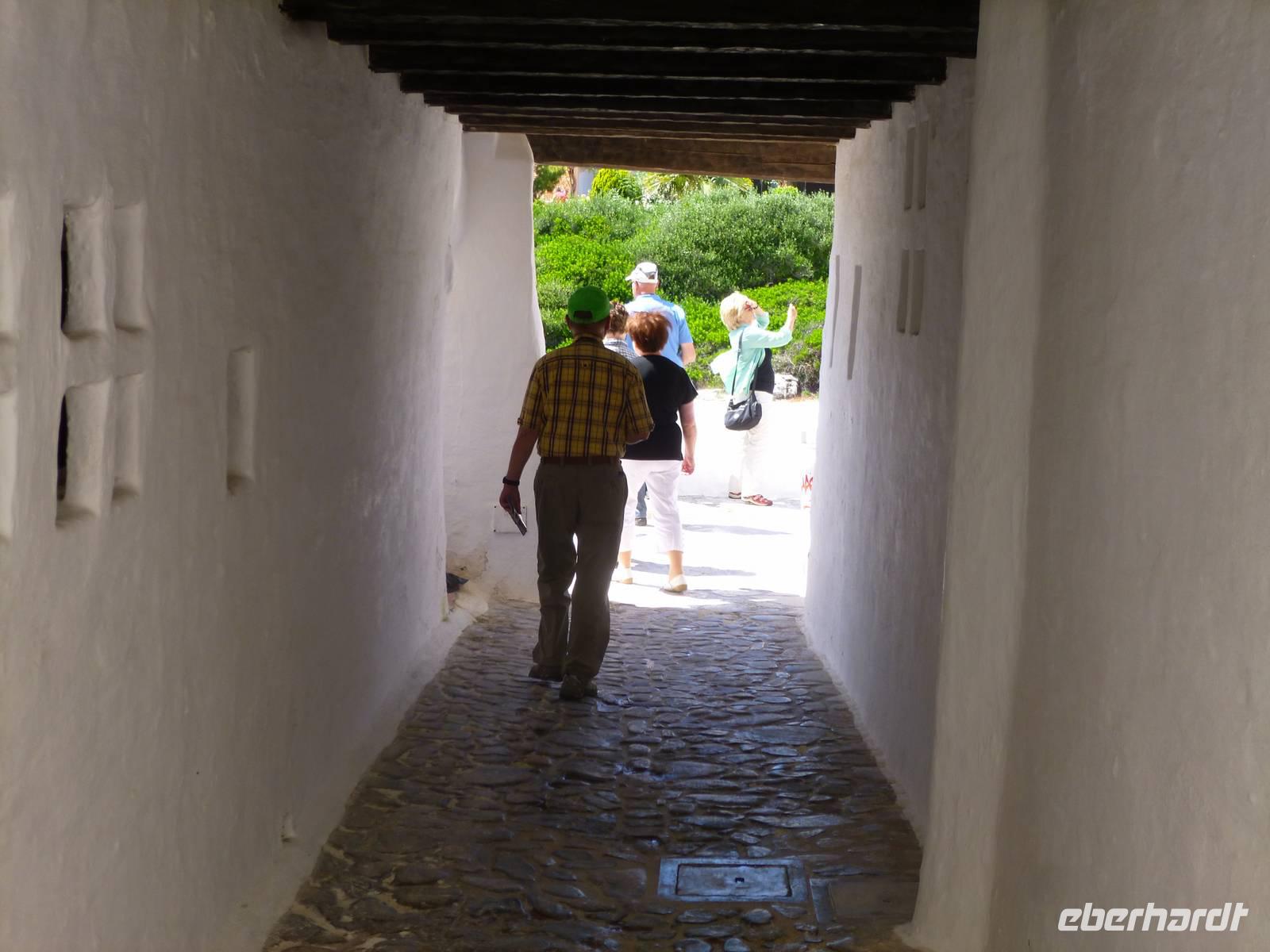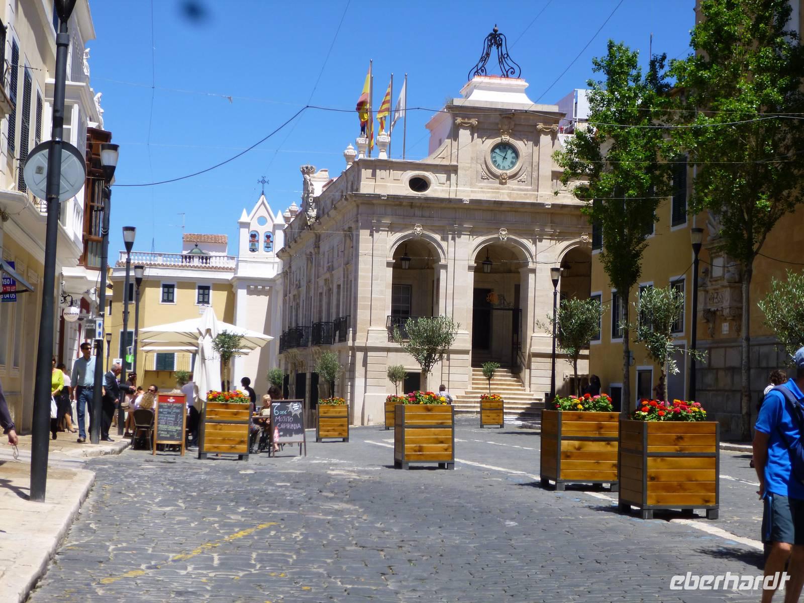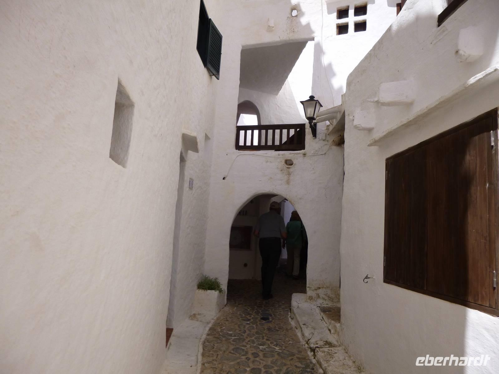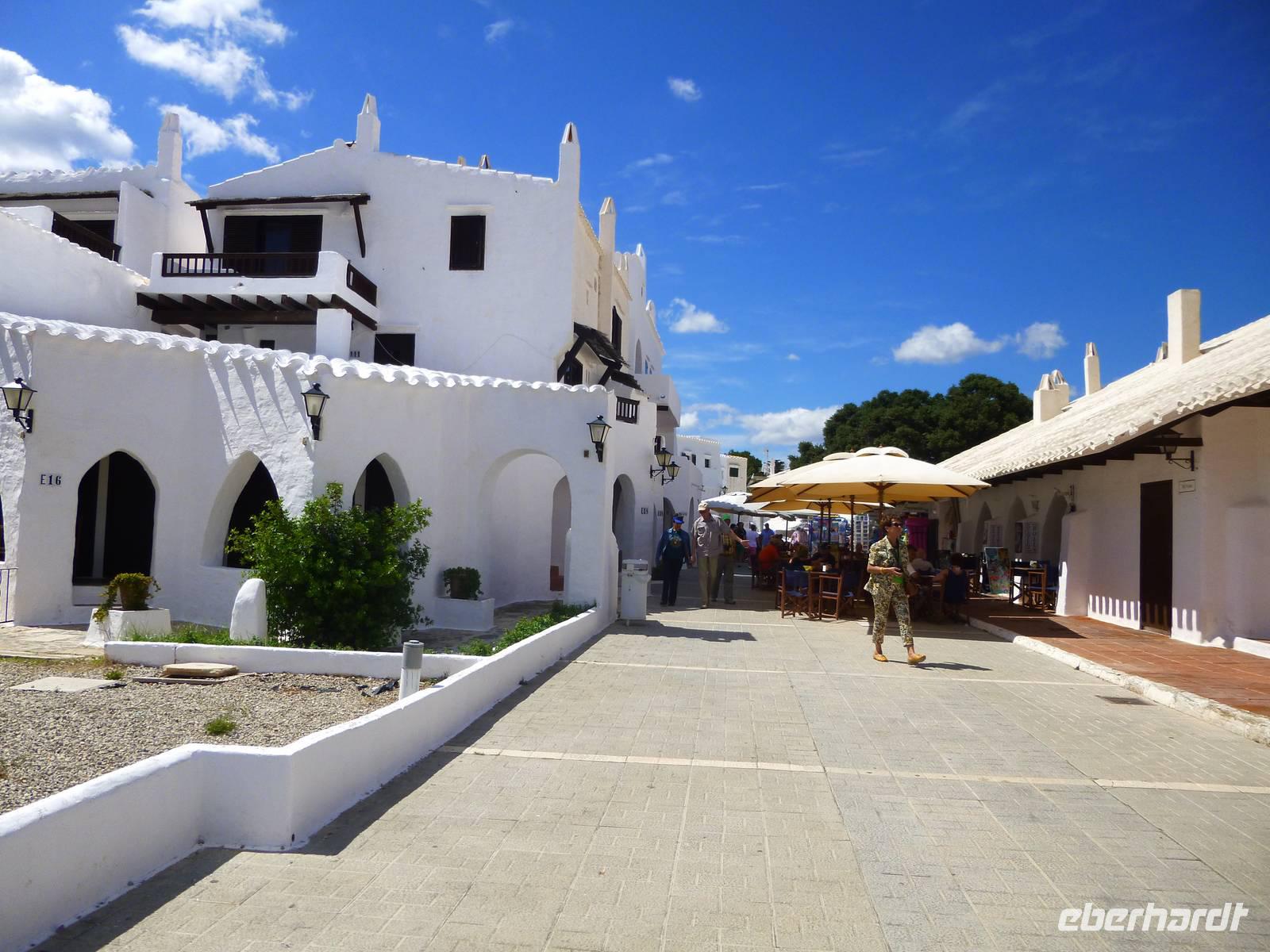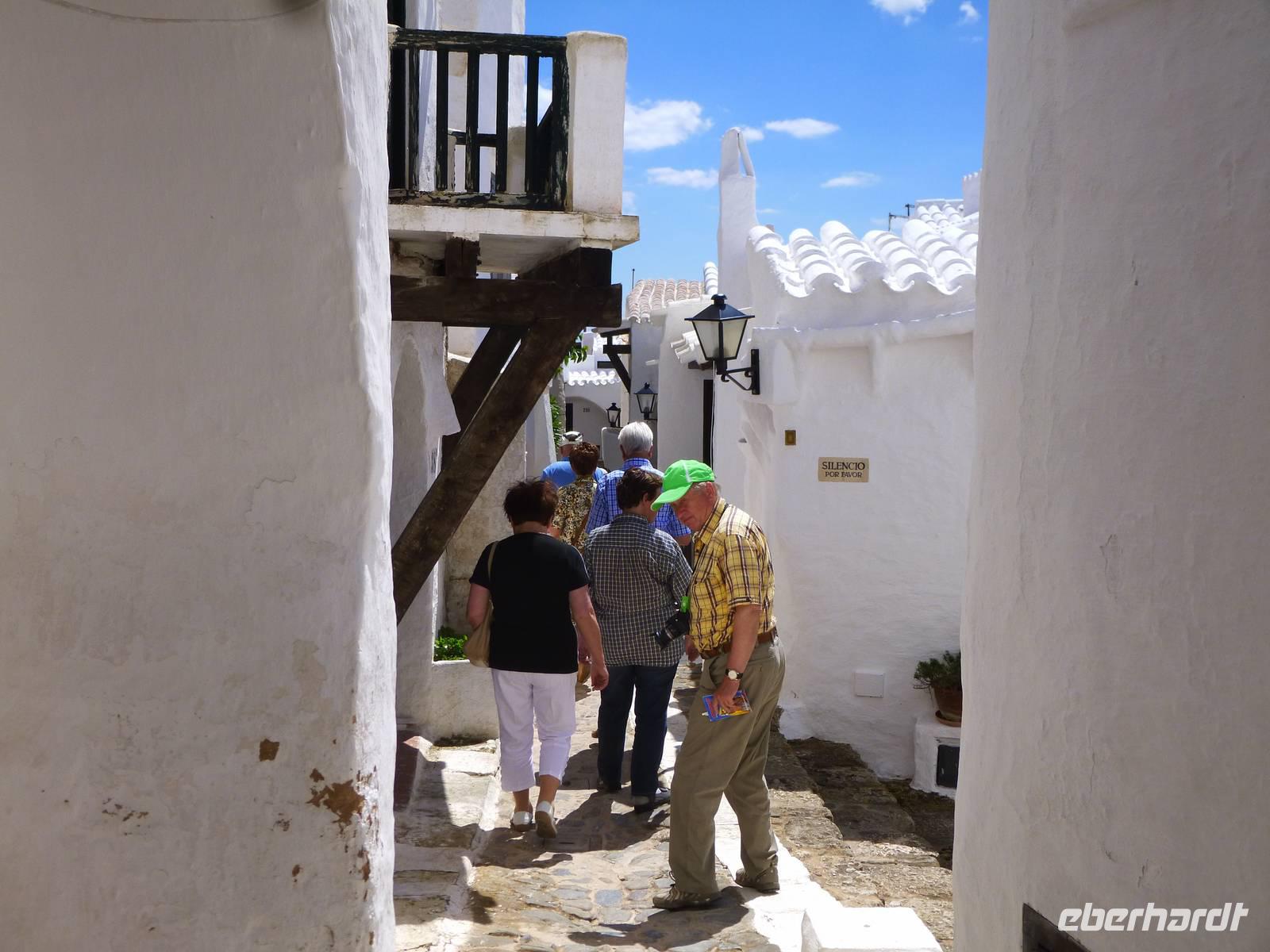 In der Destillerie ''Xoriguer'' stärkten wir uns bei einem kräftigen Schluck Gin oder Hierbas für den anschließenden Stadtrundgang. Die Placa de s'Esplanada ist der Hauptplatz der Stadt. Von hier führte unser Weg durch die engen Straßen der Inselhauptstadt vorbei am alten Theater - 1829 erbaut, zur sehenswerten Marienkirche und zum Karmelitenkloster. Die schönsten Bauwerke und Paläste stammen aus dem 18. Jahrhundert. Am traditionellen Fischmarkt endet unser gemeinsamer Rundgang und jeder hat Zeit Mahon ein wenig auf eigene Faust zu erkunden.Nach der kleinen Mittagspause besuchen wir den Küstenort Binibeca - das weiße Dorf. Alle Häuser sind in einem strahlenden weiss gestrichen und die Straßen des Ortes sind so schmal, das man nur hintereinander laufen kann.