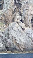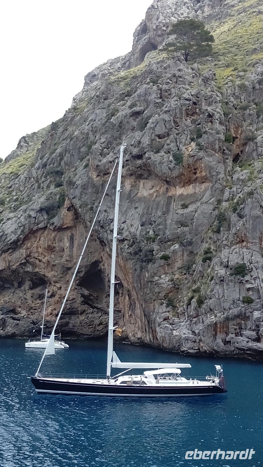 -Schiffffahrt entlang der Steilküste nach Port de Soller in einzigem roten Schiff der Firma, die sich "Blaue Schiffe" nennt