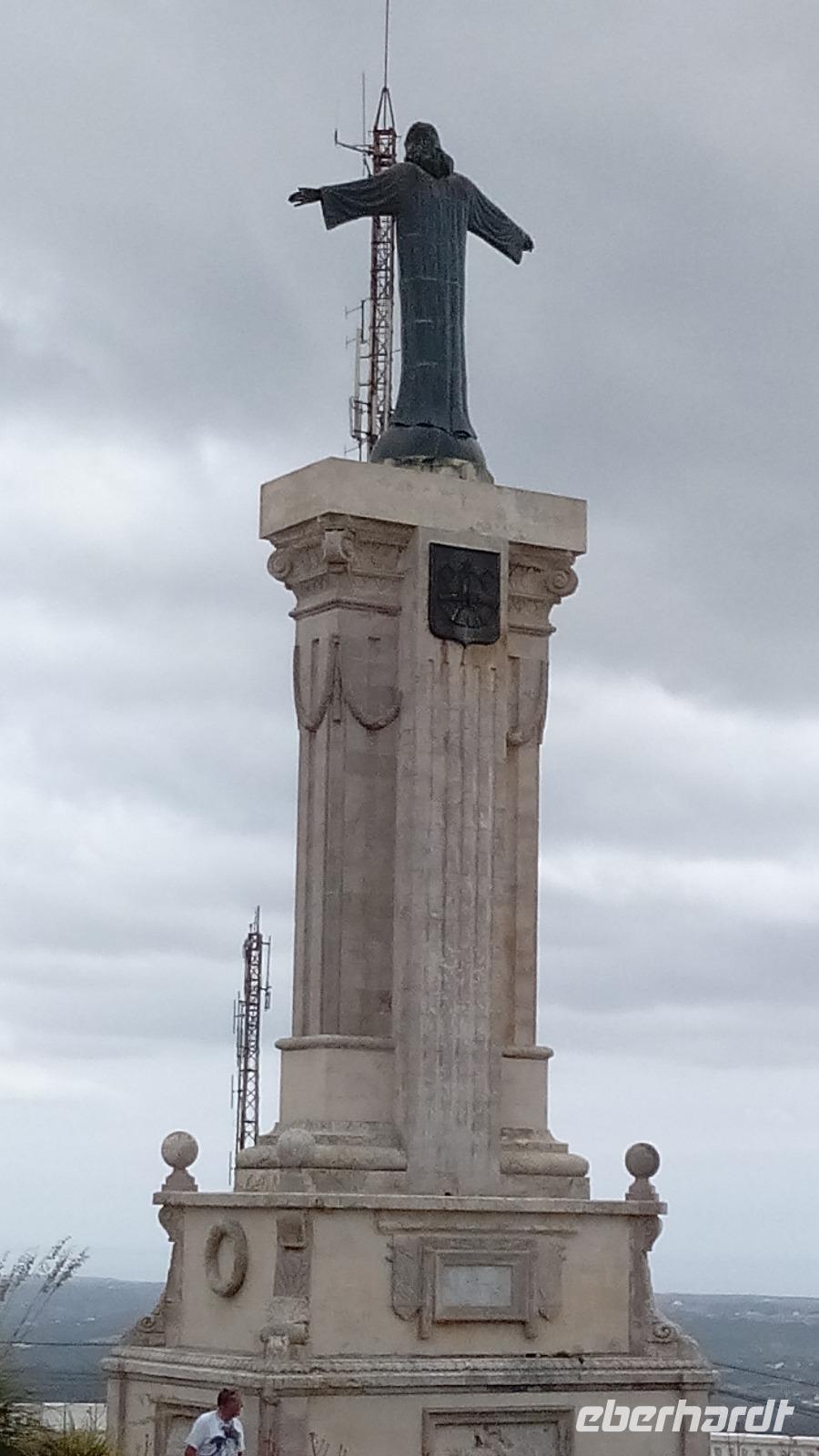 -Fahrt zum höchsten Berg Menorcas - El Toro: wunderbare Aussicht ringsum auf grüne Ebenen, weiße Dörfer, gleißende Wasseroberfläche; verkleinerte Kopie der Christusstatue von Rio de Janeiro, Klosterkirche; leider ist der Gipfel voll von allerlei (Mobilfunk- etc.)Antennenarten