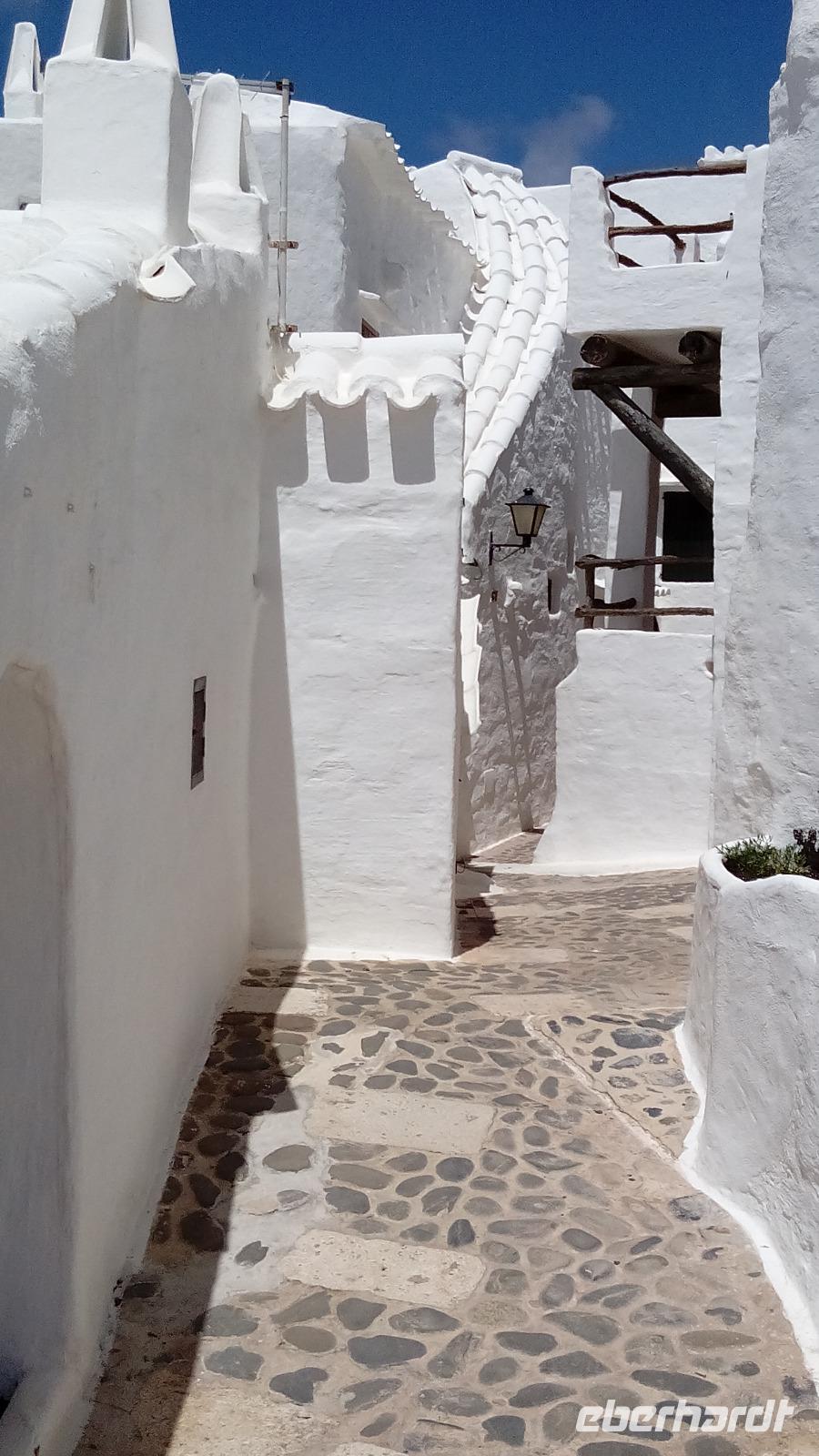 -Binibeca (bini = Sohn von): bildhübsches, für Tourismus erbautes, künstliches Dorf, kein Haus ist wie das andere, alle weiß (sogar die Dächer), verwinkelt und klein, überall Schilder: Silencio, por favor.
