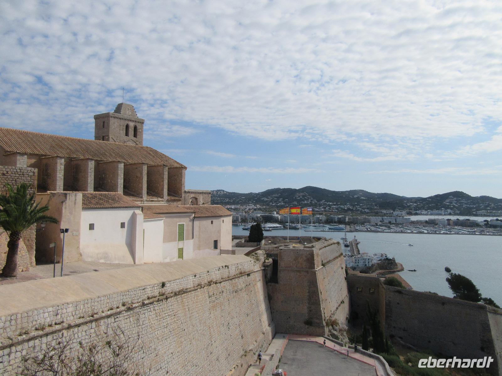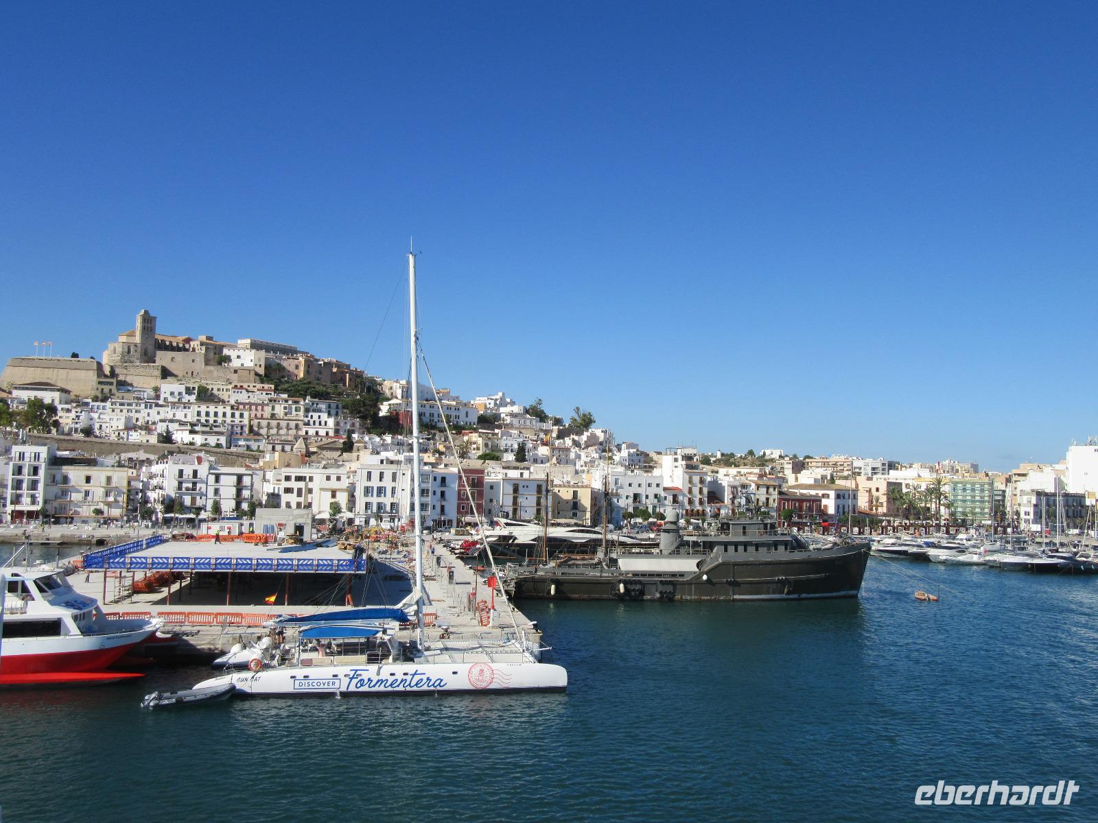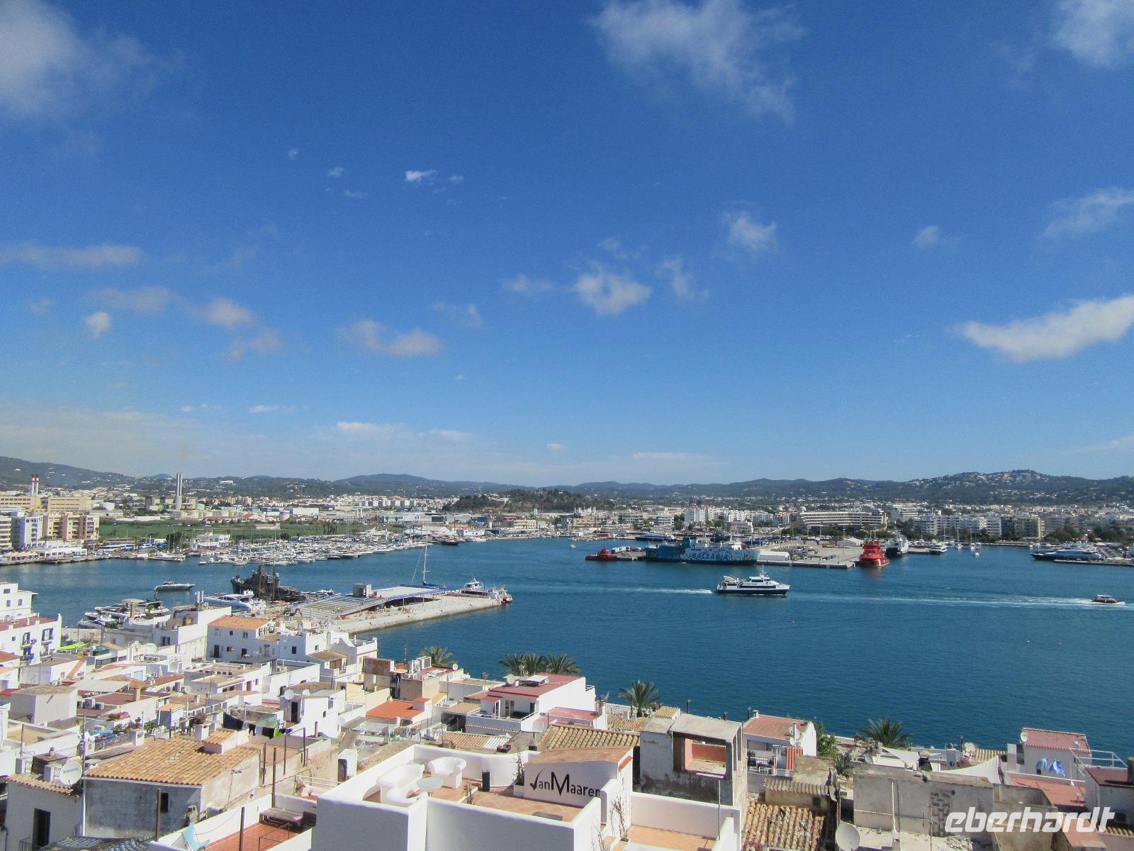 In Ibiza angekommen, empfängt uns ein wunderschöner Tag. Die Sonne scheint und wir nutzen das herrliche Wetter und machten ein Spaziergang entlang der Promenade bis zur Altstadt Ibizas. Da haben wir die alten Mauern gesehen und das alte Tor der Stadt überquert. Anschließend bummelten wir über einen typischen Markt.