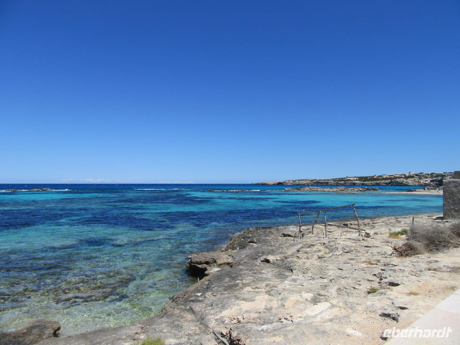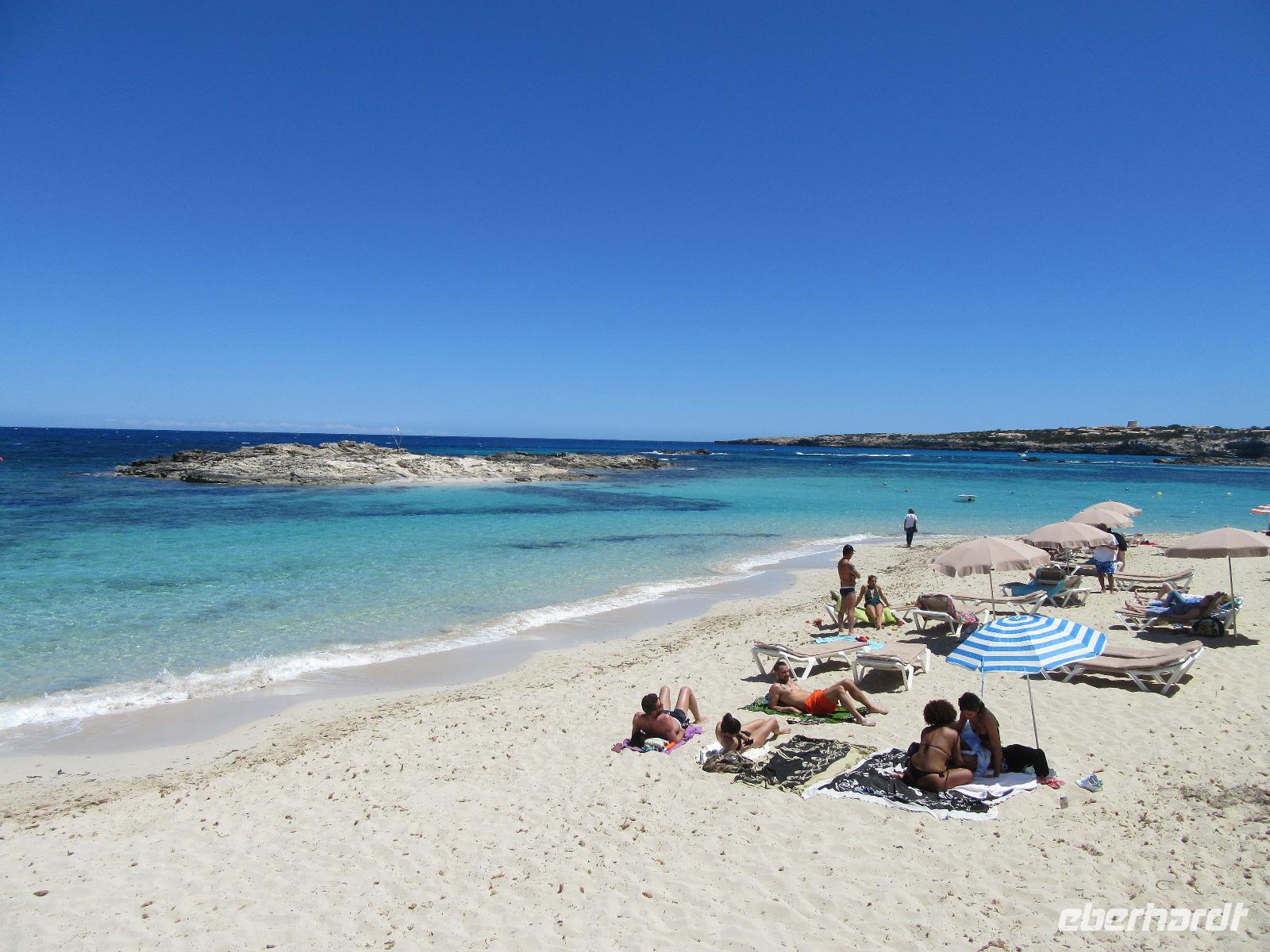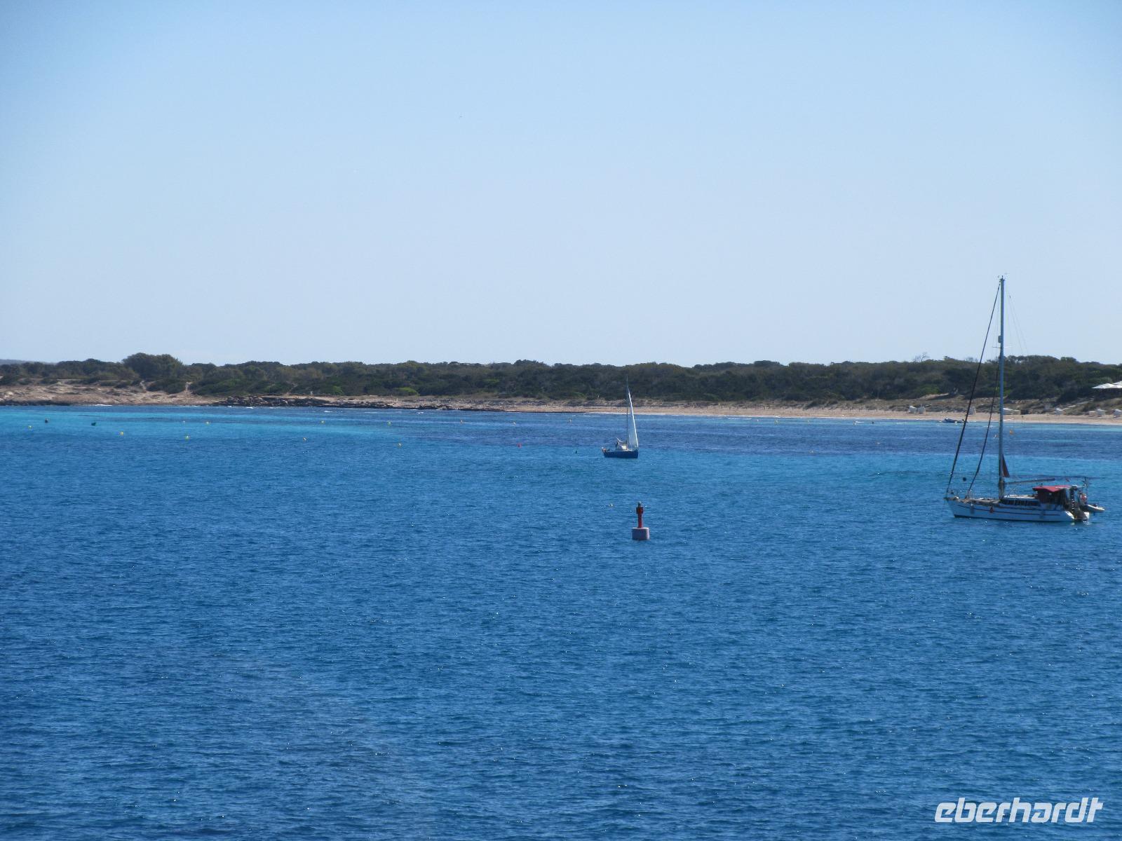 Danach fuhren wir die Hügel hinunter und sahen die bekanntesten Strände "Es Caló de San Agustí" und "Migjorn", bevor wir weiter nach Es Pujols fuhren. Da hatten wir Freizeit für selbständige Erkundungen, wie beispielsweise ein Bad zu nehmen, den traditionellen Fischerhafen (Varadero) zu sehen und etwas essen zu gehen.