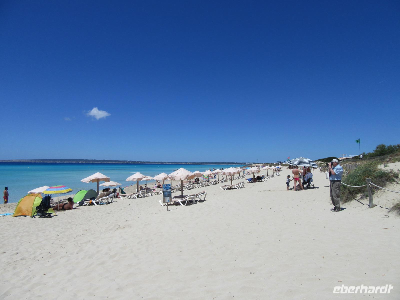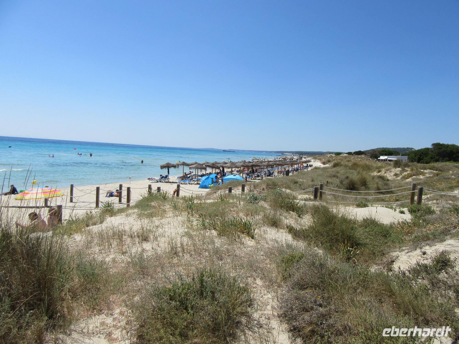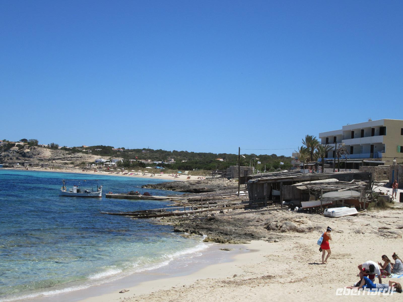 Danach fuhren wir die Hügel hinunter und sahen die bekanntesten Strände "Es Caló de San Agustí" und "Migjorn", bevor wir weiter nach Es Pujols fuhren. Da hatten wir Freizeit für selbständige Erkundungen, wie beispielsweise ein Bad zu nehmen, den traditionellen Fischerhafen (Varadero) zu sehen und etwas essen zu gehen.