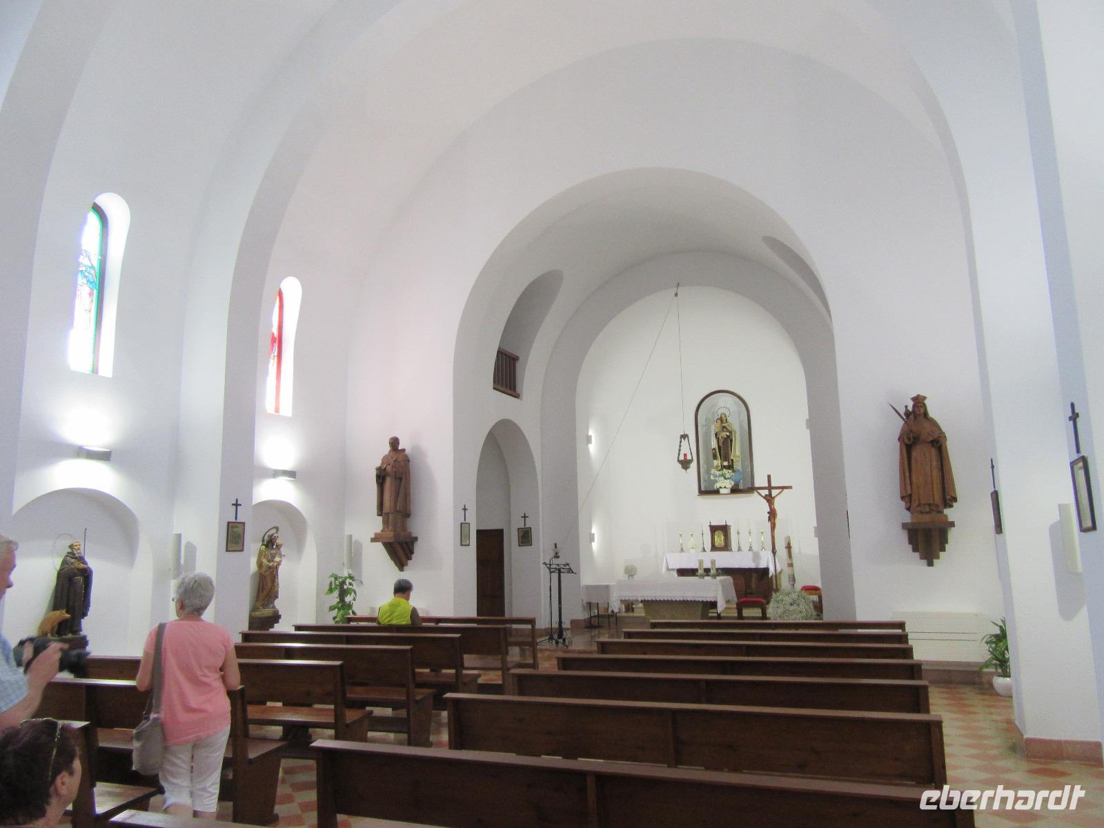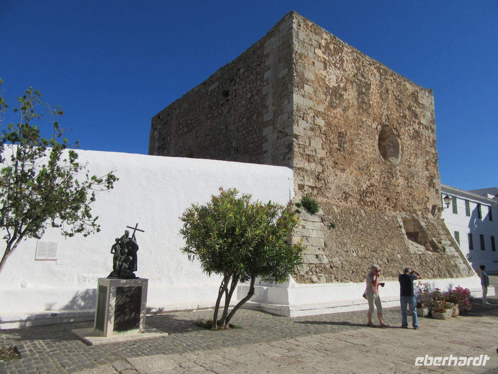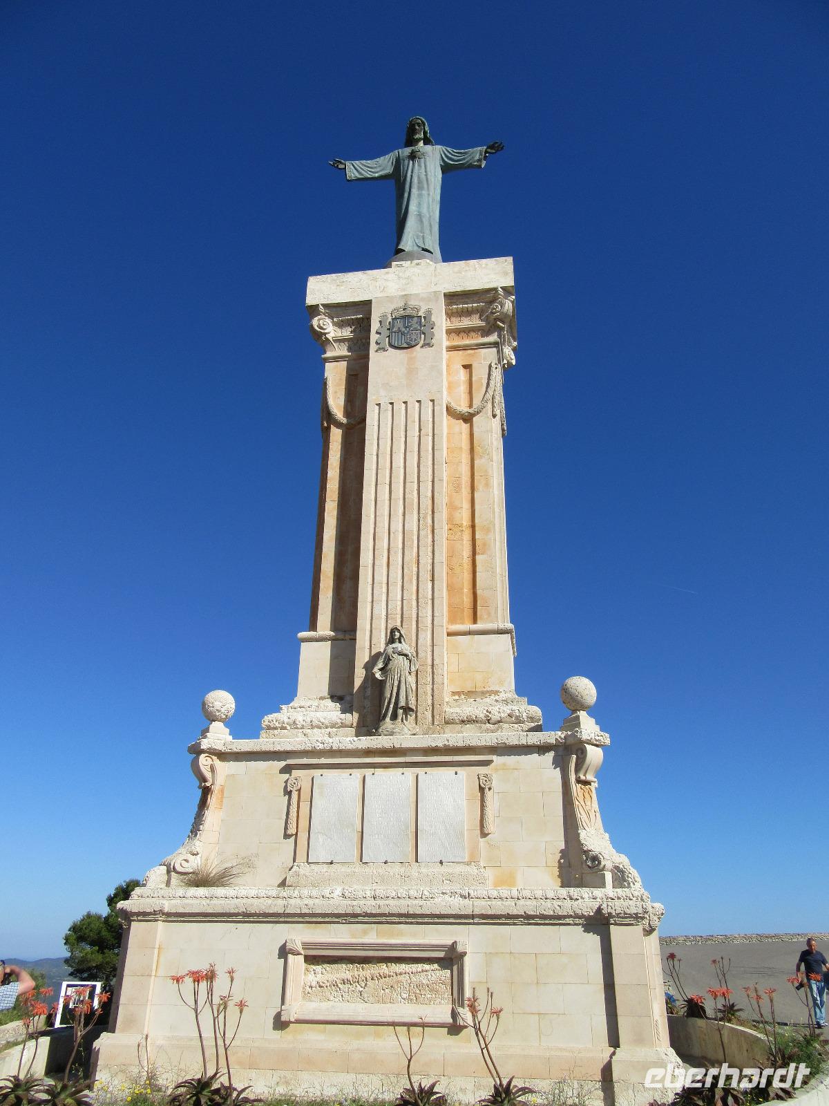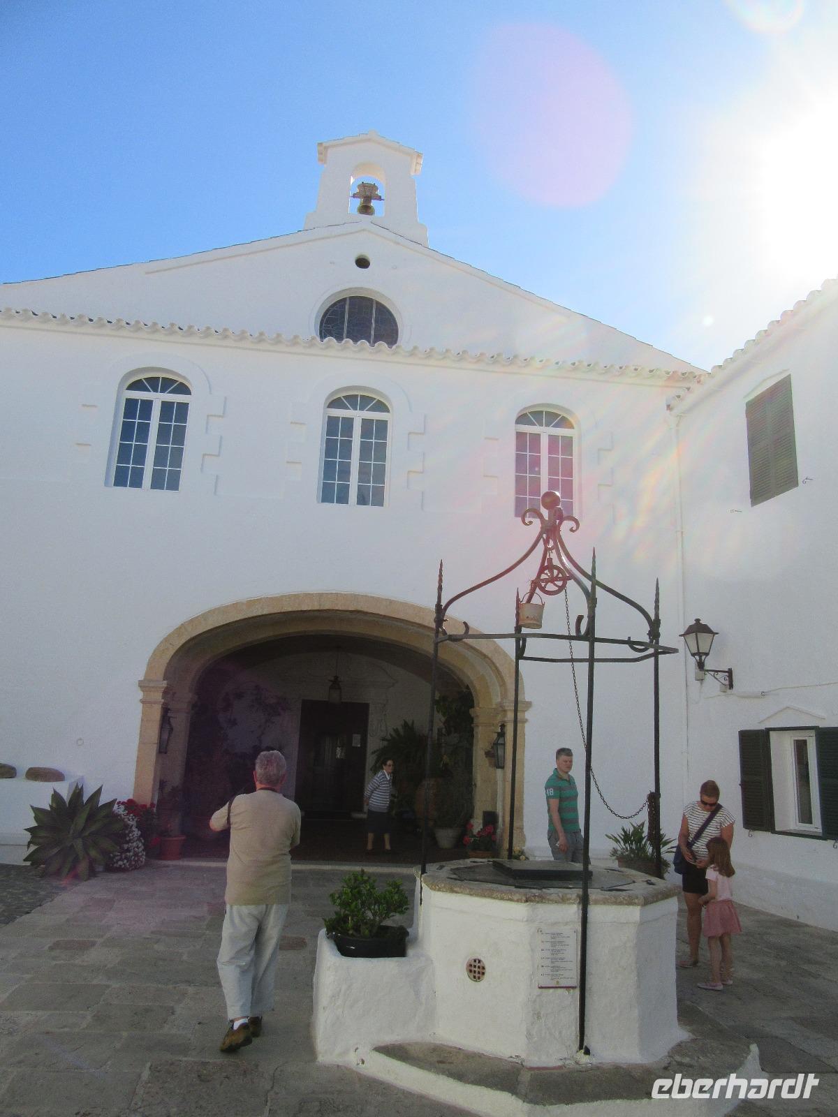 Die Vögel sangen und wir standen auf, um Menorca zu entdecken. Wir fuhren erst zum höchsten Punkt der Insel, dem Berg Toro, der sich in 357 Metern über dem Meeresspiegel befindet. Da hatten wir einen wunderschönen Ausblick auf die ganze Insel mit dem Fernsehturm, dem alten Turm der englischen Militärischen Festung und dem Christus-Denkmal. Dieses Denkmal erinnert an die Gefallenen im Krieg gegen Marokko und Argel. Außerdem haben wir den Santuari Nuestra Señora del Toro (Schutzmadonna von dem Stier-Berg) besucht, die neben dieser englischen Festung liegt. In dieser Kirche konnten wir die alten Gemäldeteppiche, die Schutzmadonna und die kleine Anlage sehen, wo die Madonna damals gefunden wurde.