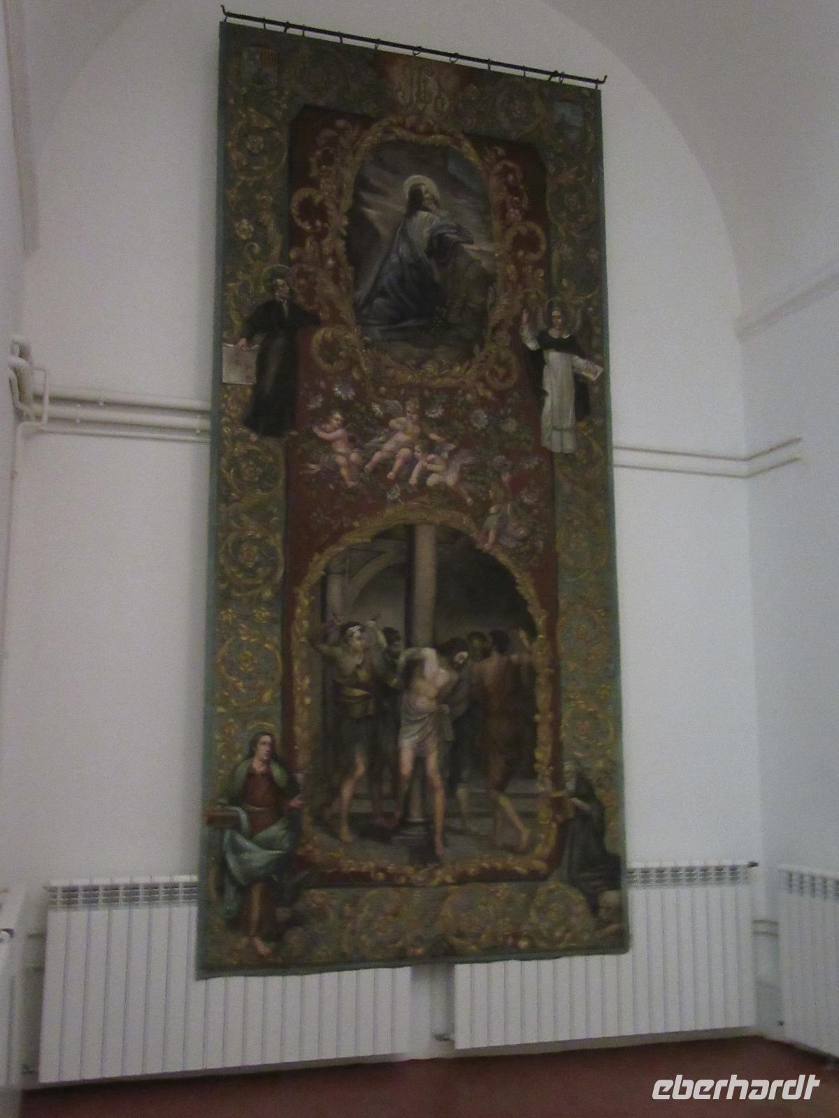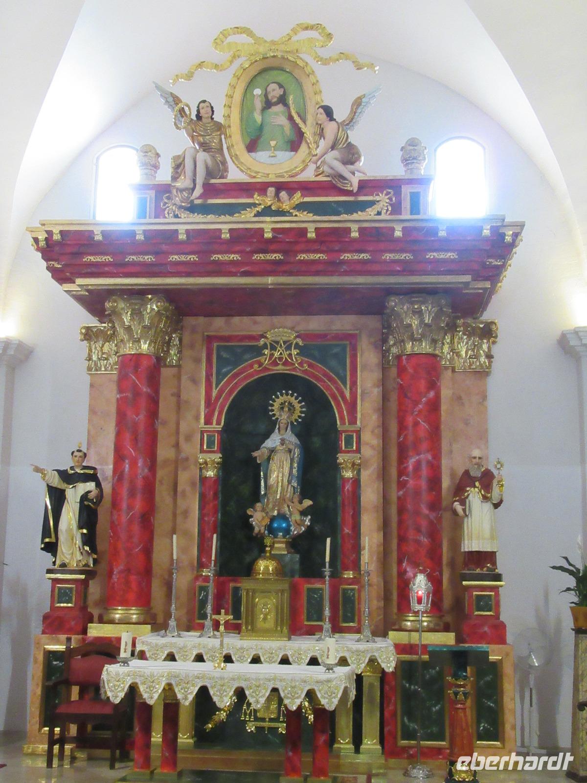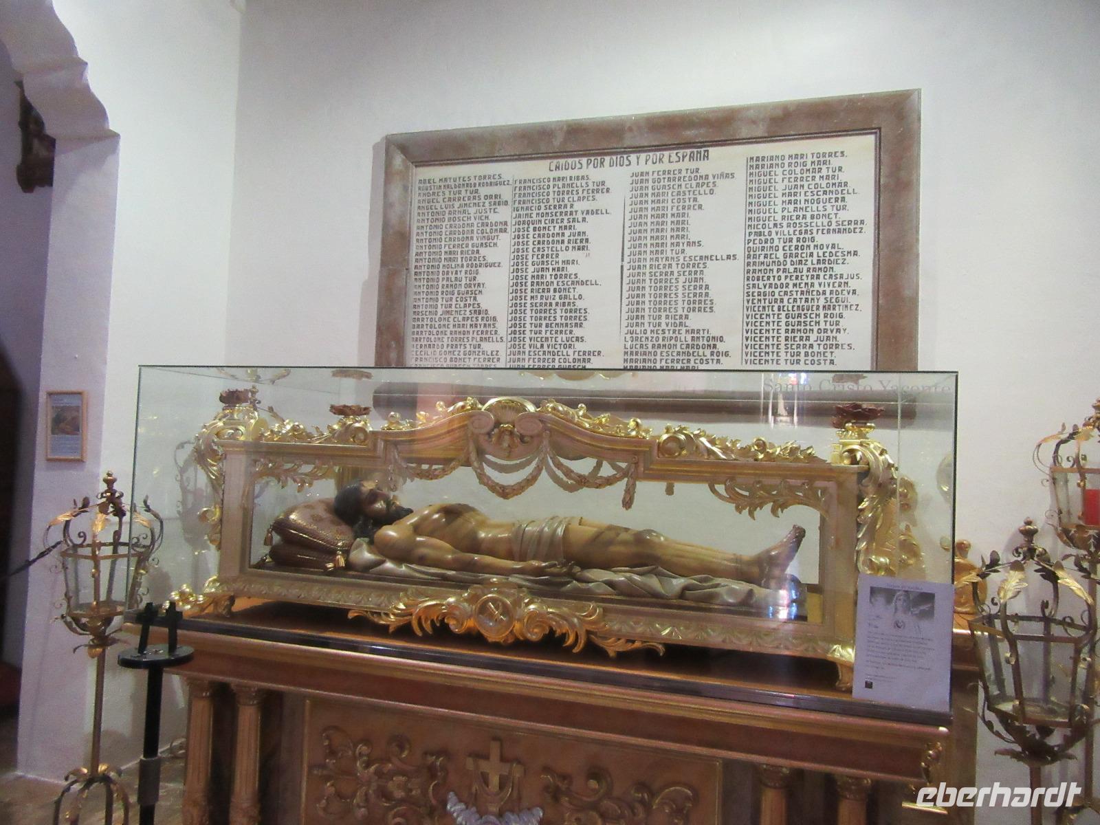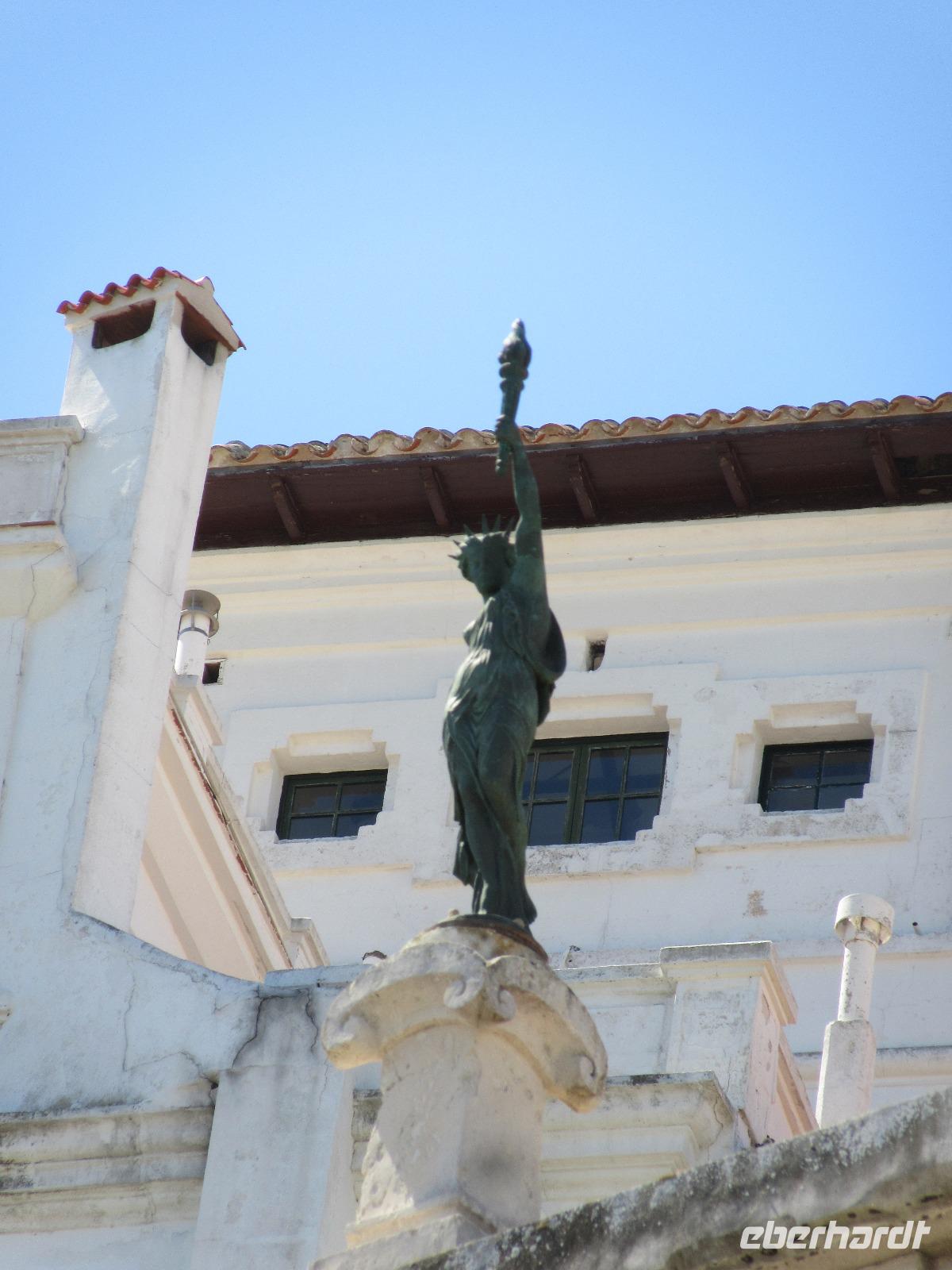 Die Vögel sangen und wir standen auf, um Menorca zu entdecken. Wir fuhren erst zum höchsten Punkt der Insel, dem Berg Toro, der sich in 357 Metern über dem Meeresspiegel befindet. Da hatten wir einen wunderschönen Ausblick auf die ganze Insel mit dem Fernsehturm, dem alten Turm der englischen Militärischen Festung und dem Christus-Denkmal. Dieses Denkmal erinnert an die Gefallenen im Krieg gegen Marokko und Argel. Außerdem haben wir den Santuari Nuestra Señora del Toro (Schutzmadonna von dem Stier-Berg) besucht, die neben dieser englischen Festung liegt. In dieser Kirche konnten wir die alten Gemäldeteppiche, die Schutzmadonna und die kleine Anlage sehen, wo die Madonna damals gefunden wurde.