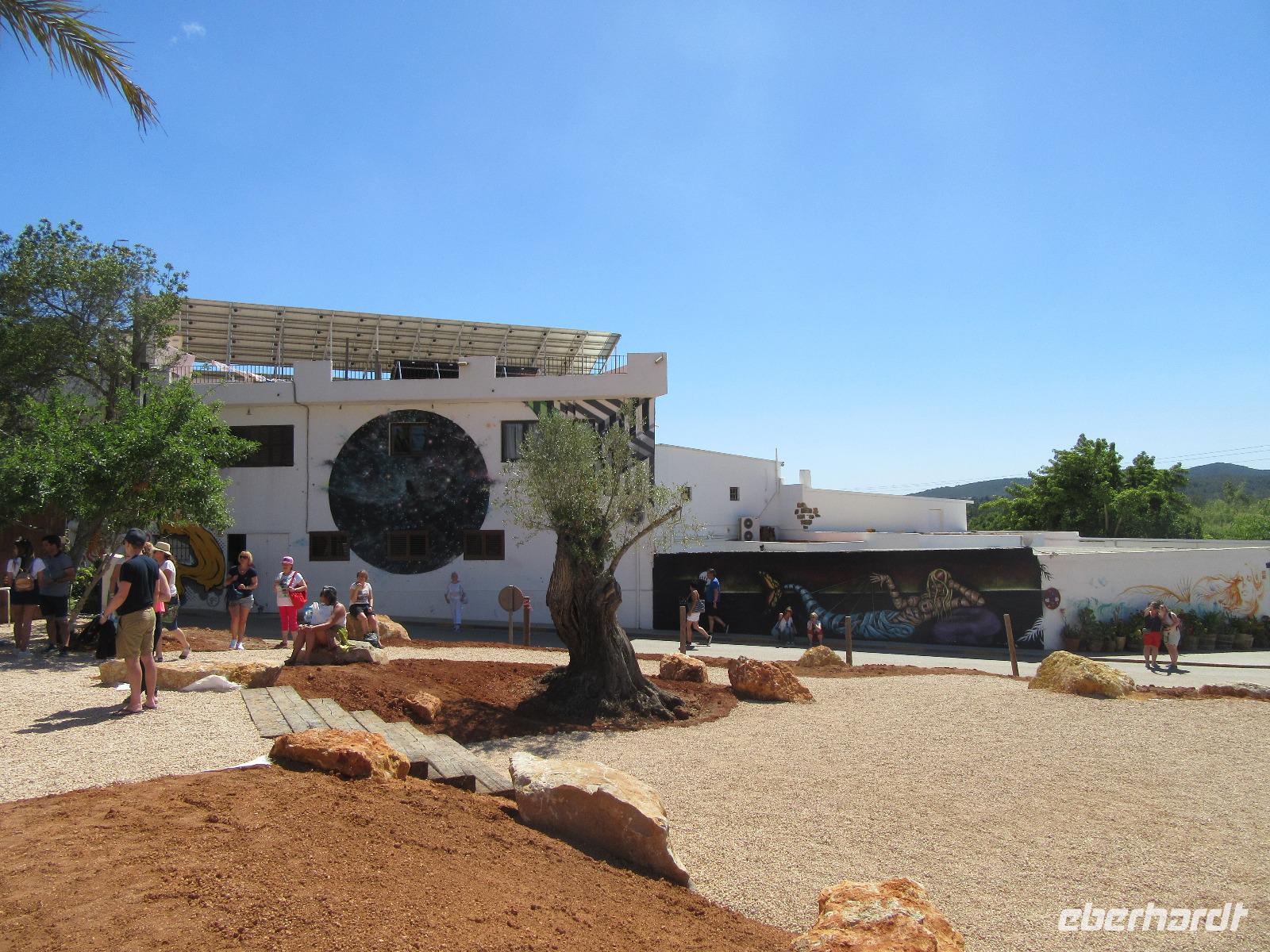 Danach durchquerten wir Sant Josep, sahen die Bucht von Sant Antoni, wo sich das bekannte Café del Mar befindet und ein besonderer Ort, um den Sonnenuntergang zu sehen. Wir fuhren weiter über Santa Gertrudis, aßen in Sant Miguel, machten ein Fotostopp auf dem Hügel und kamen direkt an dem Hippiemarkt "Las Dalias" an. Da besuchten wir den berühmten Hippiemarkt, um etwas einzukaufen oder das typische Johannesbrot-Bier probieren.