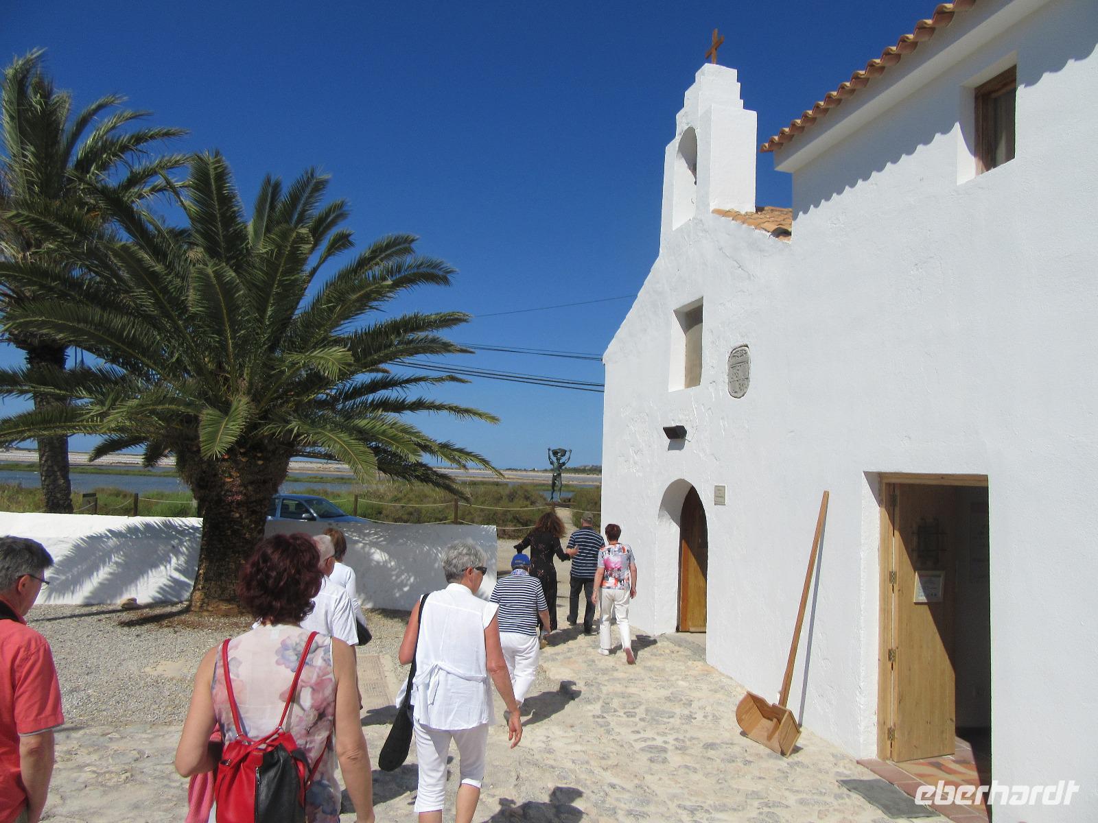 Wir fahren über die Salinen, sahen die großen weißen Salzberge und halten an dem Beobachtungspunkt. Leider sahen wir keine Flamingos, aber fanden dort eine Tauf-Messe in die Kirche "Francisco de Paula". Alle Teilnehmer trugen die typische Kleidung aus Ibiza "Ibicenca". Diese Kleidung erklärt die Mentalität Ibizas und bedeutet: "Wie du willst" oder "Freiheit".