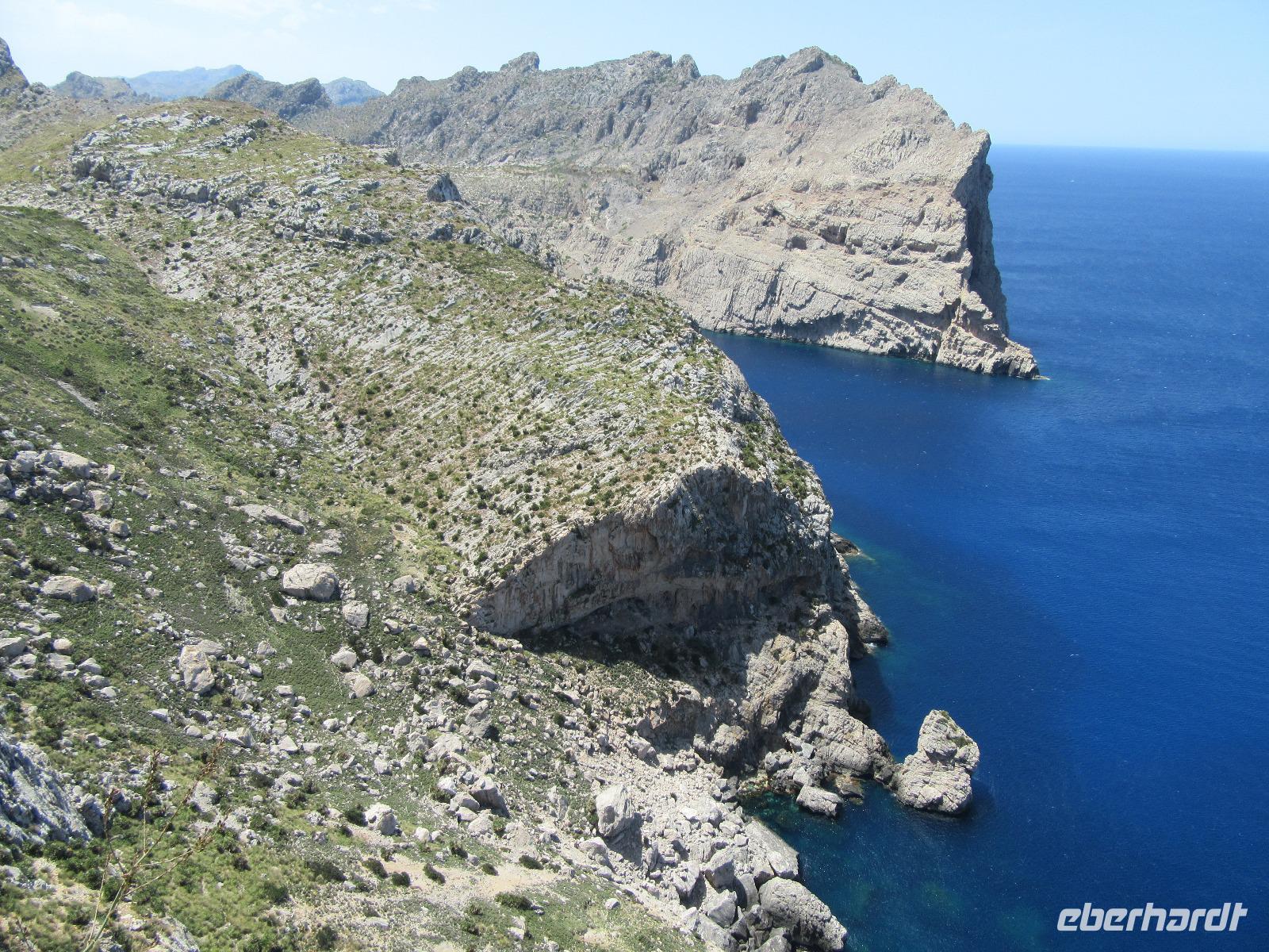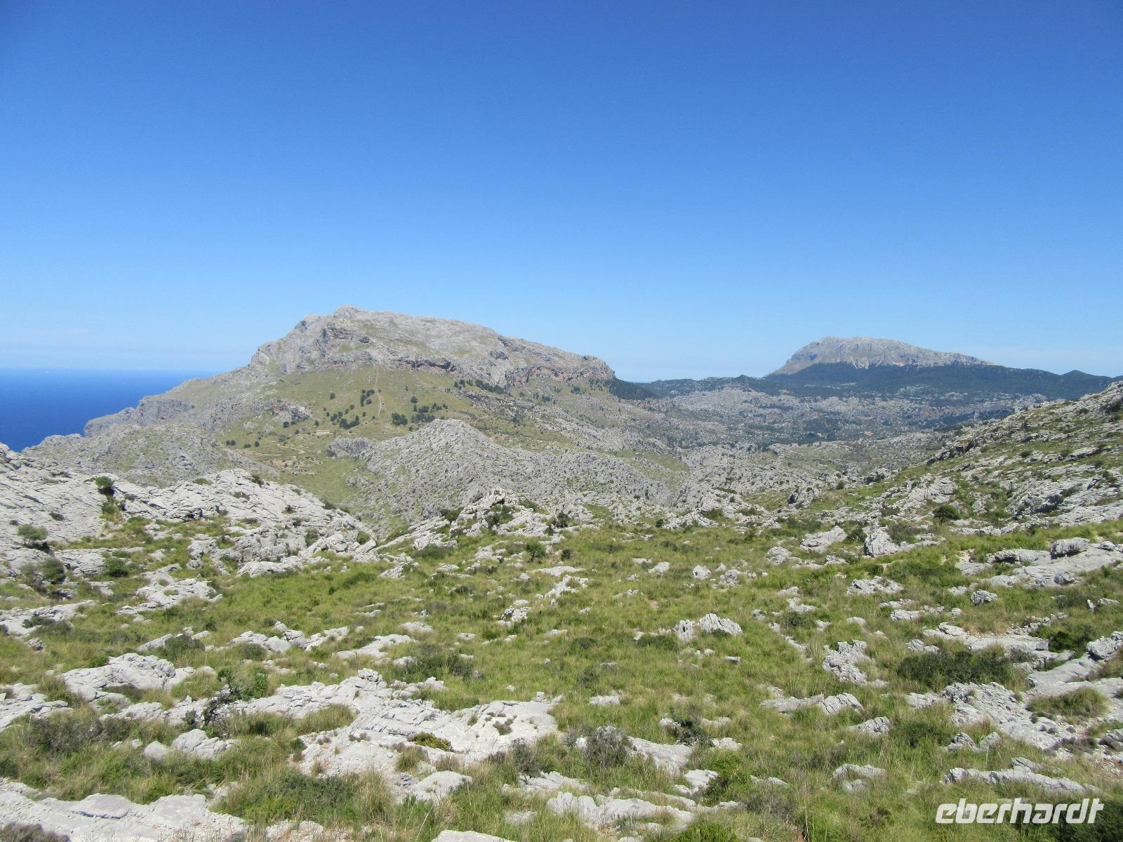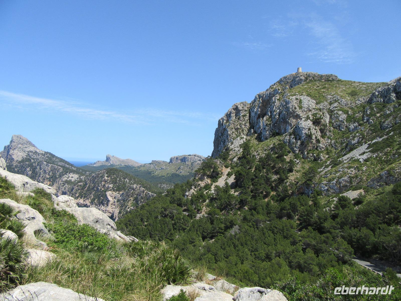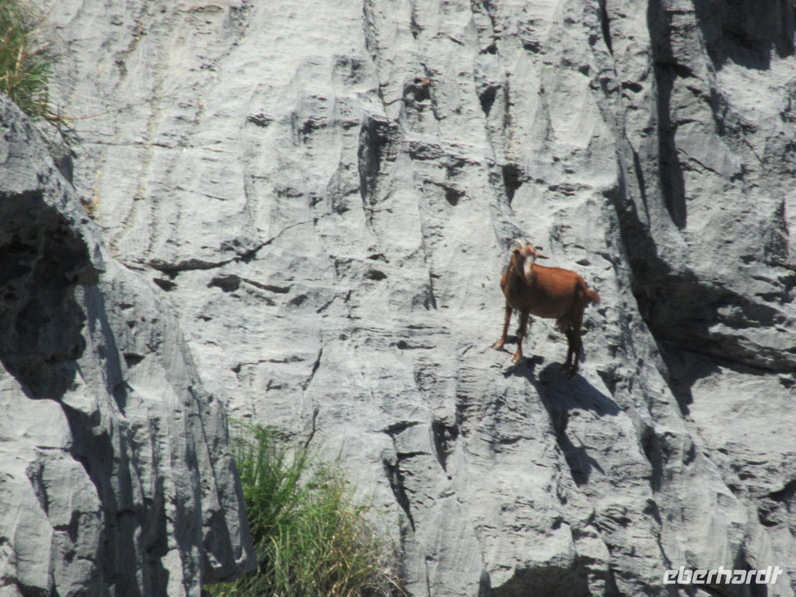 Anschließend fuhren wir über die 9 Km Serpentinenstraße auf einen Berg bis ca. 900 m Höhe. Auf diesem höchsten Punkt der Serpentinenstraße, machten wir einen Fotostopp auf dem Aussichtspunkt Nus de Sa Corbata. Die Ziegen, welche in den Steinen umher sprangen amüsierten uns.