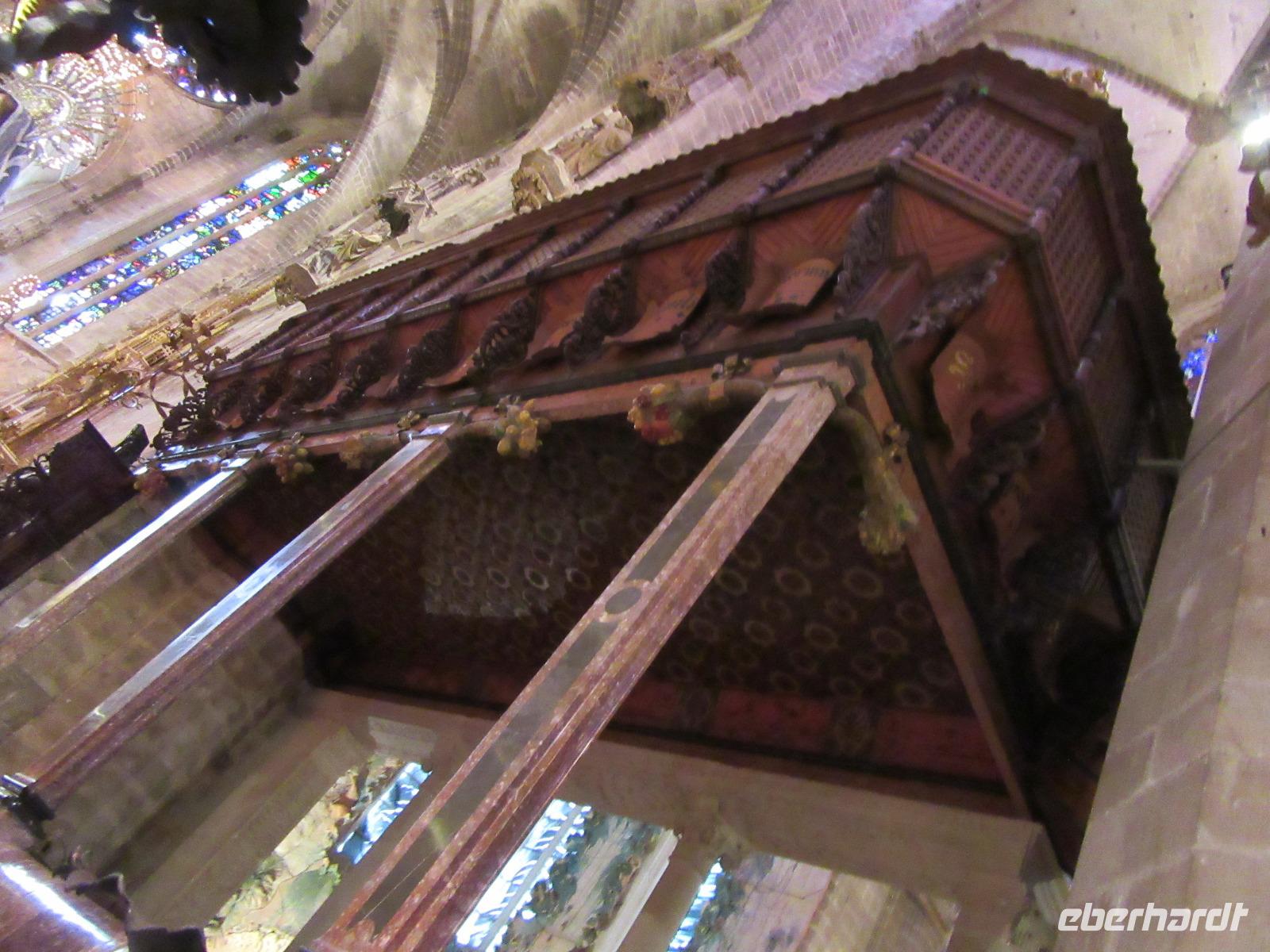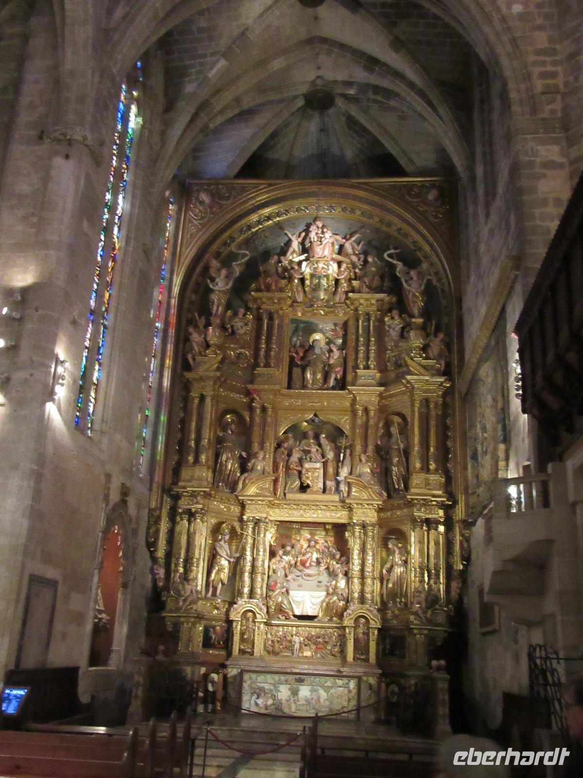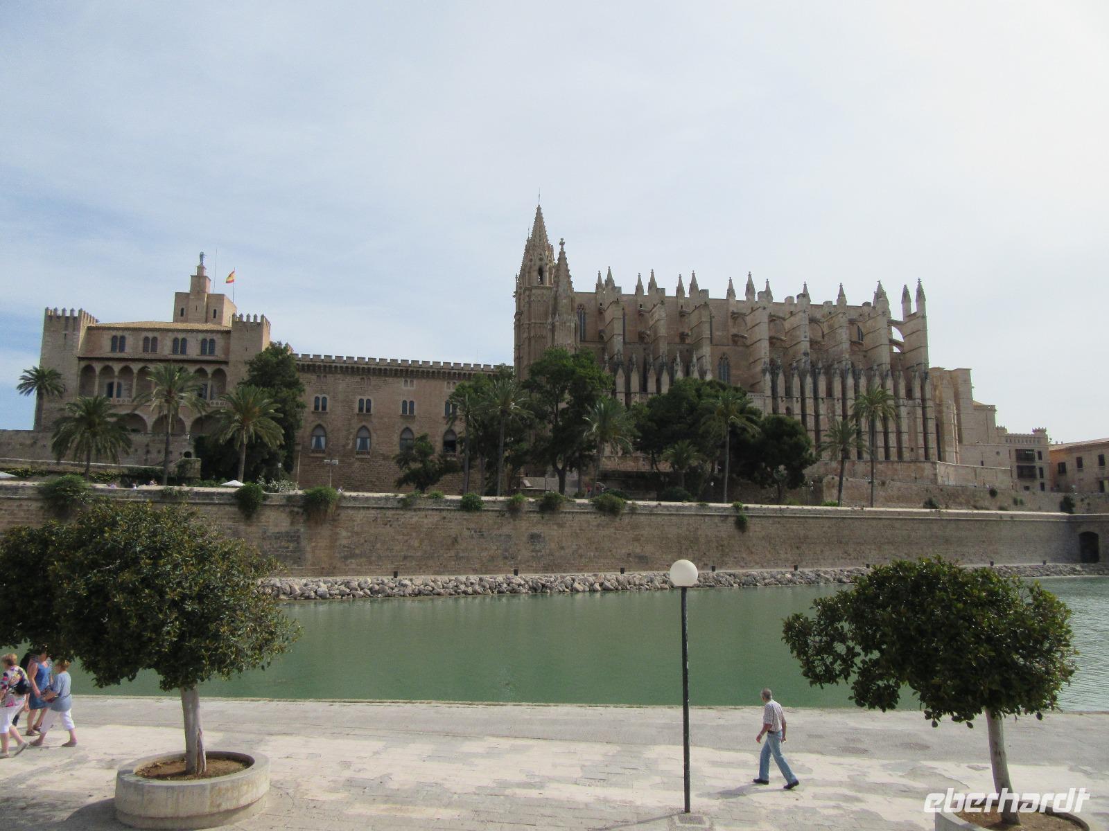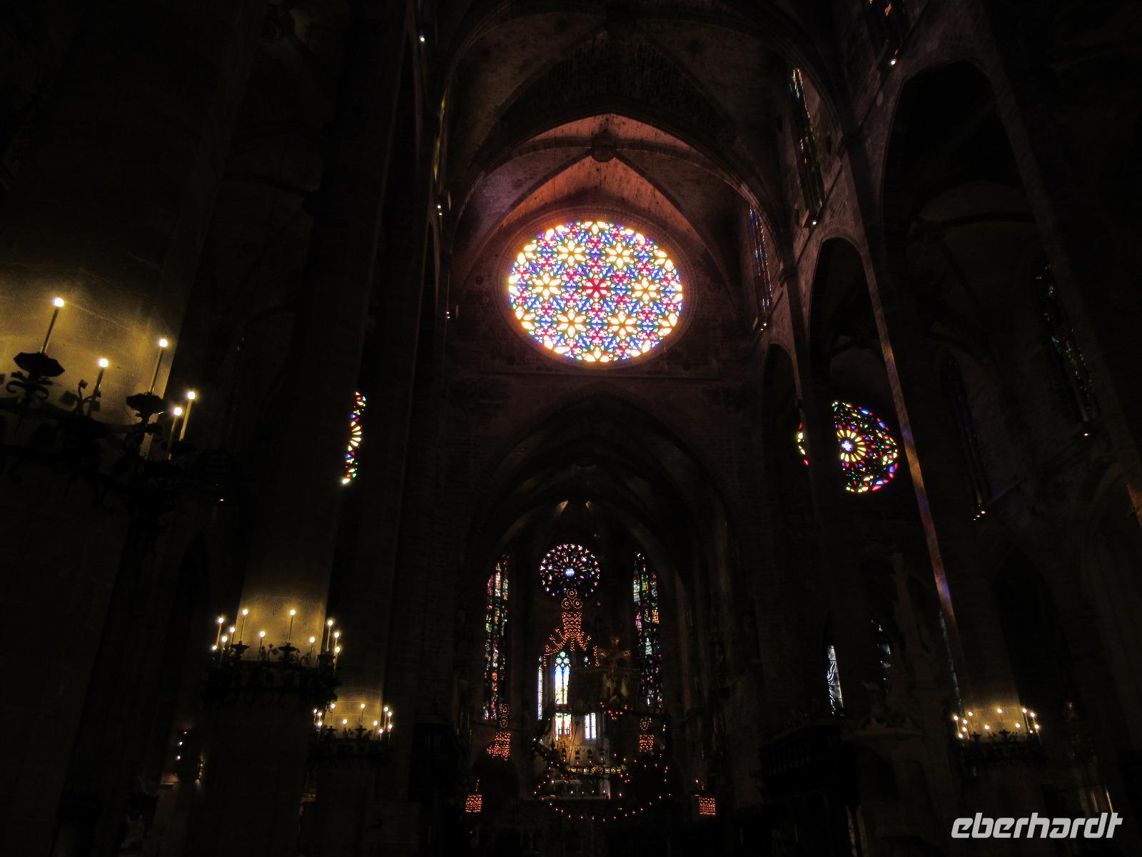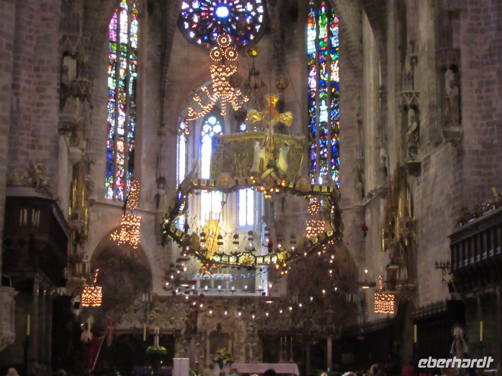 Nach dem Frühstück fuhren wir in die Stadt Palmas. Zuerst besuchten wir den Schloss Bellver von außen und bekamen die besten Ausblicke über die Stadt gezeigt. Danach ging es weiter und wir kamen in die Stadt, wo wir direkt am Hafen ausstiegen und zu Fuß die Altstadt erkundeten. Dort haben wir den alten Garten des Almudaina-Königspalast gesehen, wo das Denkmal "Es Foner" (Steinschleuder) sich befindet. Wir überquerten das alte Tor und die Mauer und gelangten zum Eingang des Palastes, direkt gegenüber der Kathedrale. Wir gingen in die Kathedrale rein und konnten bei einer Führung das Innere der Kathedrale bewundern. Besonders die Rosetten, durch die die Sonne strahlte waren schön anzusehen. Die Heilige Pedro-Kapelle von Miquel Barceló ist im Jugendstil erbaut und befindet sich im rechten Seitenschiff. Die verschiedenen Fenster wurden von der Firma Mayer aus München und die Peuliär Llenadin-Blümen-Rosette von Corpus Christi stammt typisch aus der balearischen Handwerkskunst. Der Altar aus Naturelementen war Teil der von dem berühmten Architekten Antonio Gaudí neuen baulichen Veränderungen. Jede der vielen Kapellen hat eine verschiedene Bedeutung und sie sind gut konstruiert, da gotische Kathedralen ca. 400 Jahre brauchten, um fertiggestellt zu werden.