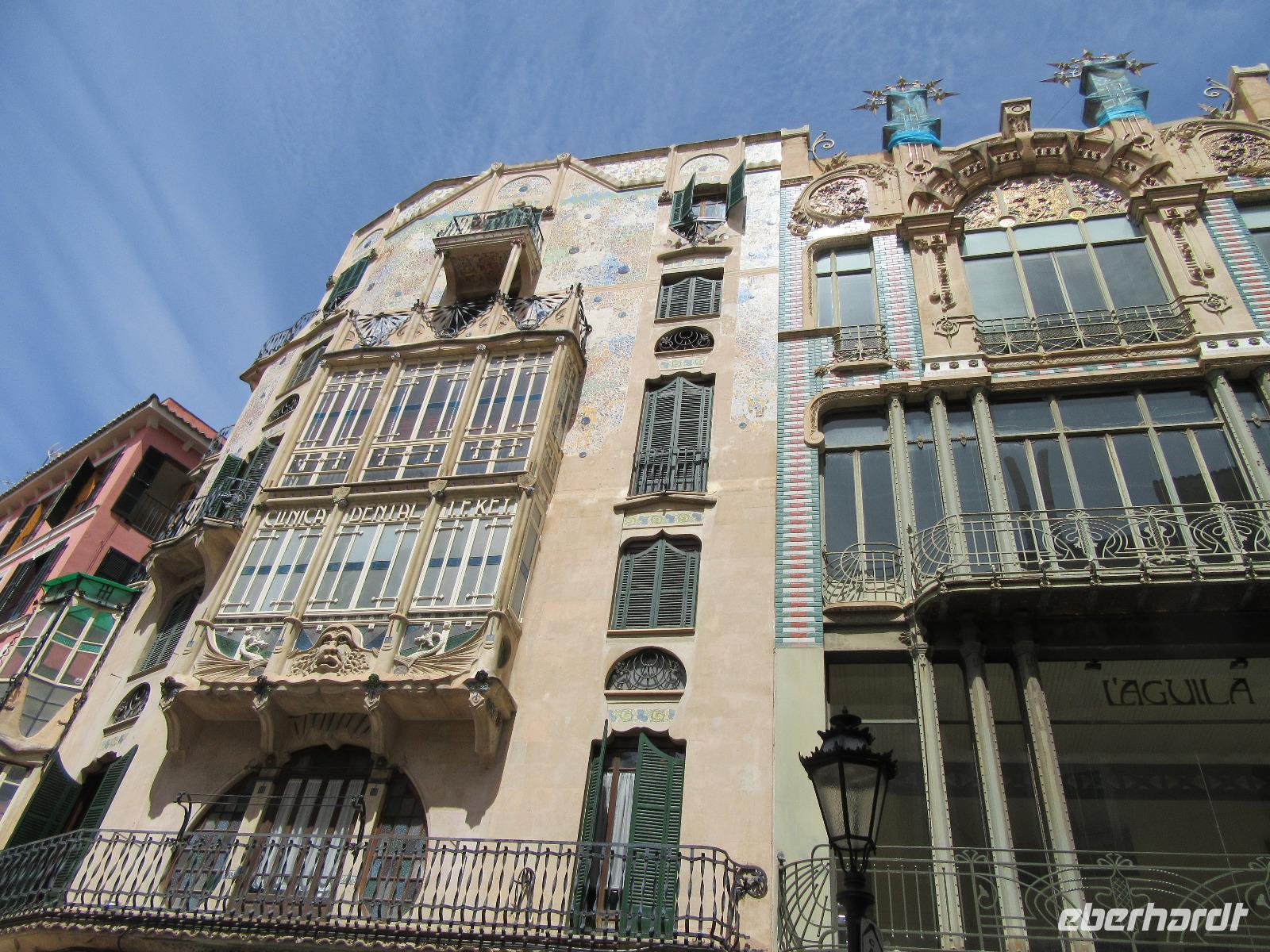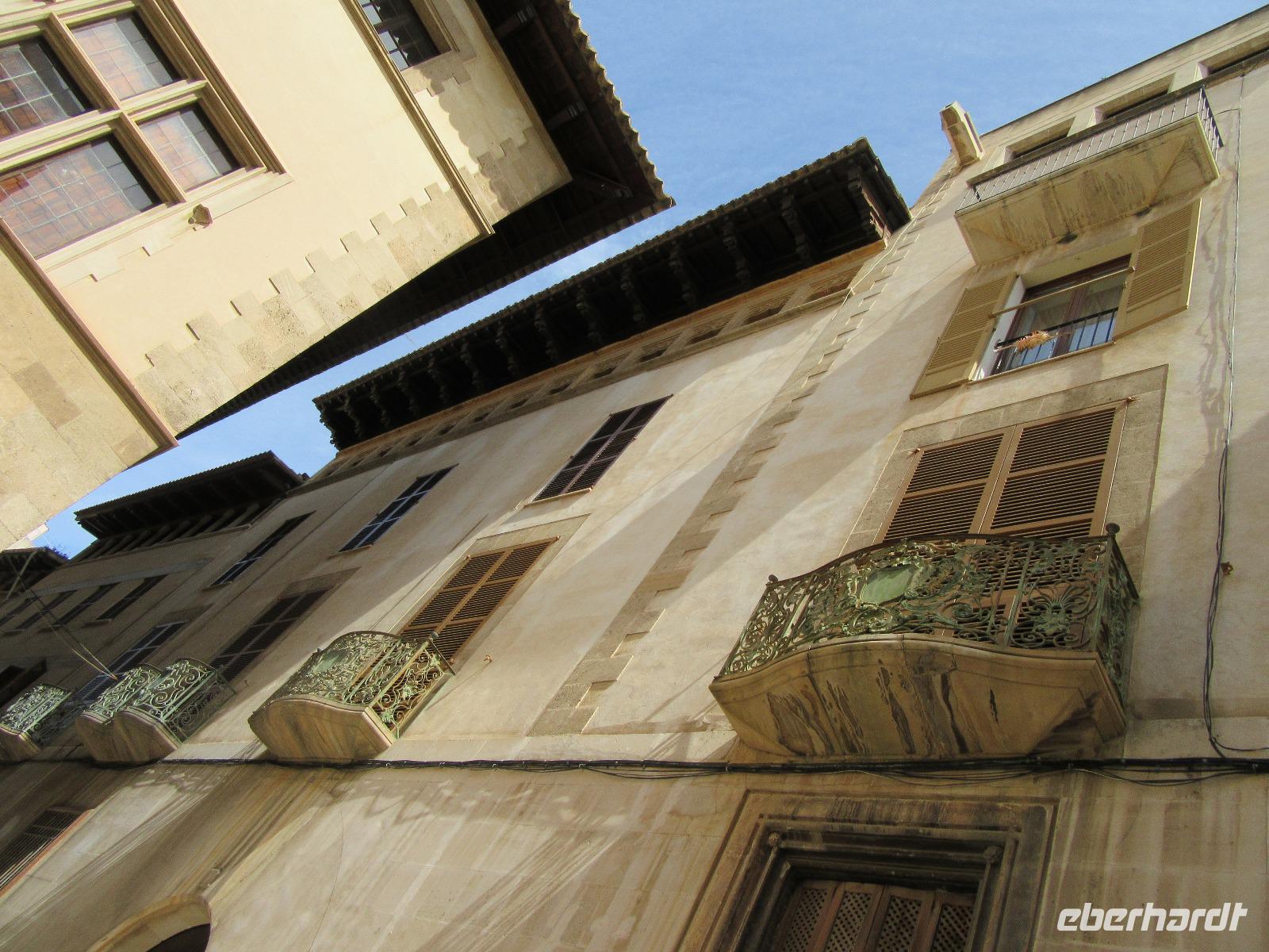 Dann bummelten wir durch die Gassen, sahen auf unserem Weg die typischen Innenhöfe und die Balkone im Jugendstil. Auf dem Weg zur Kirche Santa Eulalias, der größte Kirche nach den Kathedrale, kamen wir in das alte nette Café Can Joan de S'aigo. Dieses wurde 1700 schon gegründet und wir aßen leckere traditionelle Ensaimadas mit Kaffee oder Schokolade.