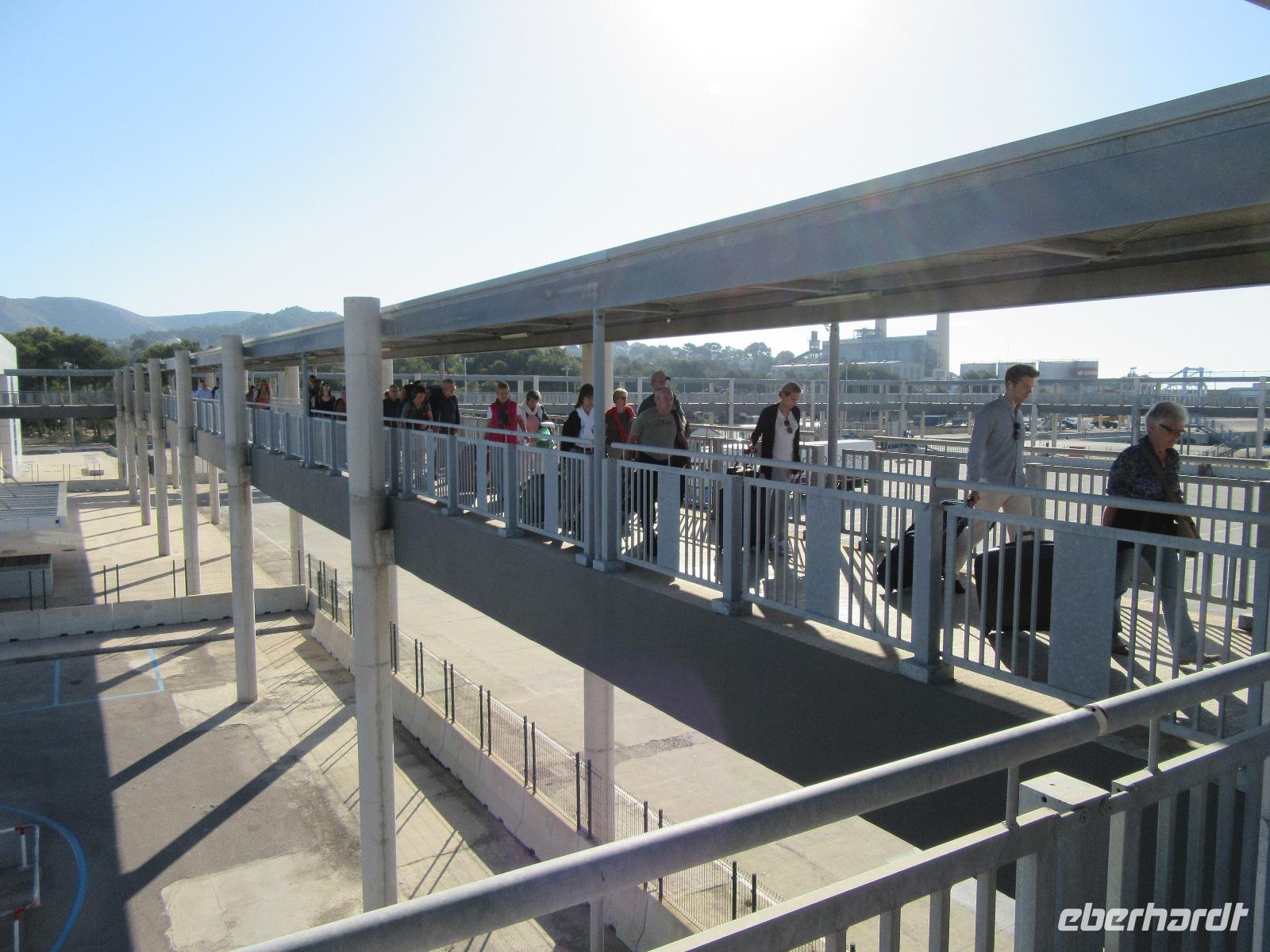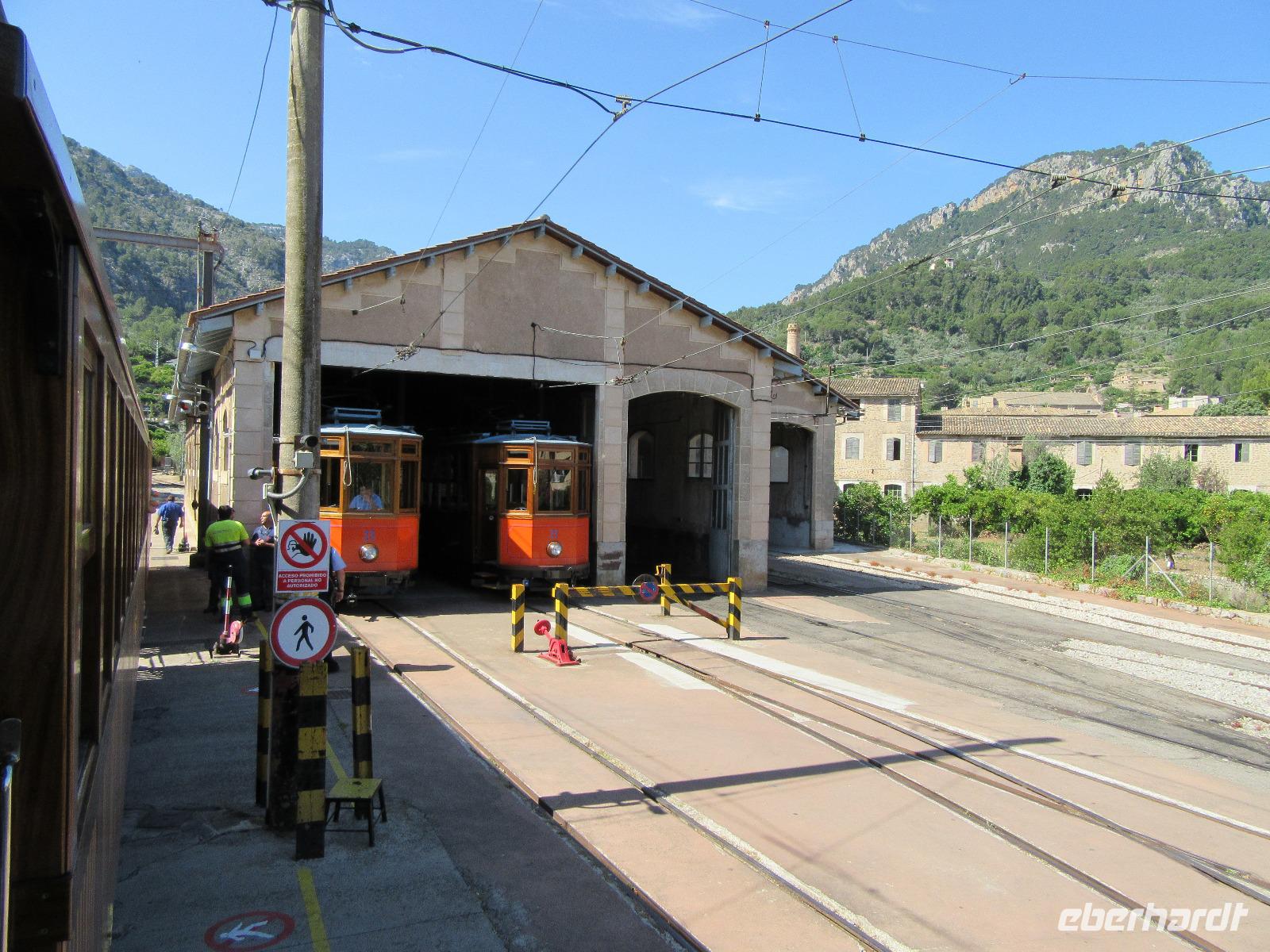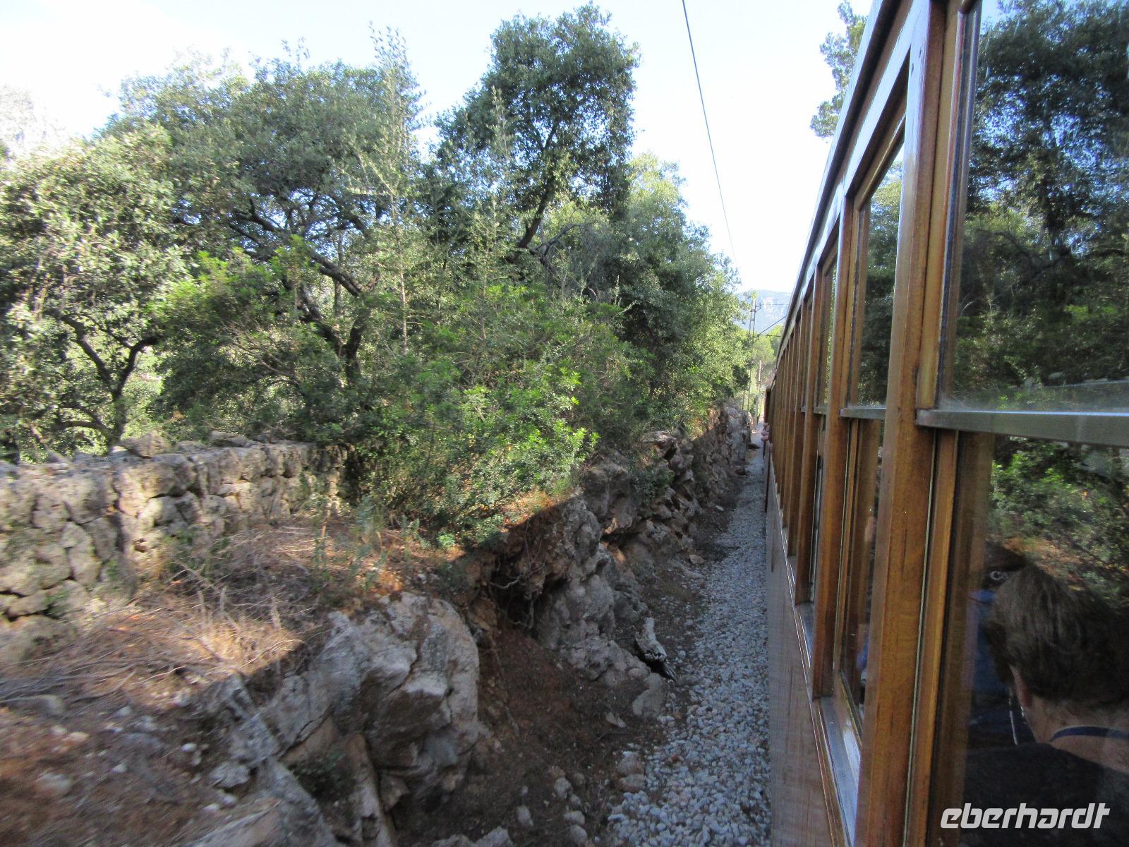 An diesen Tag wollten wir die verschiedenen Verkehrsmittel der Insel benutzen. Am Anfang des Tages fuhren wir durch die Platja de Palma und sahen den bekannten Ballermann und den Balneario Nummer 6. Aber das war nicht der Grund unserer Reise, deswegen fuhren wir zur Bahnstation und fuhren mit der Eisenbahn Roter Blitz bis Soller. Die Strecke war sehr interessant durch die Landschaft des Tramuntana Gebirge durch Johannesbrot-, Feigen- und Mandelbäume und die verschiedenen Tunnel, wo der längste ca. 3 Km ist. Natürlich, machten wir den traditionellen Fotostopp, bevor wir in Soller angekommen sind. In Soller angekommen, nahmen wir die historische Straßenbahn bis Port Soller. Dort hatten wir kurz Zeit zur freien Verfügung, um auf eine Terrasse und/oder zum Aussichtspunkt auf dem Hügel zu gehen oder einfach durch den Hafen zu spazieren.
