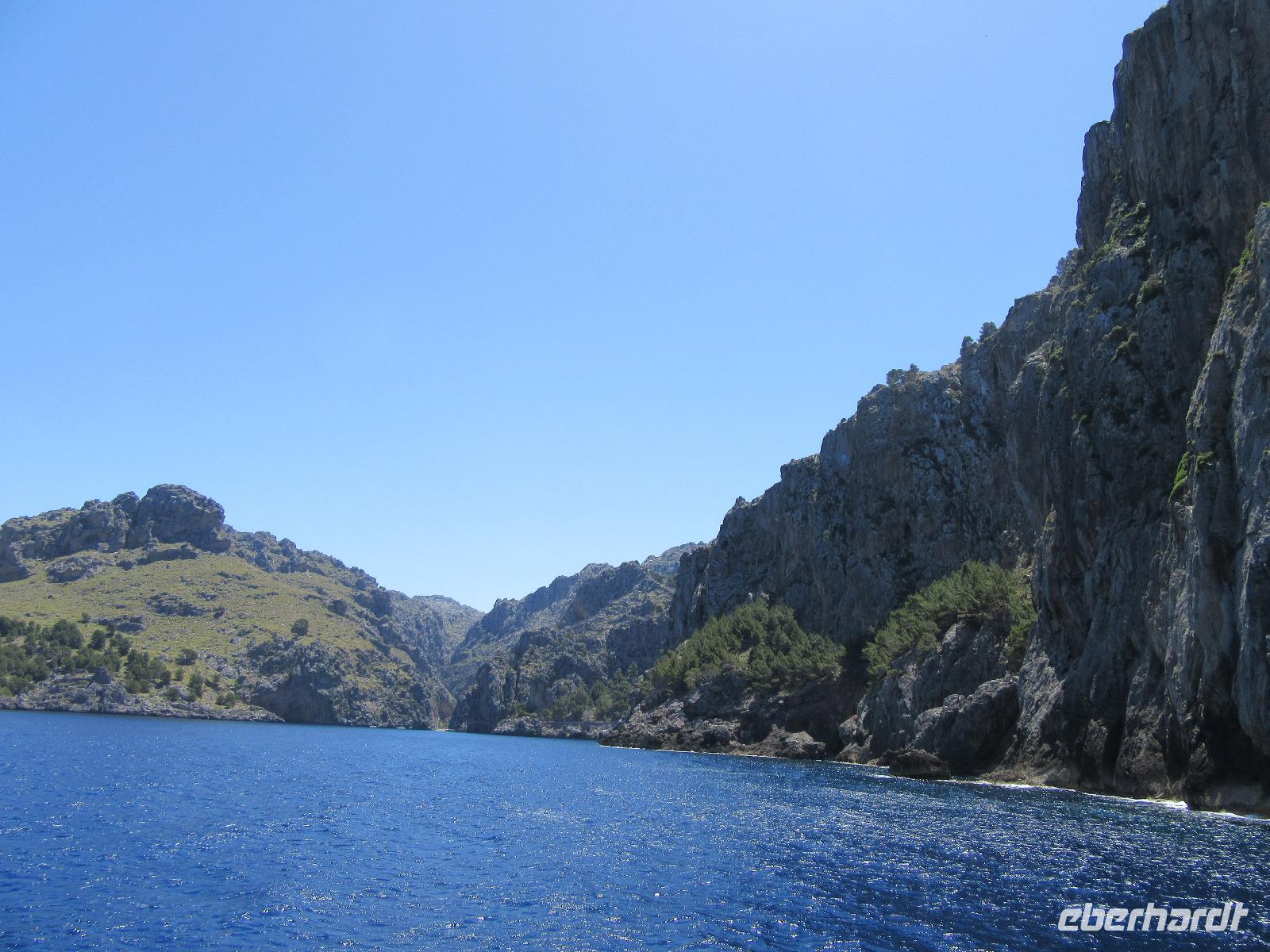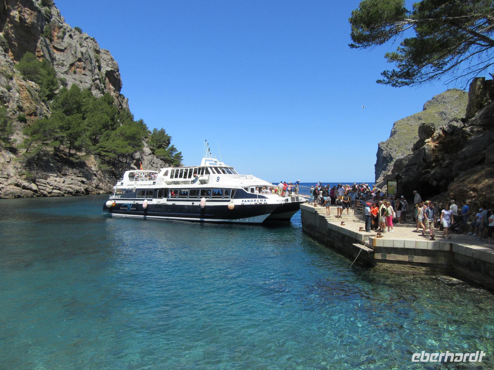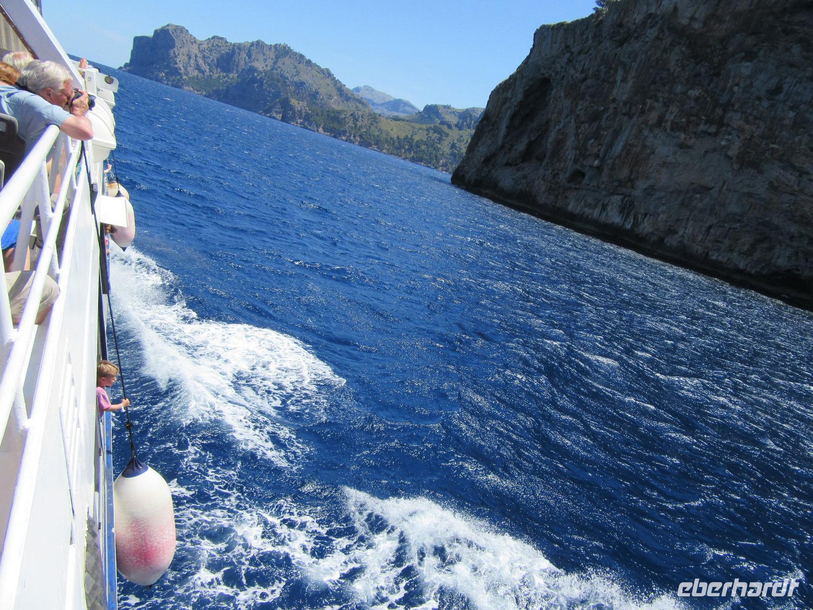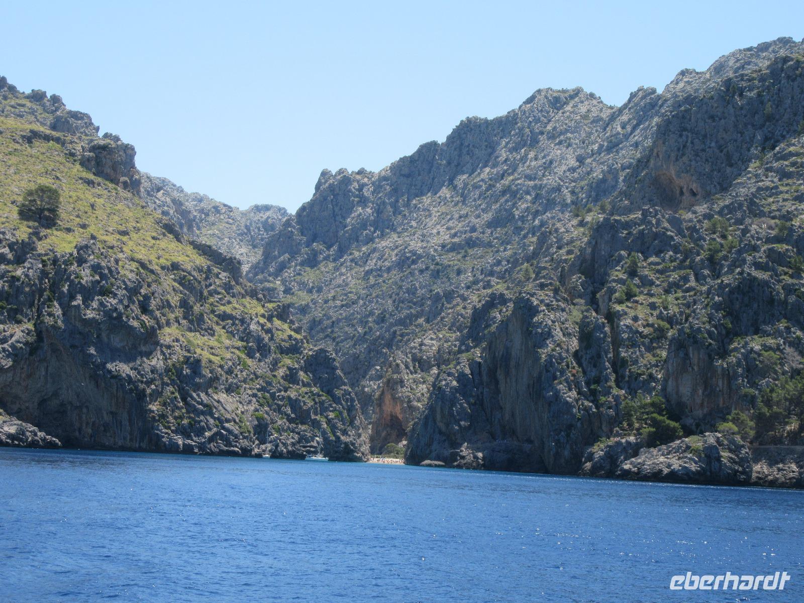 Dann nahmen wir unser Boot und fuhren entlang der Küste und bestaunten die verschiedenen Felsformationen bis Sa Calobra. In Sa Calobra nutzten wir die Freizeit zum Mittagsessen und anschließend die Möglichkeit die Natur zu bestaunen beispielsweise bei der Überquerung einer Schlucht.