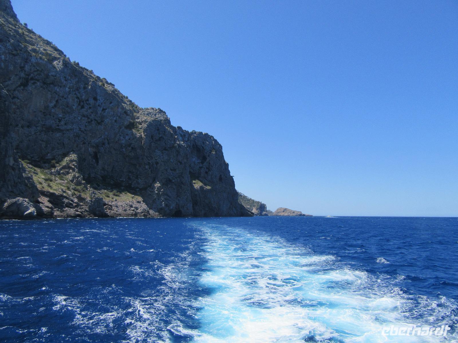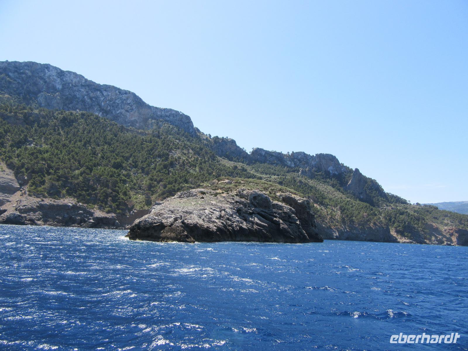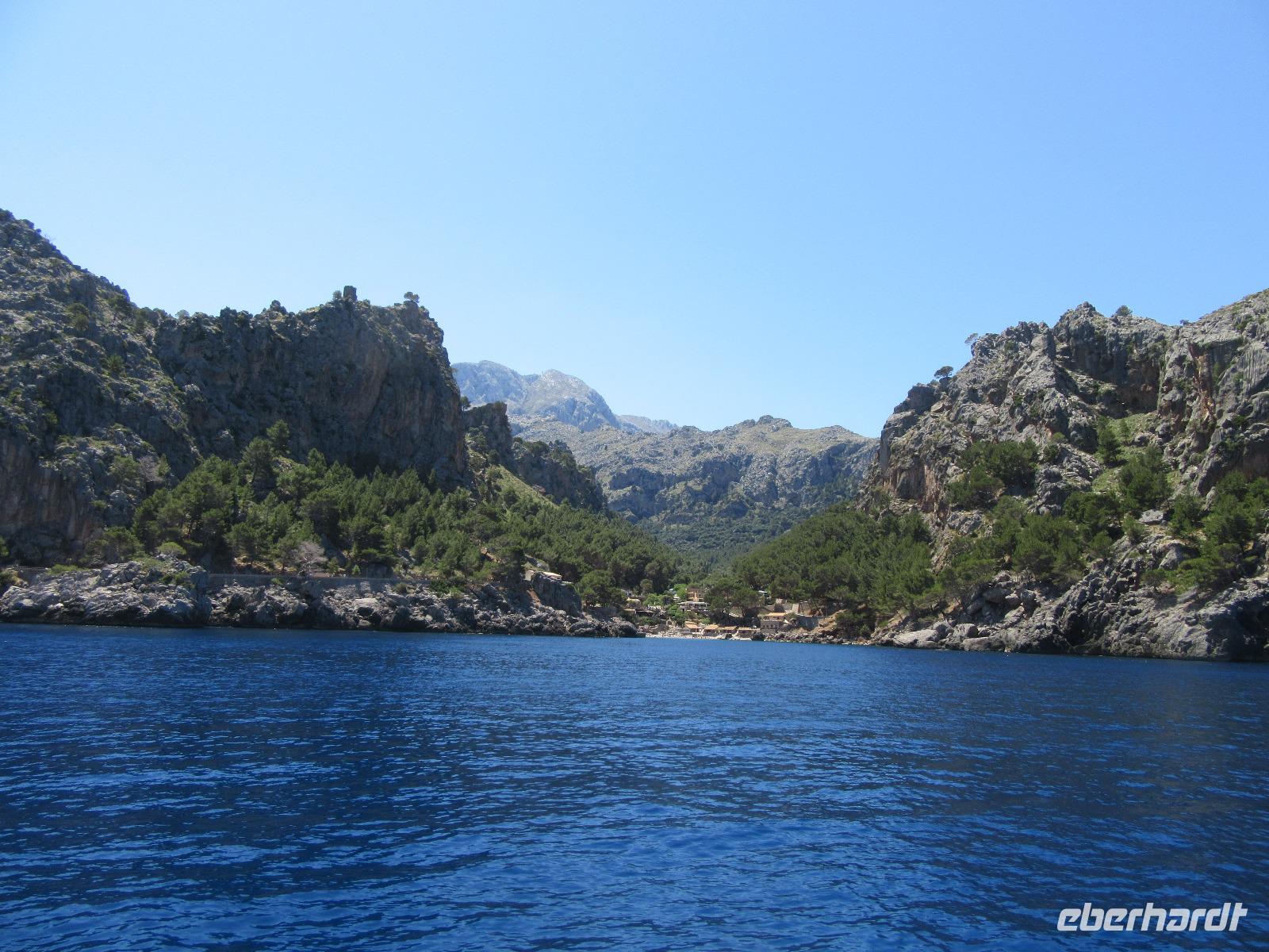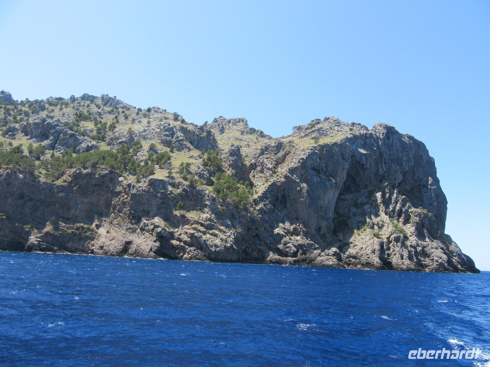 Dann nahmen wir unser Boot und fuhren entlang der Küste und bestaunten die verschiedenen Felsformationen bis Sa Calobra. In Sa Calobra nutzten wir die Freizeit zum Mittagsessen und anschließend die Möglichkeit die Natur zu bestaunen beispielsweise bei der Überquerung einer Schlucht.