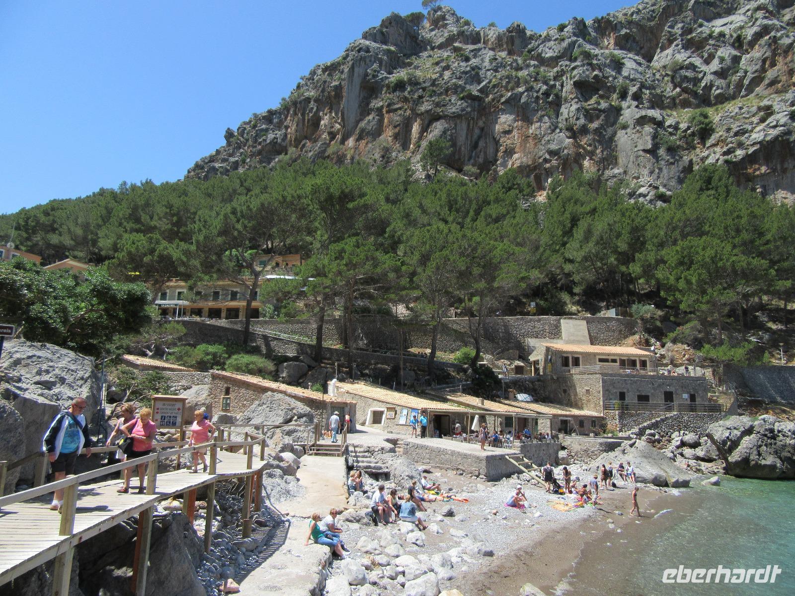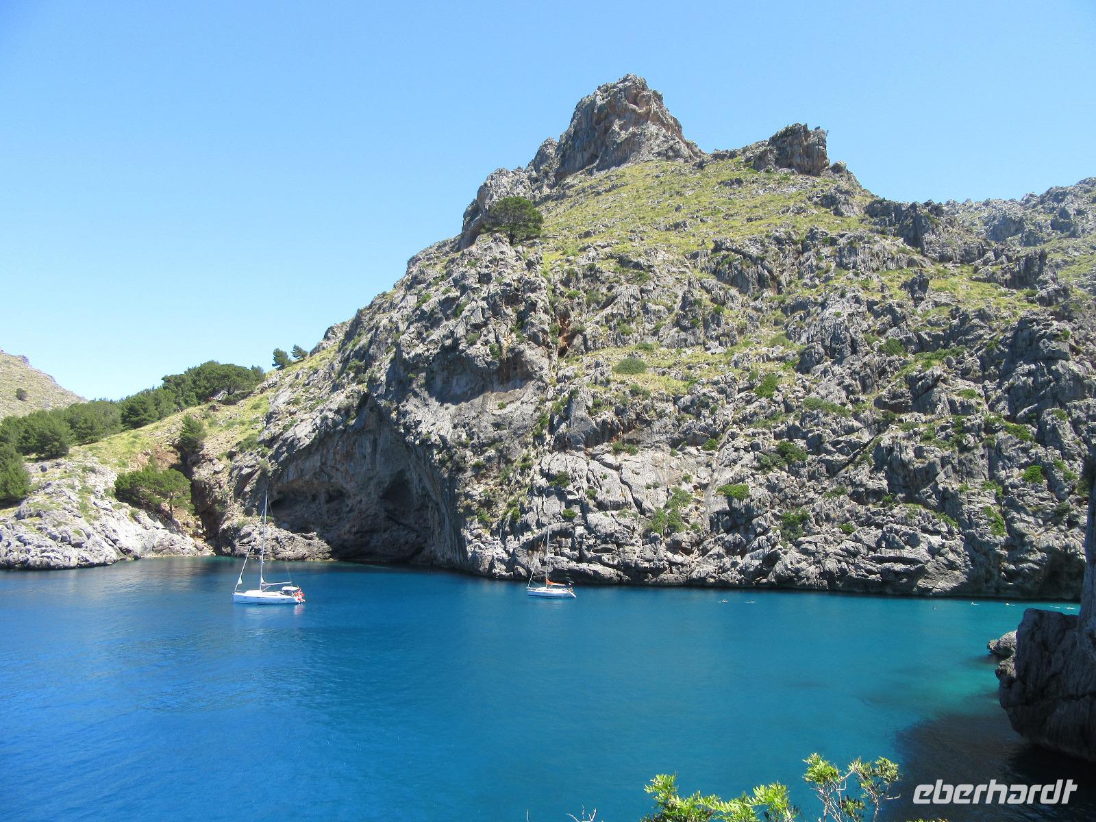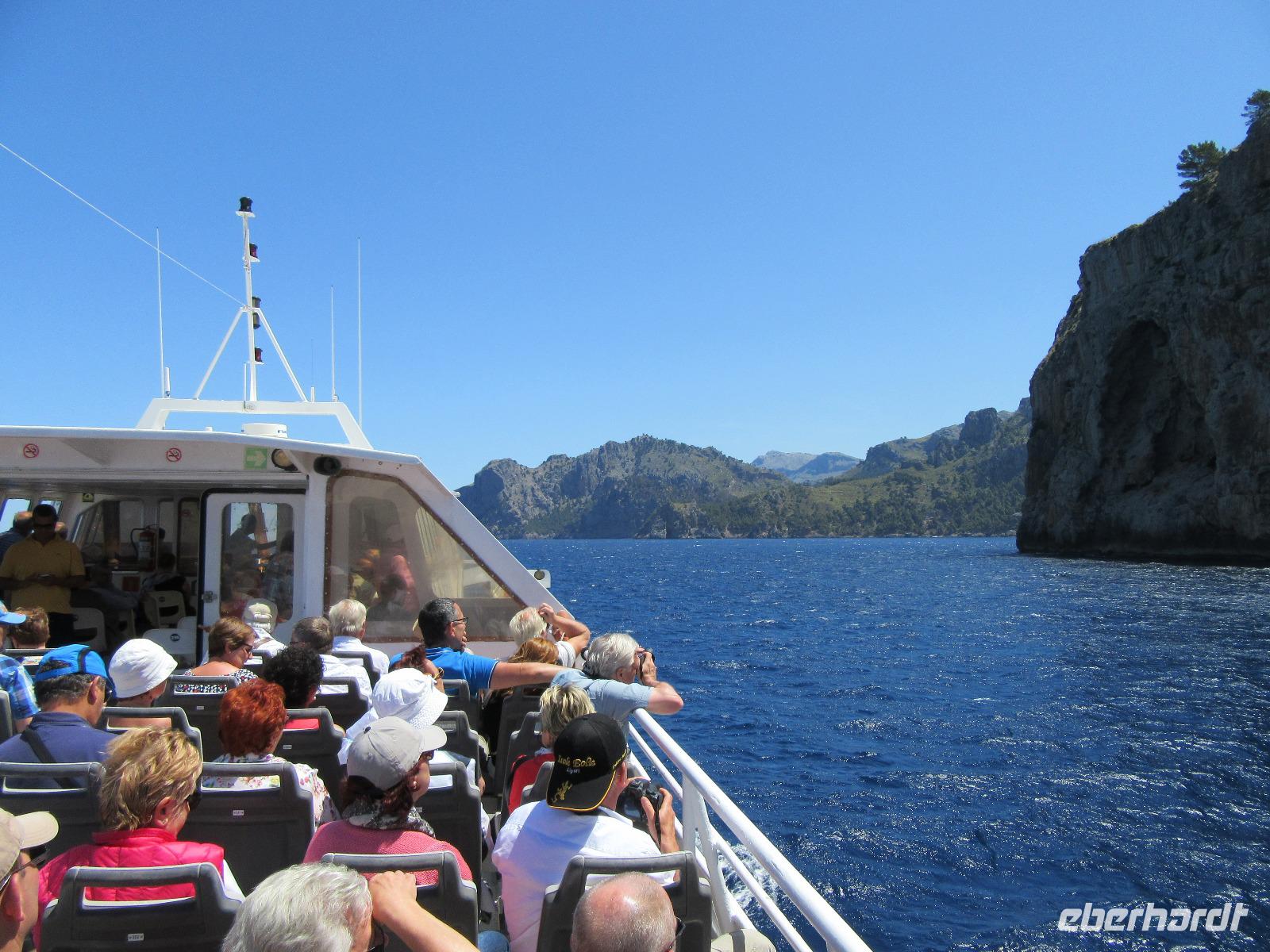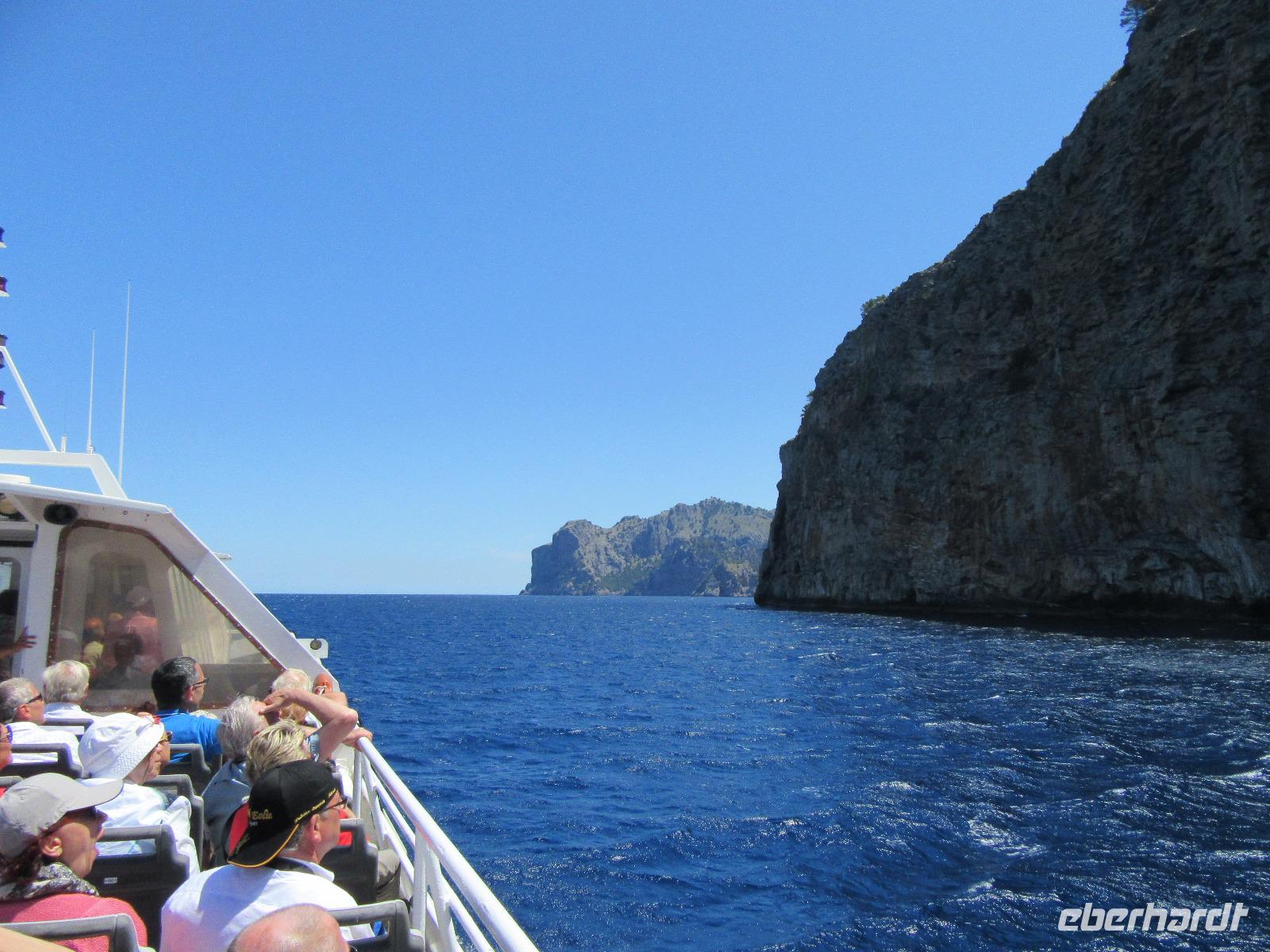 Dann nahmen wir unser Boot und fuhren entlang der Küste und bestaunten die verschiedenen Felsformationen bis Sa Calobra. In Sa Calobra nutzten wir die Freizeit zum Mittagsessen und anschließend die Möglichkeit die Natur zu bestaunen beispielsweise bei der Überquerung einer Schlucht.