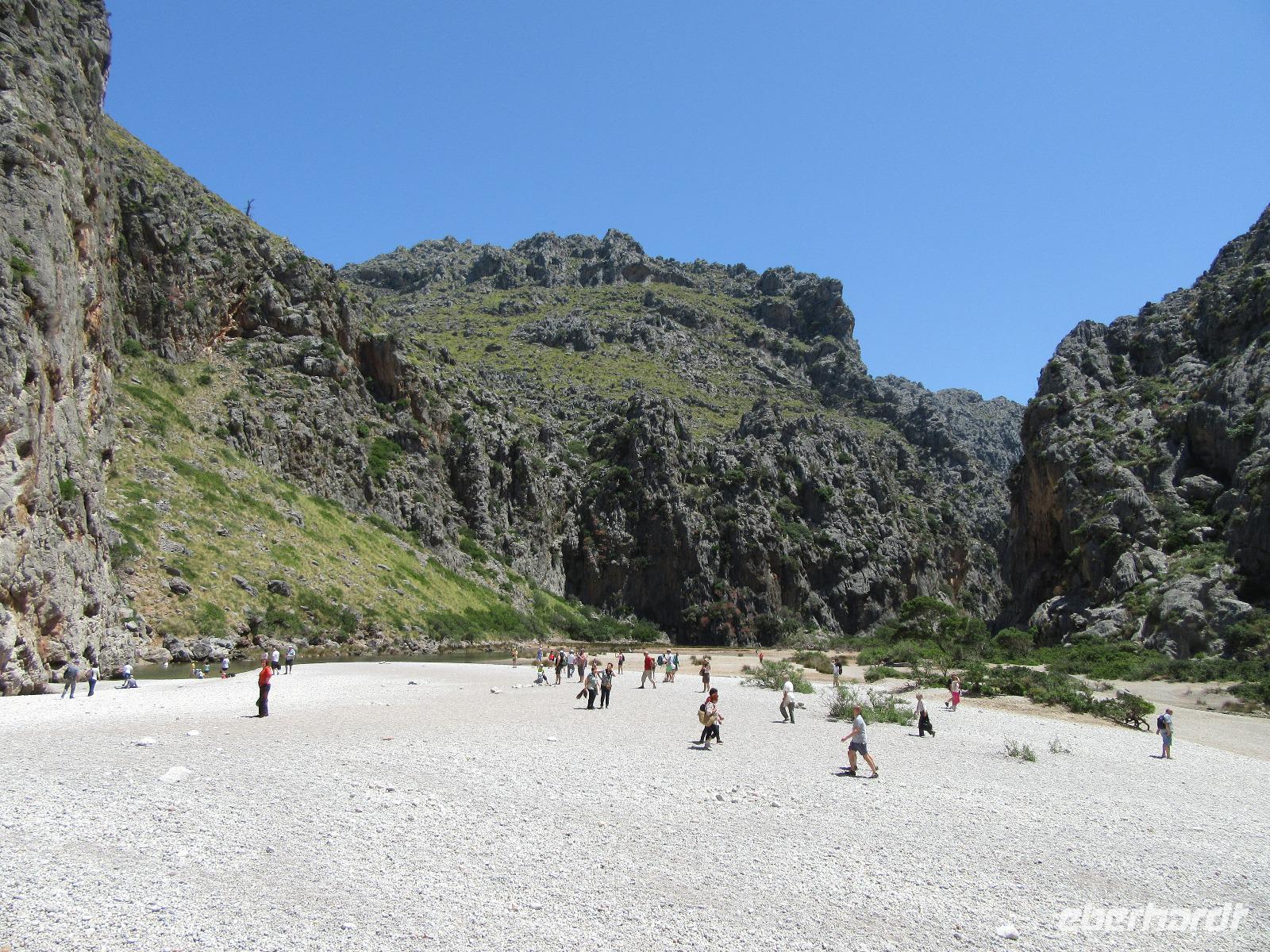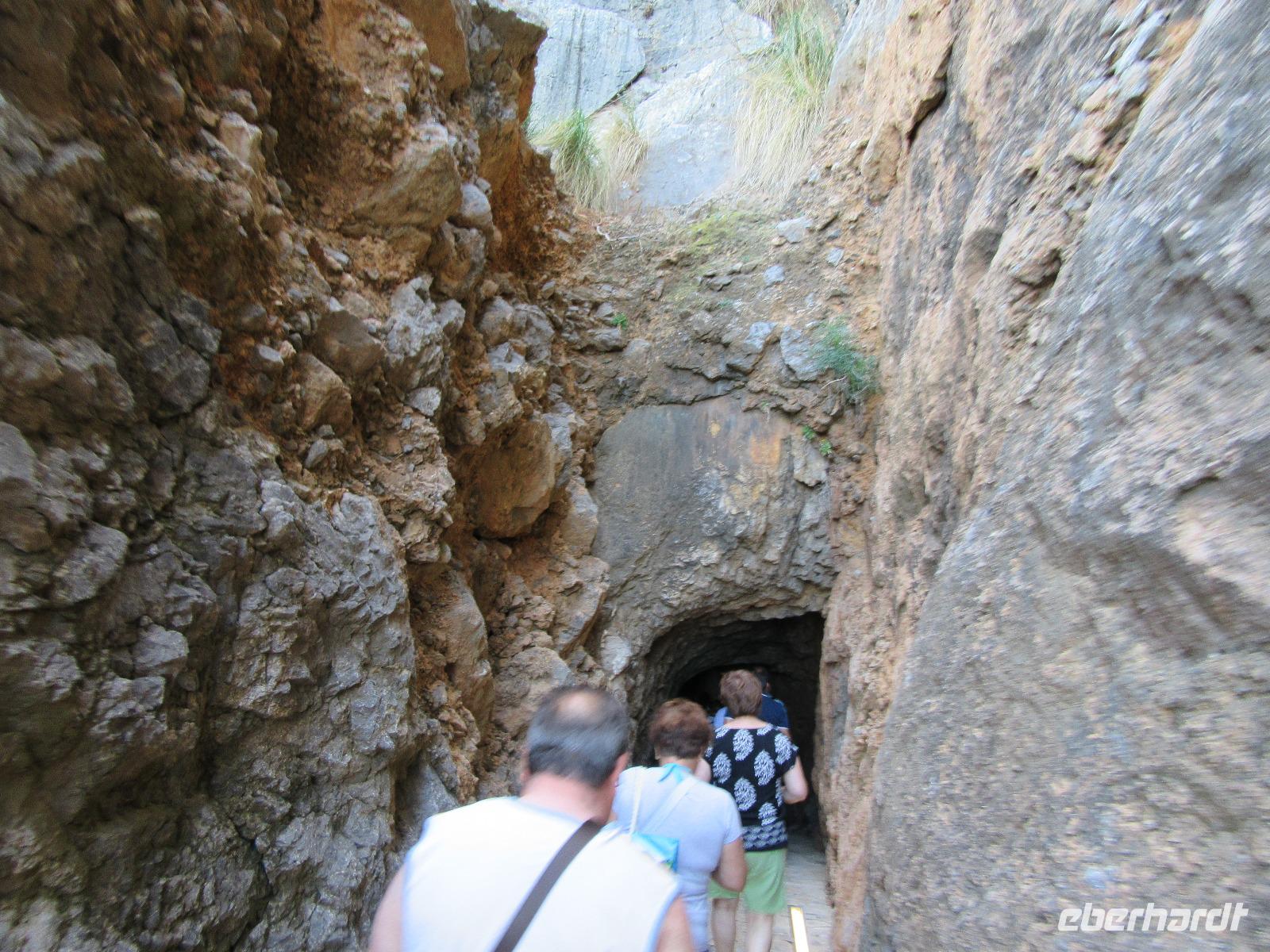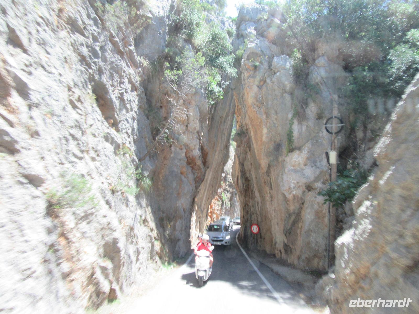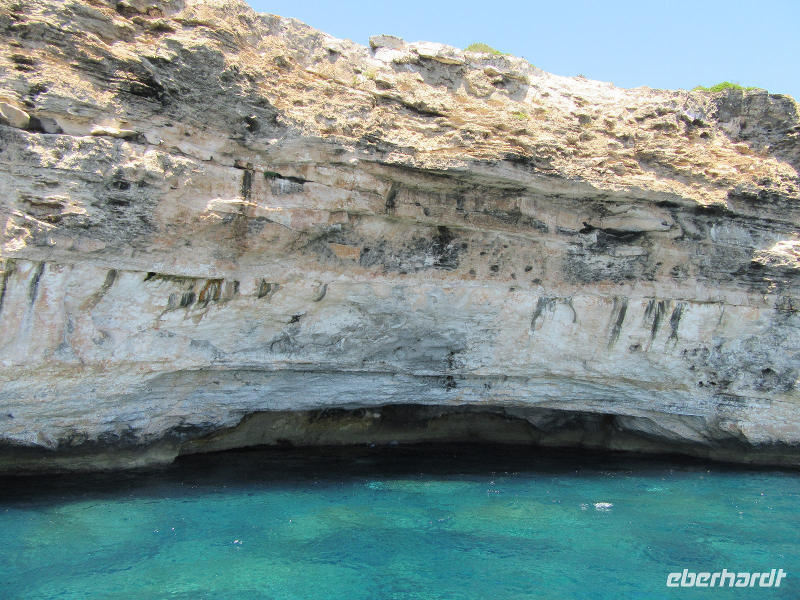 Dann nahmen wir unser Boot und fuhren entlang der Küste und bestaunten die verschiedenen Felsformationen bis Sa Calobra. In Sa Calobra nutzten wir die Freizeit zum Mittagsessen und anschließend die Möglichkeit die Natur zu bestaunen beispielsweise bei der Überquerung einer Schlucht.