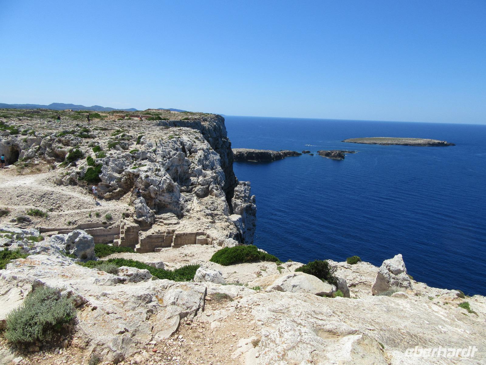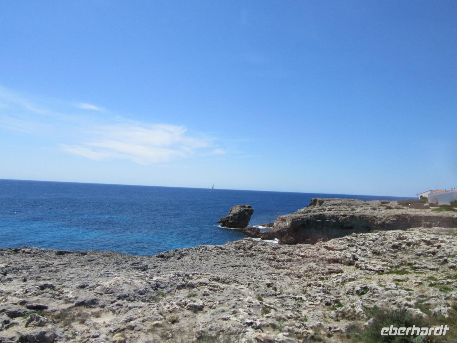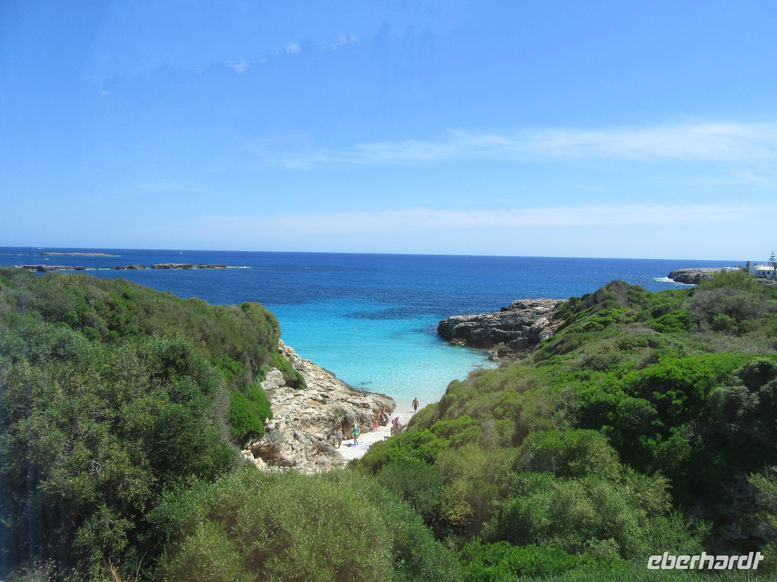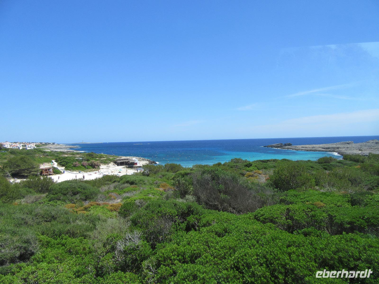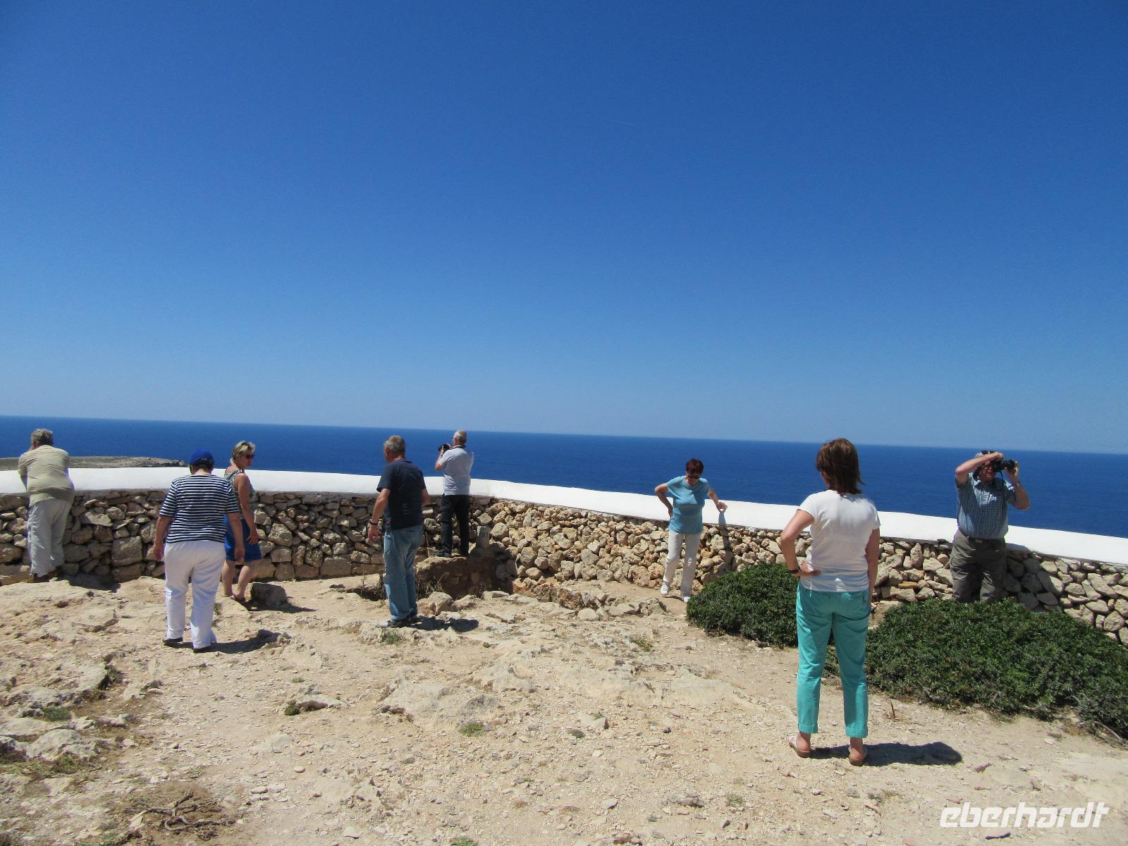 Die Küstenlinie mit den verschiedenen Gebäuden auf dem Felsen und die imposante Natur sind seit 1993 Naturschutzgebiet der UNESCO. Das Meer war so klar und schimmerte in Türkis in der Sonne. Wir sahen den Kap Truch, welcher der südwestliche Punkt Menorcas sich befindet und nur 36 Km von Mallorca entfernt ist. Neben diesem Kap sahen wir die kleine Bucht Cala en Bosc, wo der alte F185 km lange Fernwanderweg Cami de Cavalls beginnt. Heutzutage ist er nur mit Pferd oder zu Fuß durch diesen Weg gehbar.