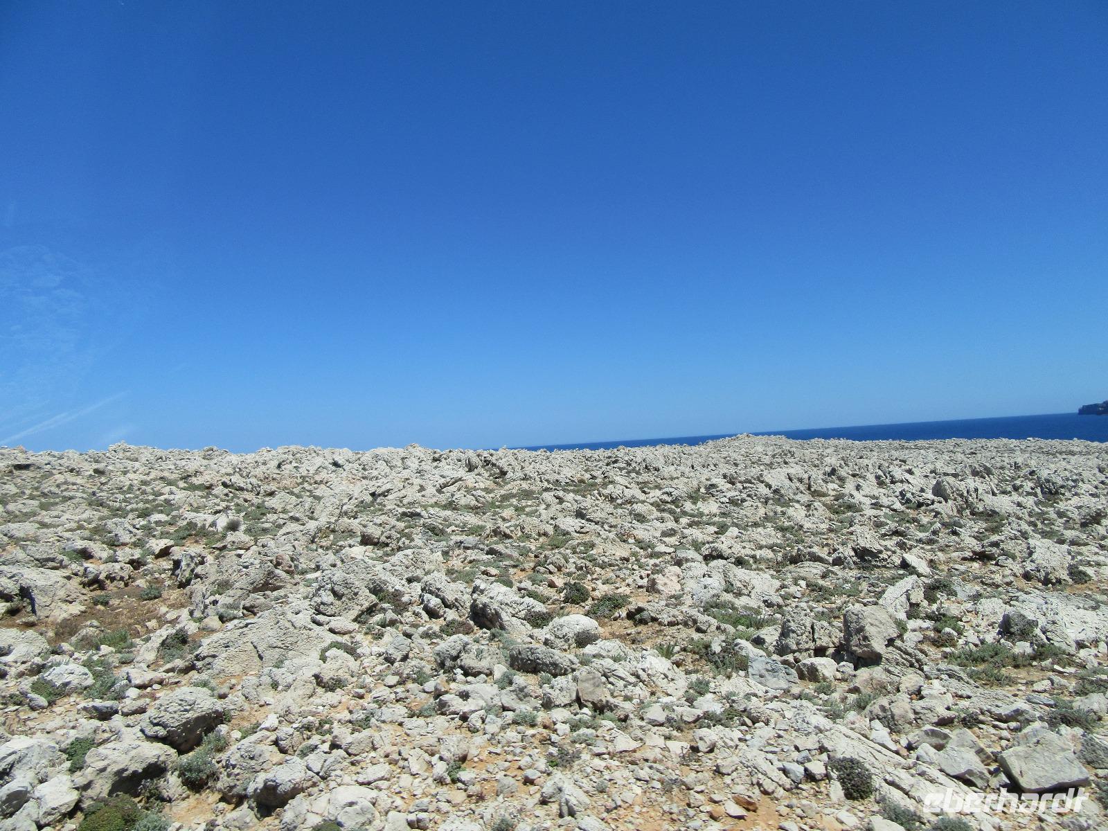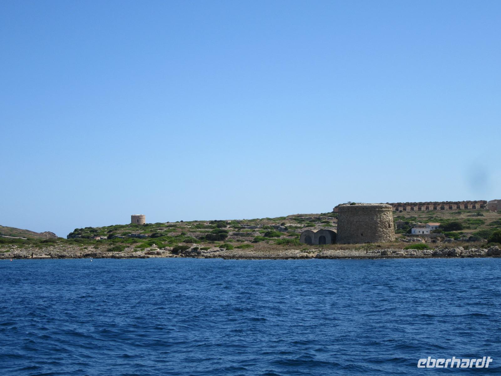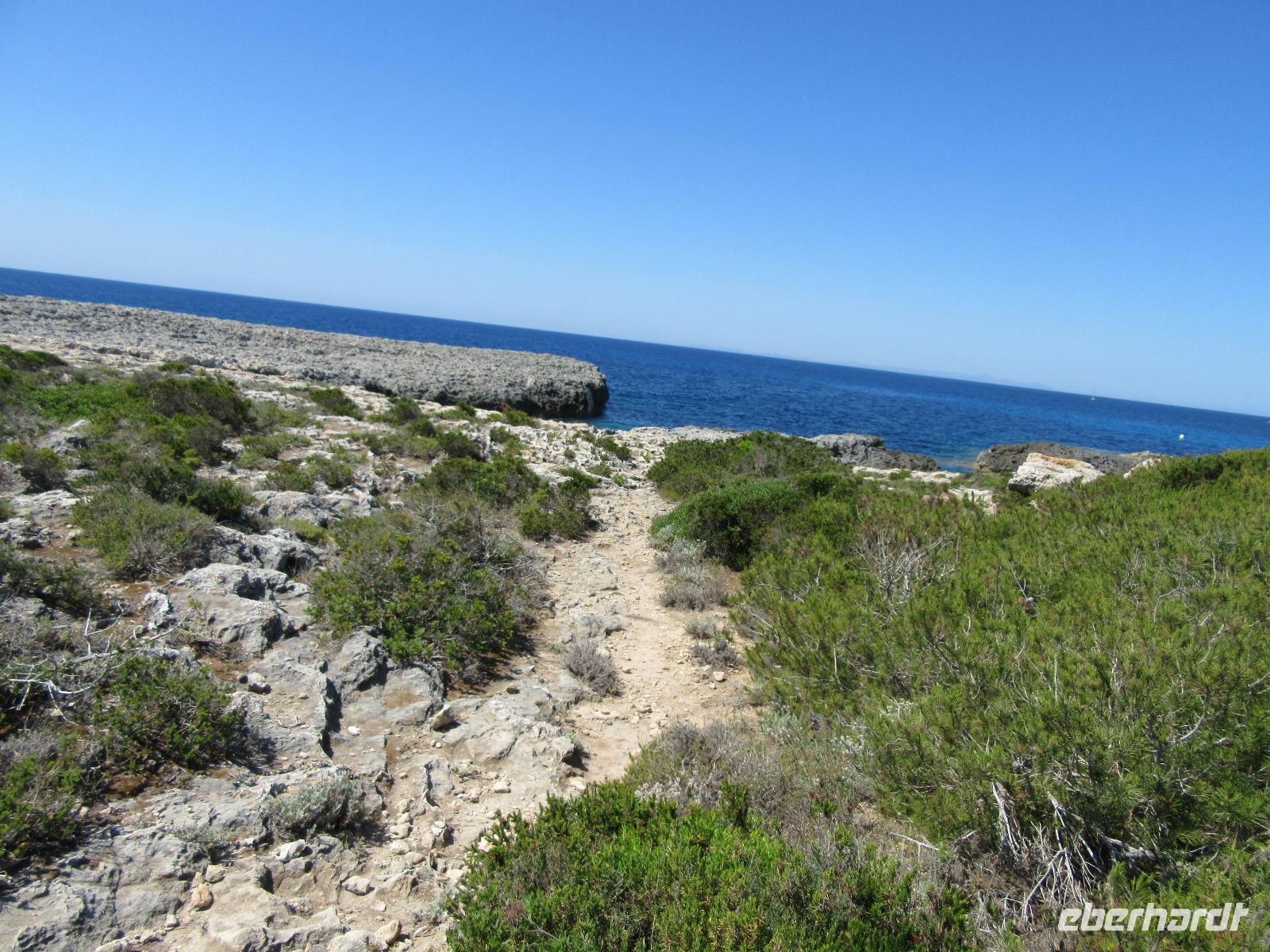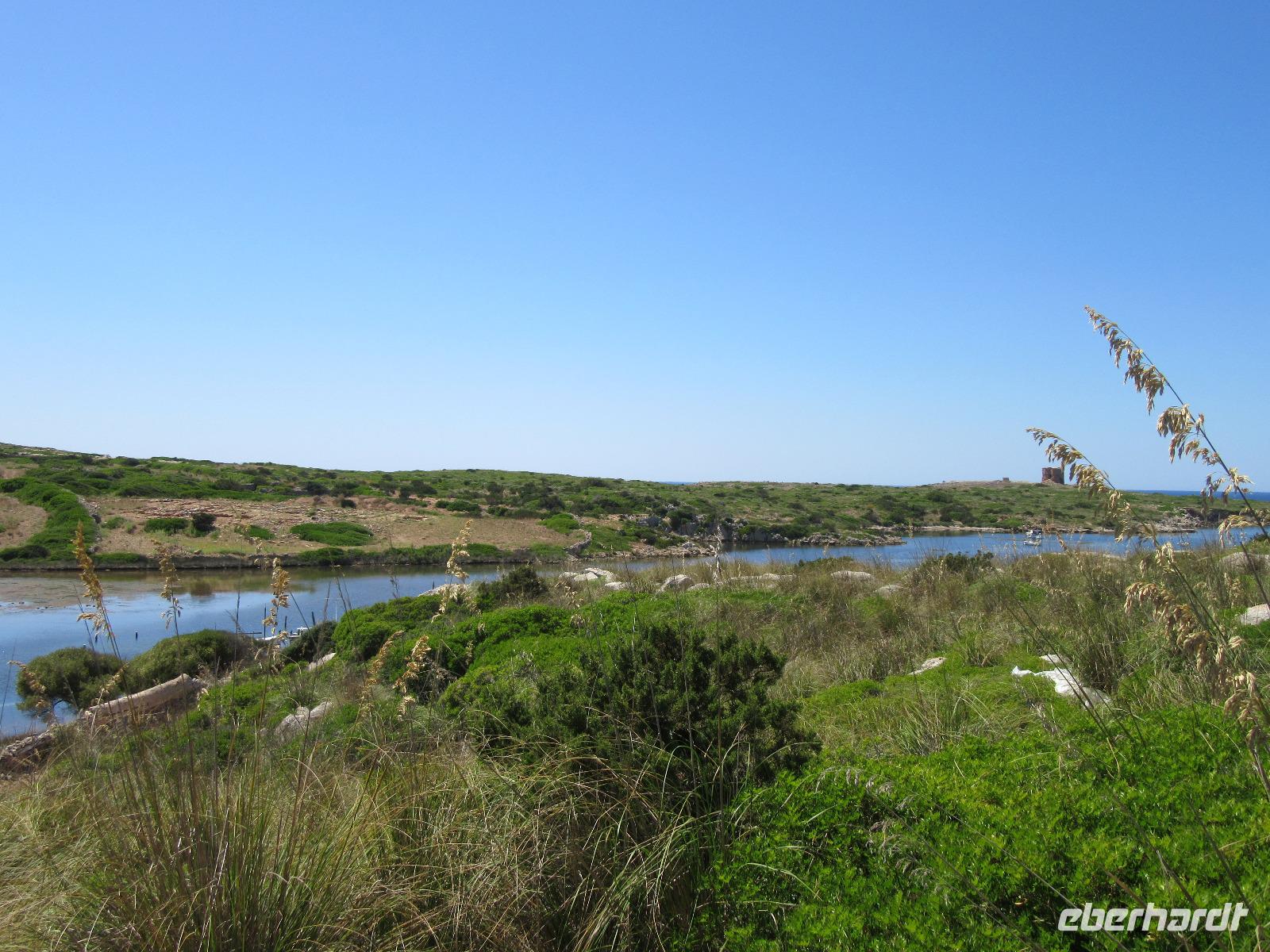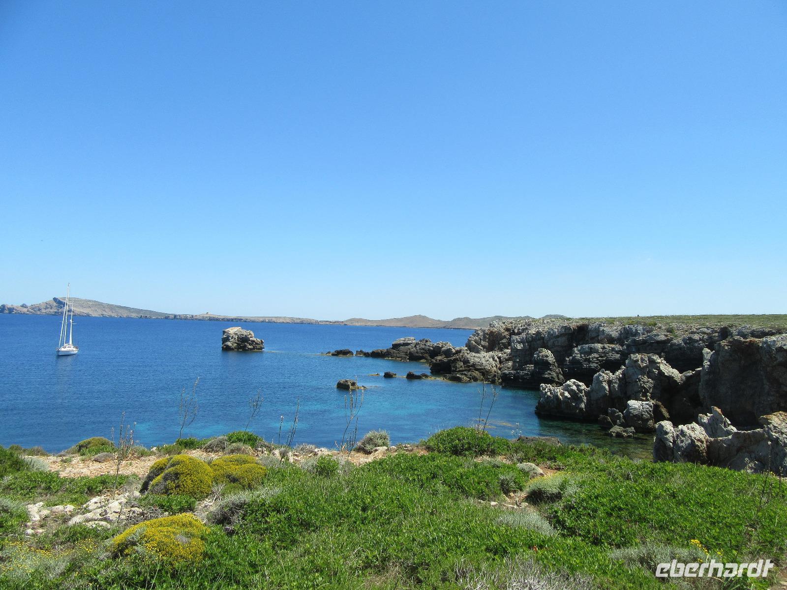 Die Küstenlinie mit den verschiedenen Gebäuden auf dem Felsen und die imposante Natur sind seit 1993 Naturschutzgebiet der UNESCO. Das Meer war so klar und schimmerte in Türkis in der Sonne. Wir sahen den Kap Truch, welcher der südwestliche Punkt Menorcas sich befindet und nur 36 Km von Mallorca entfernt ist. Neben diesem Kap sahen wir die kleine Bucht Cala en Bosc, wo der alte F185 km lange Fernwanderweg Cami de Cavalls beginnt. Heutzutage ist er nur mit Pferd oder zu Fuß durch diesen Weg gehbar.