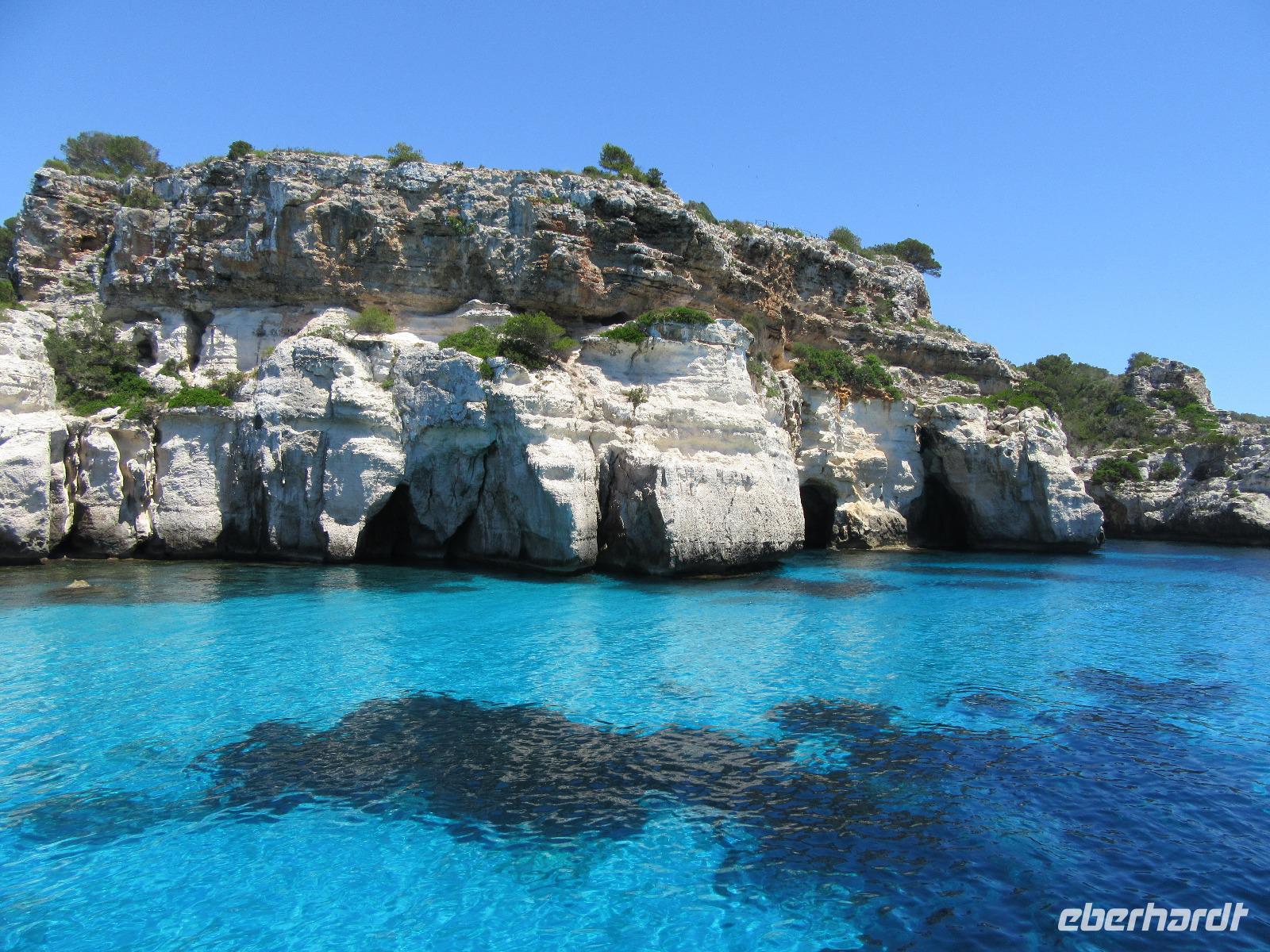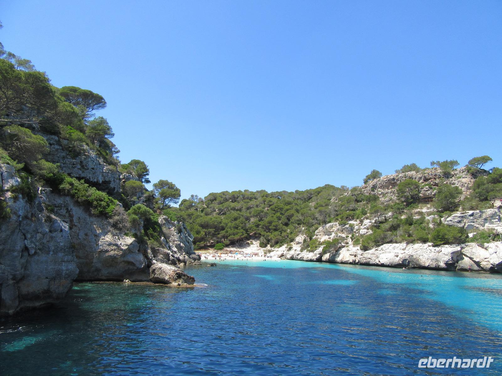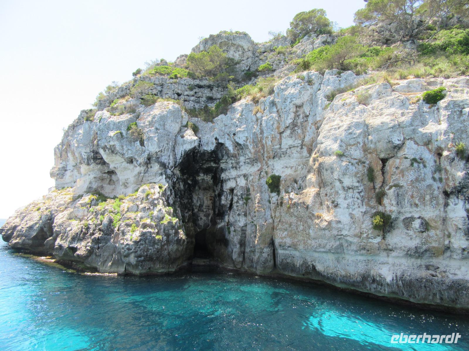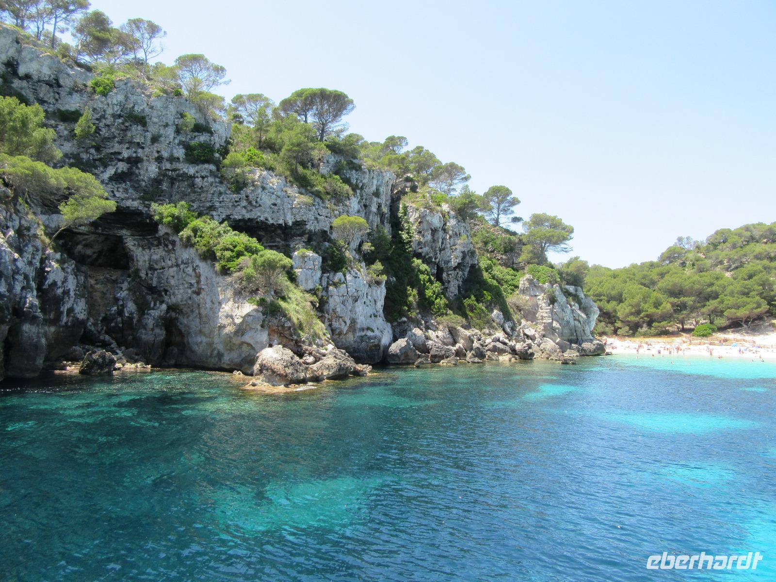 Nach einigen Metern fahrt sahen wir von weitem den ersten FKK Strand Menorcas. Nachdem wir die Strände von Macarelleta und Macarella gesehen hatten, fuhren wir zurück. Unterwegs haben wir zwei Wasserhöhlen gesehen, eine mit zwei Etagen und der Zweiten Höhle, auch Cormarán genannt. Die Legende erzählt: Wenn jemand die Decke dieser Höhle beim Eingang anfasst, bekommt 7 Jahre Glück.