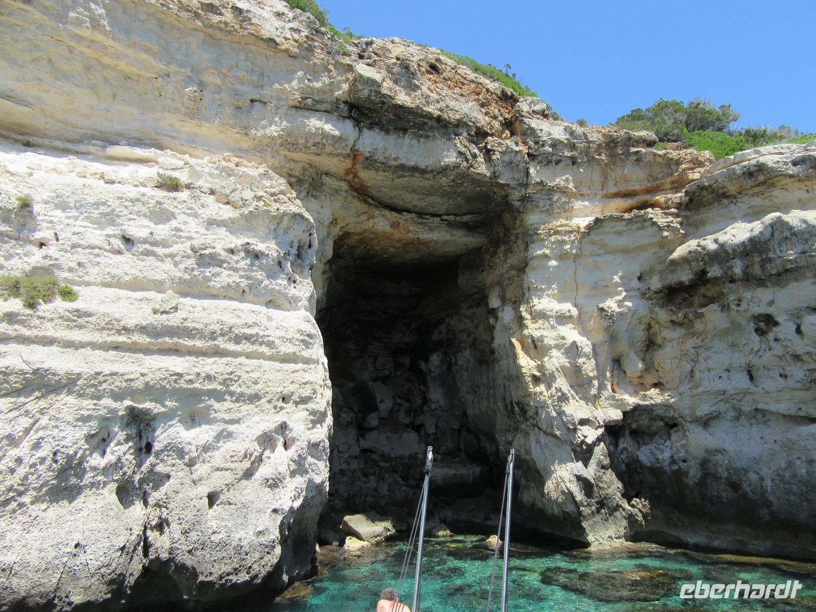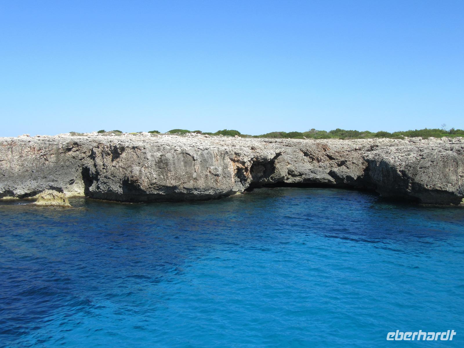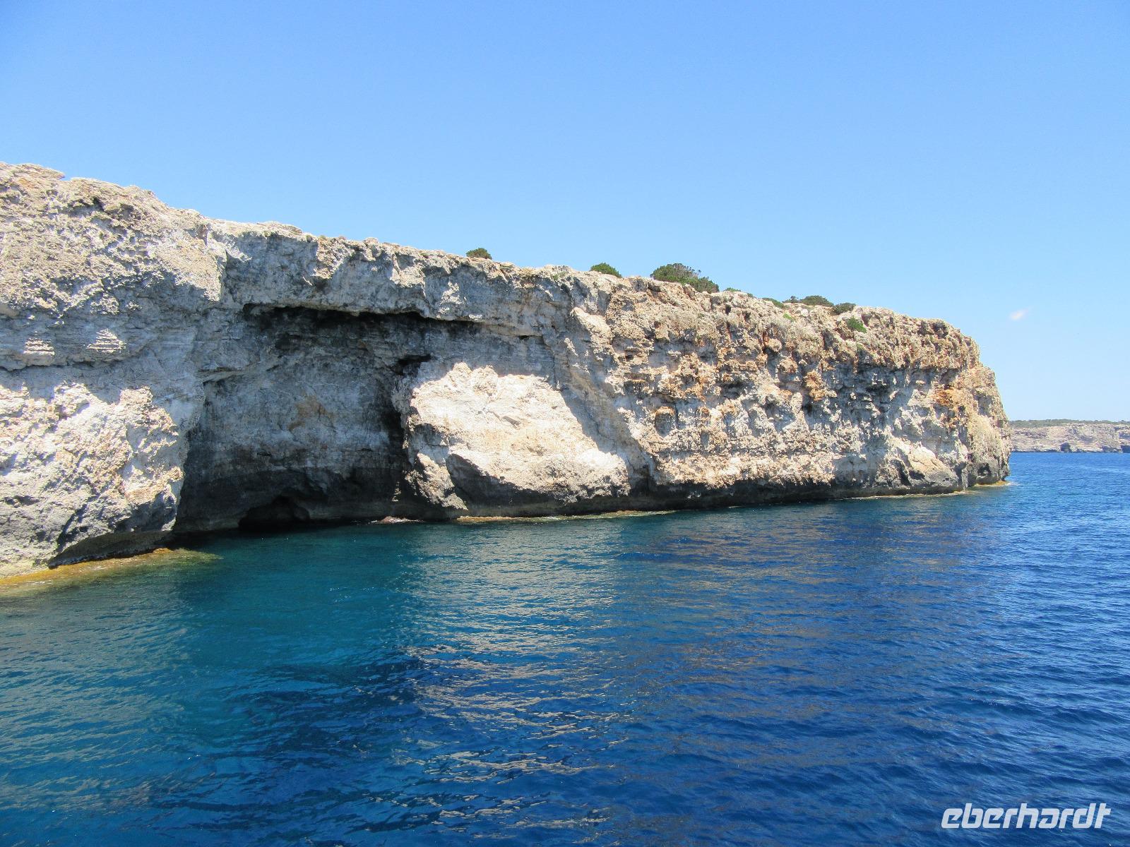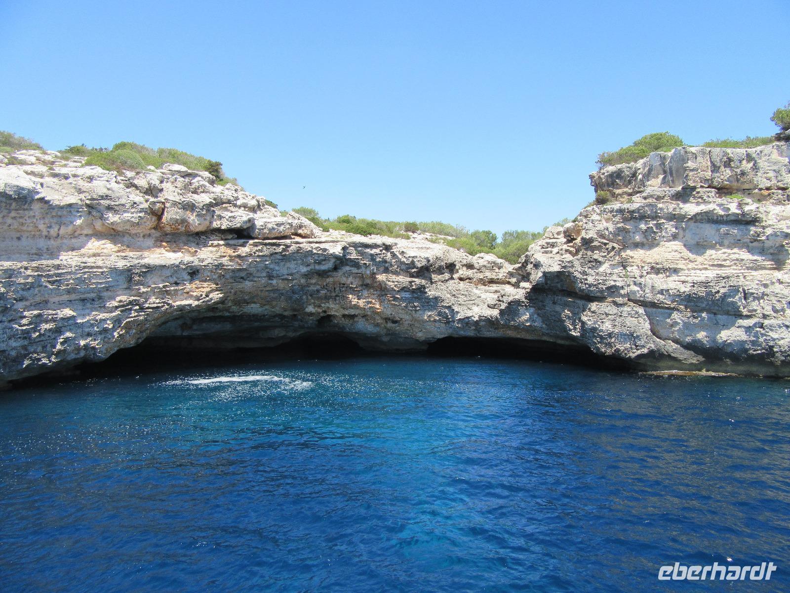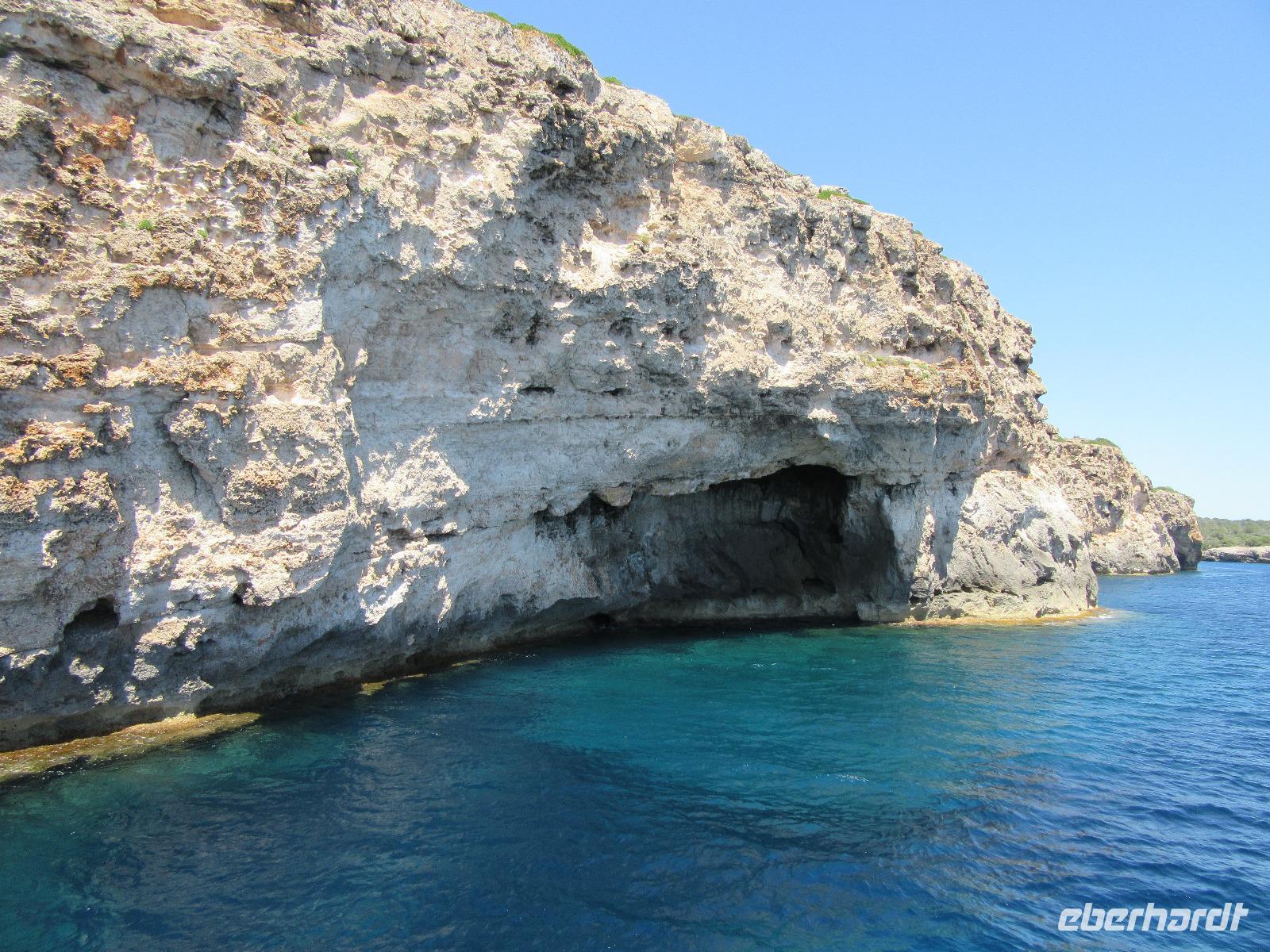 Nach einigen Metern fahrt sahen wir von weitem den ersten FKK Strand Menorcas. Nachdem wir die Strände von Macarelleta und Macarella gesehen hatten, fuhren wir zurück. Unterwegs haben wir zwei Wasserhöhlen gesehen, eine mit zwei Etagen und der Zweiten Höhle, auch Cormarán genannt. Die Legende erzählt: Wenn jemand die Decke dieser Höhle beim Eingang anfasst, bekommt 7 Jahre Glück.