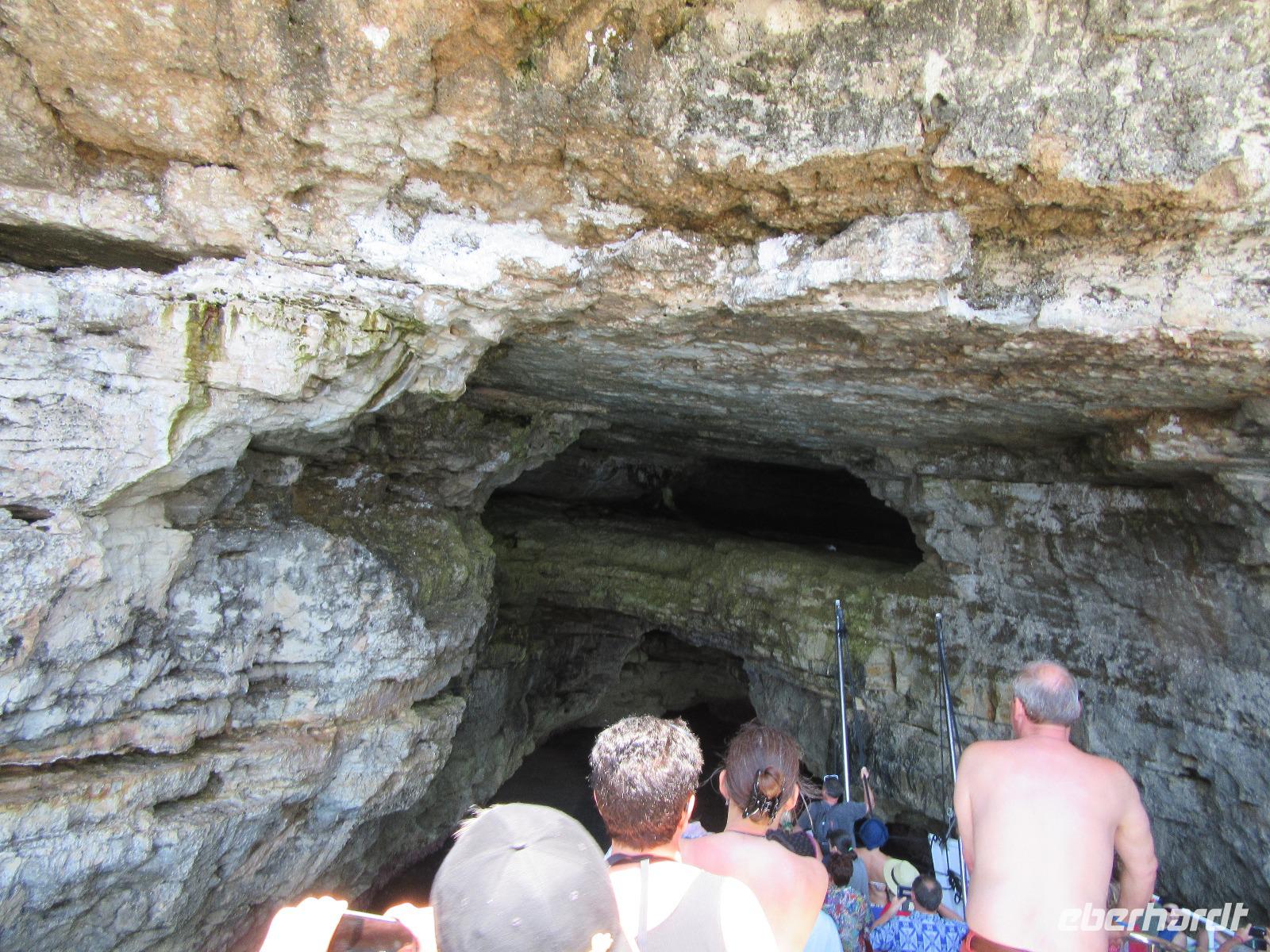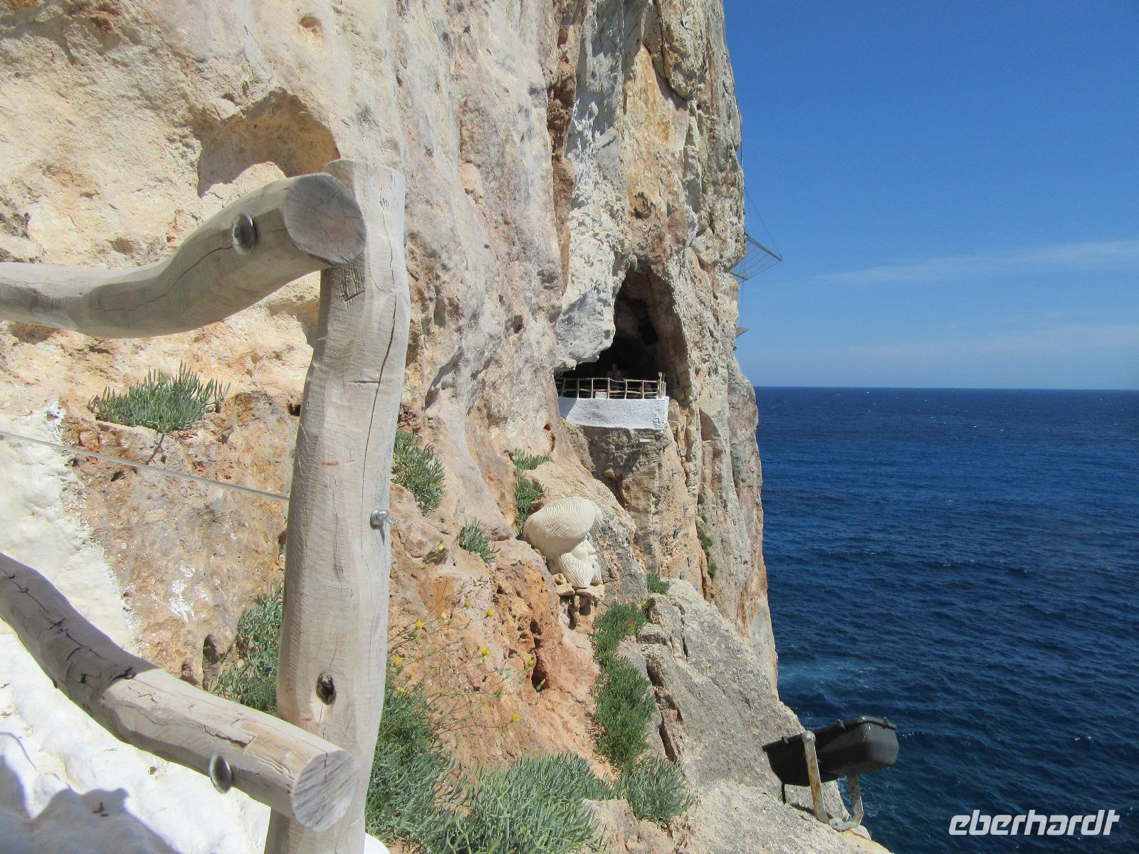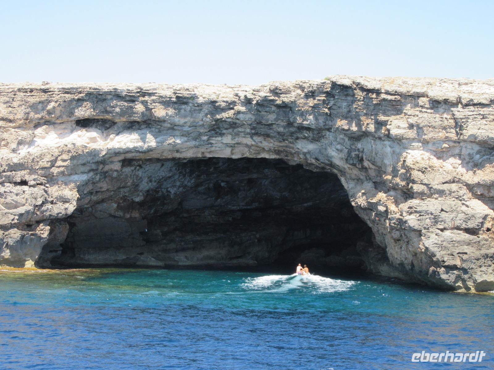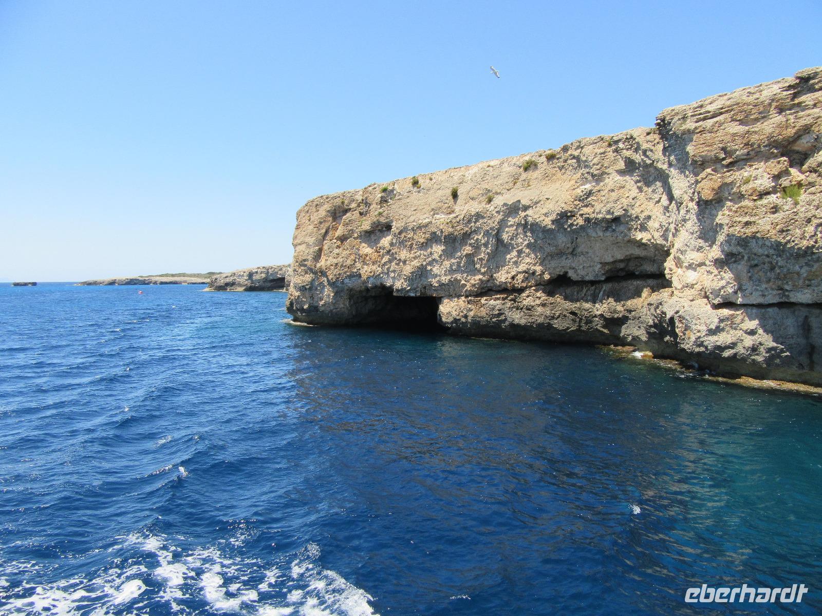 Nach einigen Metern fahrt sahen wir von weitem den ersten FKK Strand Menorcas. Nachdem wir die Strände von Macarelleta und Macarella gesehen hatten, fuhren wir zurück. Unterwegs haben wir zwei Wasserhöhlen gesehen, eine mit zwei Etagen und der Zweiten Höhle, auch Cormarán genannt. Die Legende erzählt: Wenn jemand die Decke dieser Höhle beim Eingang anfasst, bekommt 7 Jahre Glück.