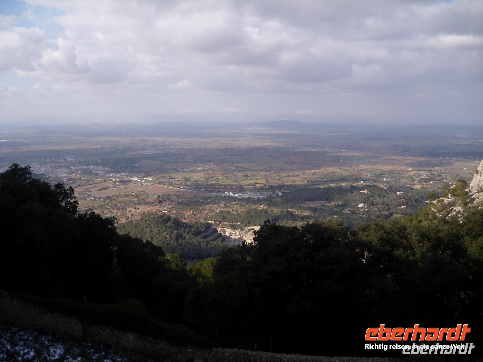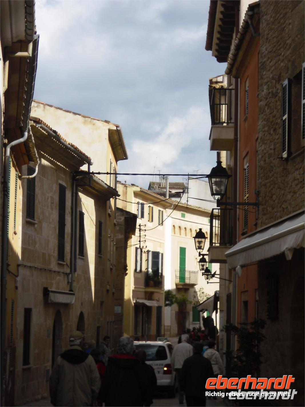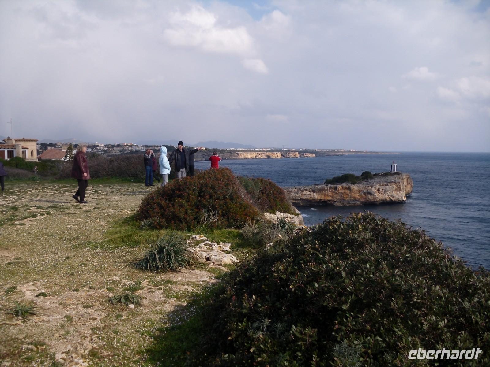 An unserem ersten Tag auf der größten Balearen-Insel ging die Reise in den Osten Mallorcas. Der Tag begann leider nicht so gut. Denn eiegntlich wollten wir nach Sant Salvador, aber hier war die Straße noch wegen Schnee und Eis gesperrt. Ja auch in Mallorca gibt es das weniger Geliebte der Winterzeit. Also fuhren wir zuerst nach Manacor und besuchten die Perlenfabrik und das danebenliegenden Geschäft, in welchem wir verschiedene Holzfiguren erwerben konnten. Das besondere Highlight dieses Tages war der Besuch der Drachenhöhlen in Porto Christo. Hier bekamen wir nicht nur viele Eindrücke über die Stalagmiten und Stalaktiten, sondern auch eine musikalische Darbietung mit klassischer Musik und ein Lichtspiel. In die Höhlen werden in der Hochsaison bis zu 800 Personen stündlich gelassen. Außer unserer Gruppe und ein paar Mallorquiner war an diesem Samstag keiner in den Höhlen. Die 113 Stufen, die uns aus dem Höhlensystem wieder zurück zum Sonnenlicht brachten, nahmen wir in Angriff und jeder erreichte wieder den Bus. Schließlich ging es doch noch nach Sant Salvador. Nach einer sehr kurvenreichen Auffahrt erreichten wir den Wallfahrtsort und hatten durch die Sonne, welche uns verwöhnte eine gute Sicht. Sant Salvador ist eine Kapelle aus dem Jahre 1368 und hat von außen eher den Anschein einer Festung.