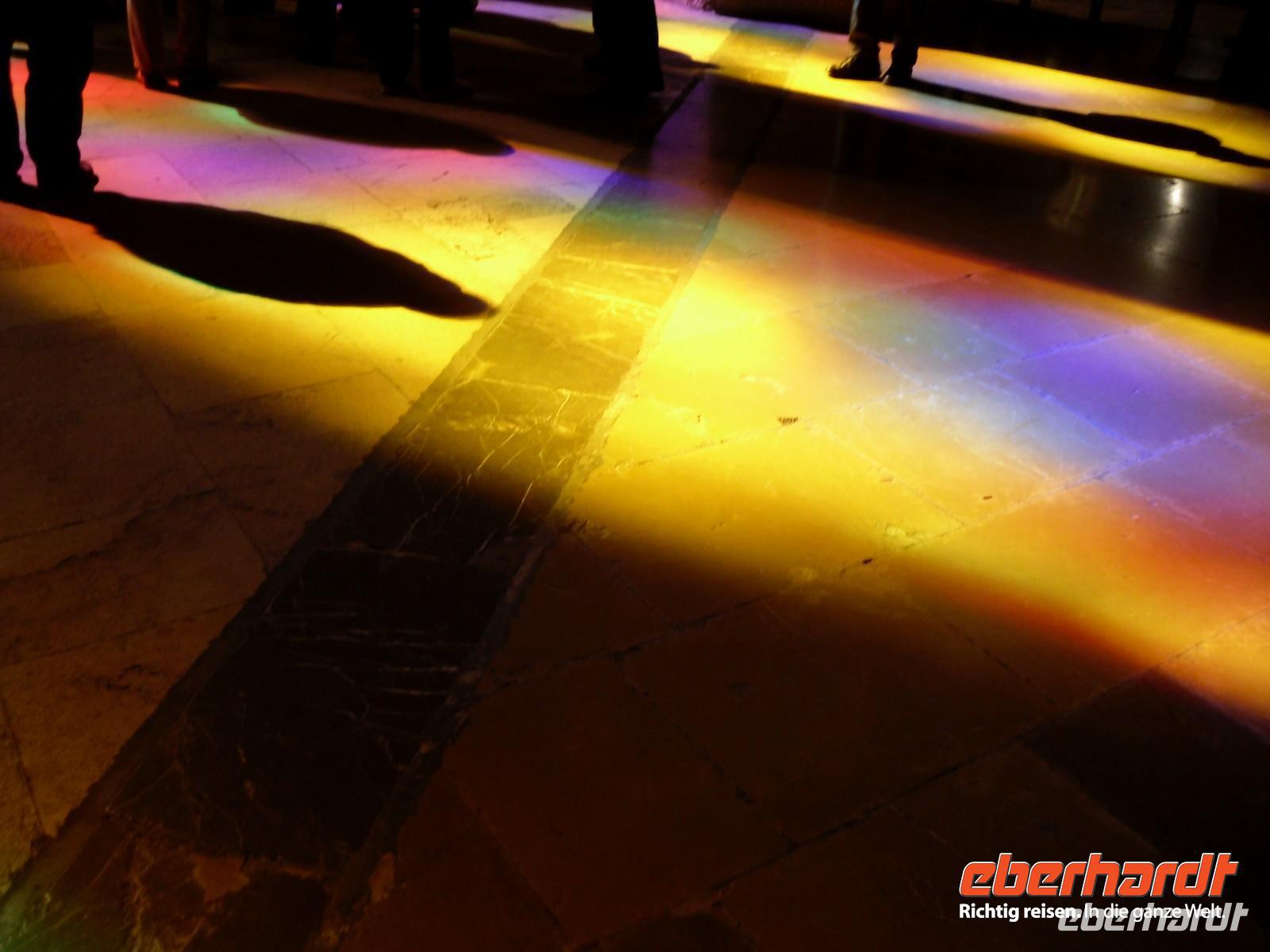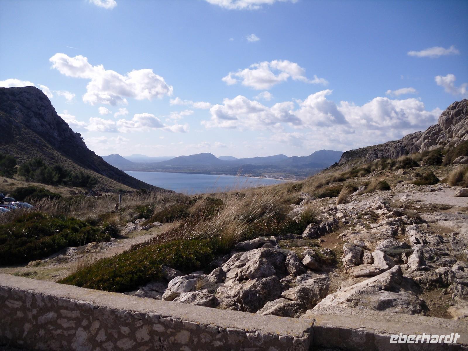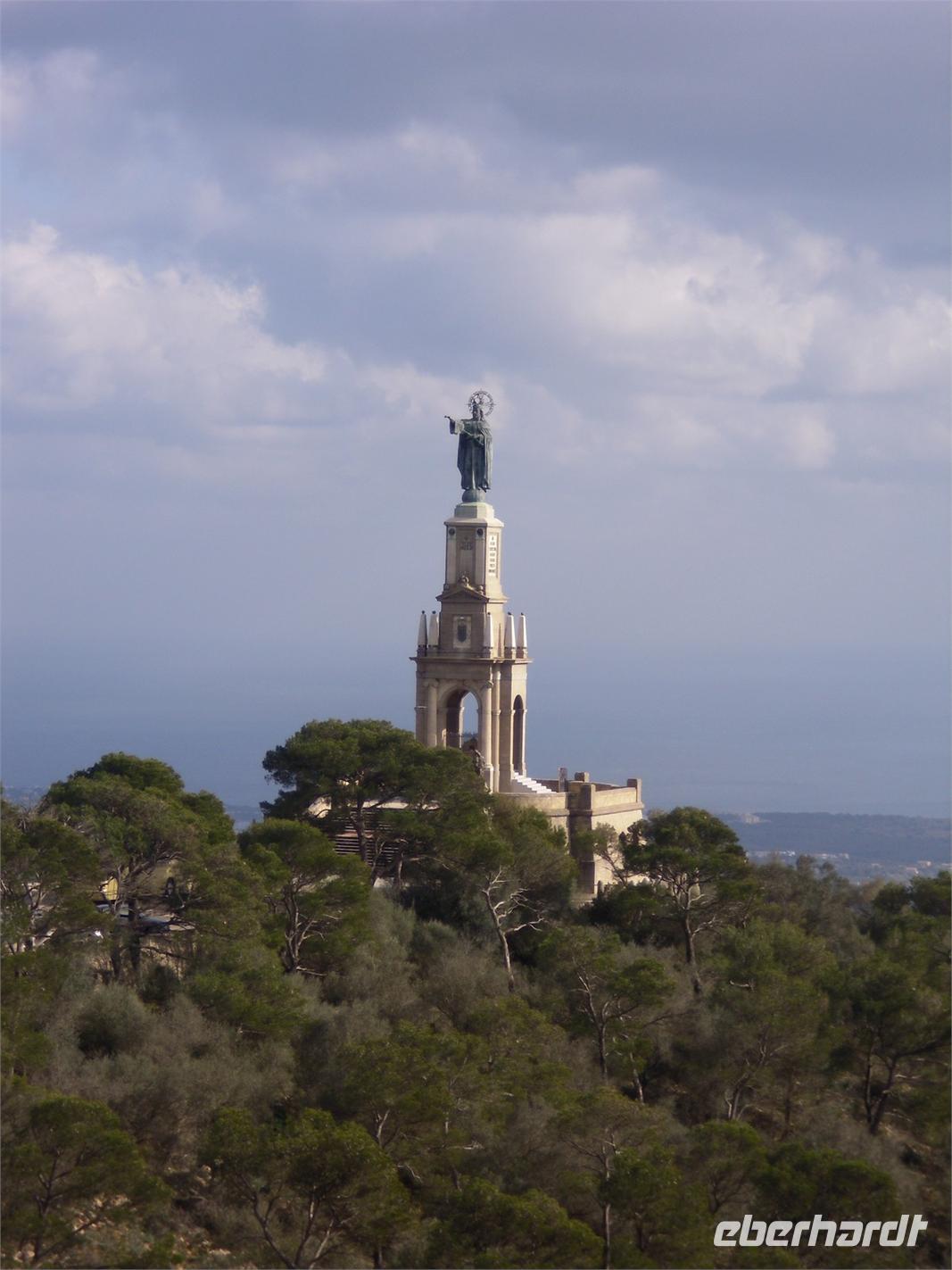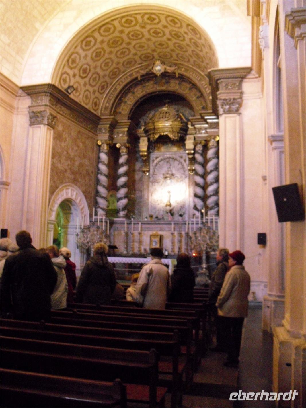 An unserem ersten Tag auf der größten Balearen-Insel ging die Reise in den Osten Mallorcas. Der Tag begann leider nicht so gut. Denn eiegntlich wollten wir nach Sant Salvador, aber hier war die Straße noch wegen Schnee und Eis gesperrt. Ja auch in Mallorca gibt es das weniger Geliebte der Winterzeit. Also fuhren wir zuerst nach Manacor und besuchten die Perlenfabrik und das danebenliegenden Geschäft, in welchem wir verschiedene Holzfiguren erwerben konnten. Das besondere Highlight dieses Tages war der Besuch der Drachenhöhlen in Porto Christo. Hier bekamen wir nicht nur viele Eindrücke über die Stalagmiten und Stalaktiten, sondern auch eine musikalische Darbietung mit klassischer Musik und ein Lichtspiel. In die Höhlen werden in der Hochsaison bis zu 800 Personen stündlich gelassen. Außer unserer Gruppe und ein paar Mallorquiner war an diesem Samstag keiner in den Höhlen. Die 113 Stufen, die uns aus dem Höhlensystem wieder zurück zum Sonnenlicht brachten, nahmen wir in Angriff und jeder erreichte wieder den Bus. Schließlich ging es doch noch nach Sant Salvador. Nach einer sehr kurvenreichen Auffahrt erreichten wir den Wallfahrtsort und hatten durch die Sonne, welche uns verwöhnte eine gute Sicht. Sant Salvador ist eine Kapelle aus dem Jahre 1368 und hat von außen eher den Anschein einer Festung.