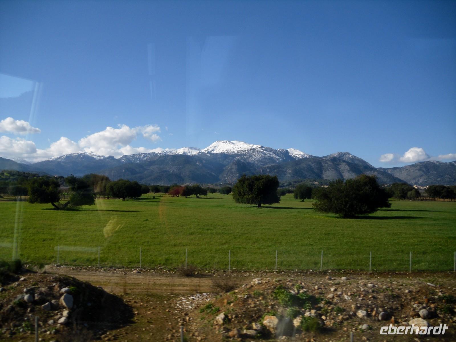 Die Fahrt führt durch 13 Tunnel, auch wenn Lydia und ich 14 gezählt haben, sind es wirklich nur 13. Während der Fahrt passieren wir zahlreichen Orangengärten. An einem Haltepunkt kurz vor Palma ist für uns die Fahrt zu Ende und wir wechseln von der Bahn wieder zum Bus. Lorenzo ist die Strecke während unserer Zeit auf dem Schiff und in Soller mit dem Bus gefahren.