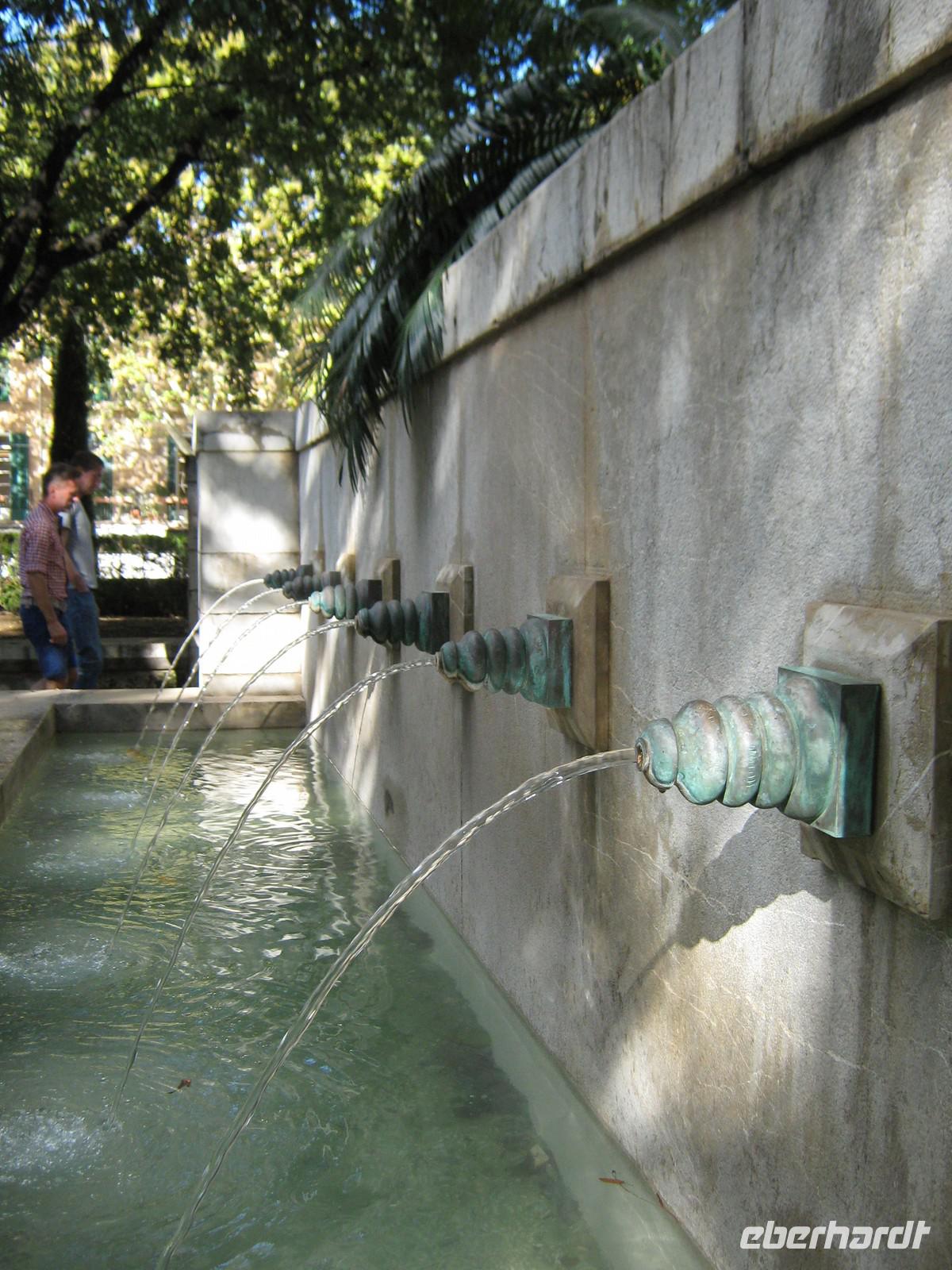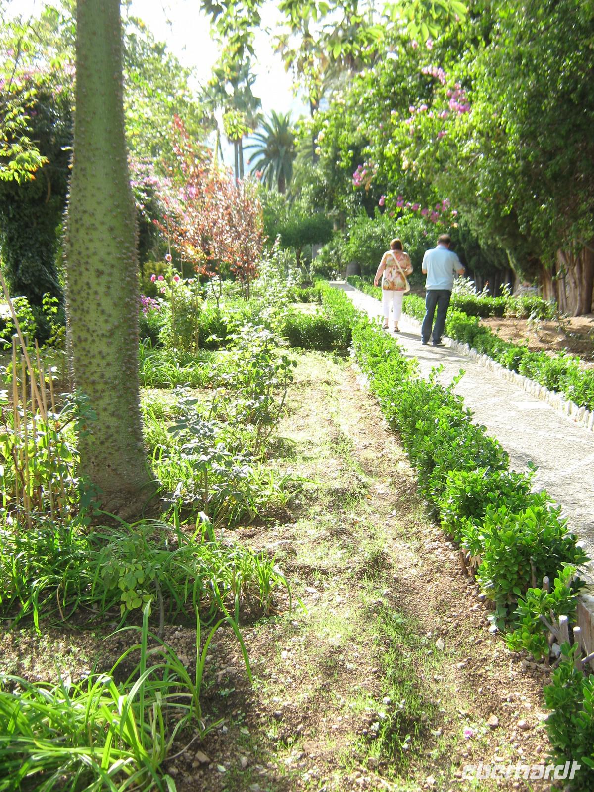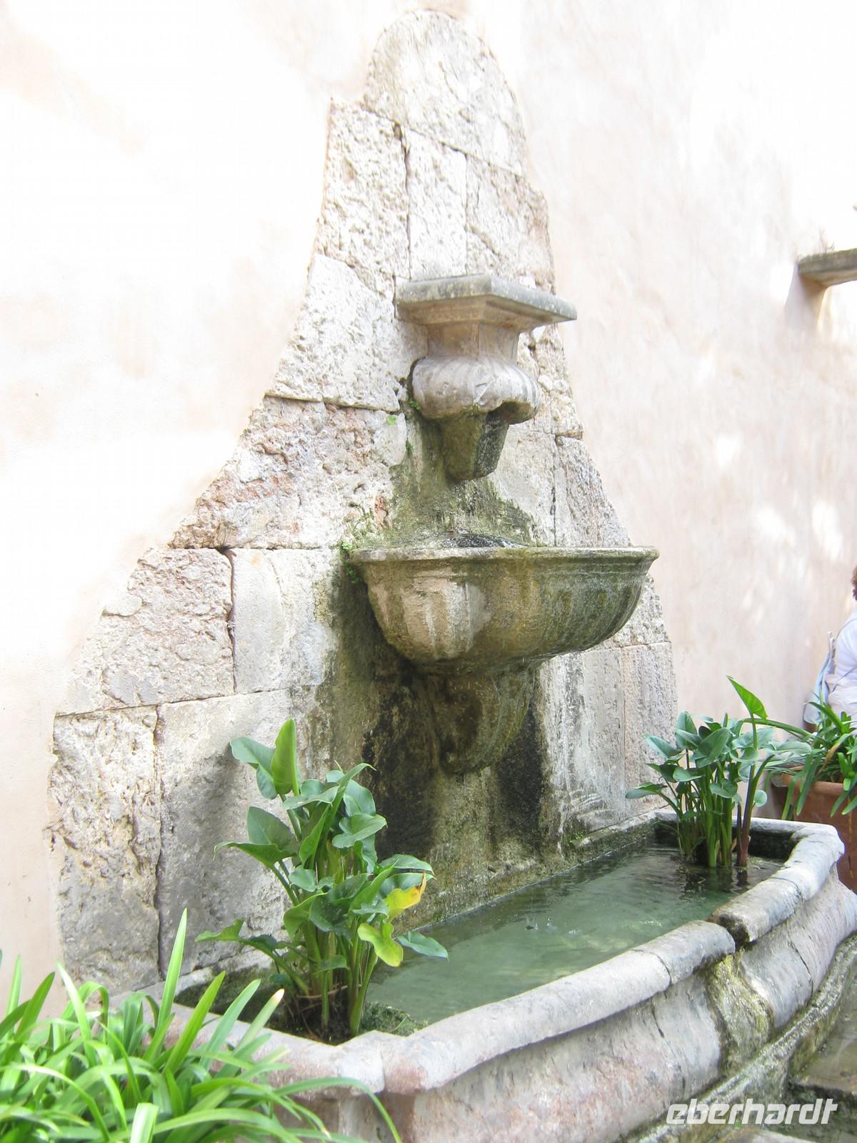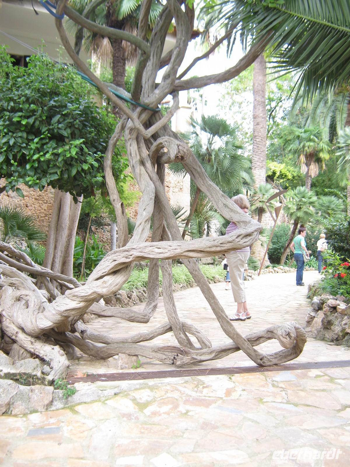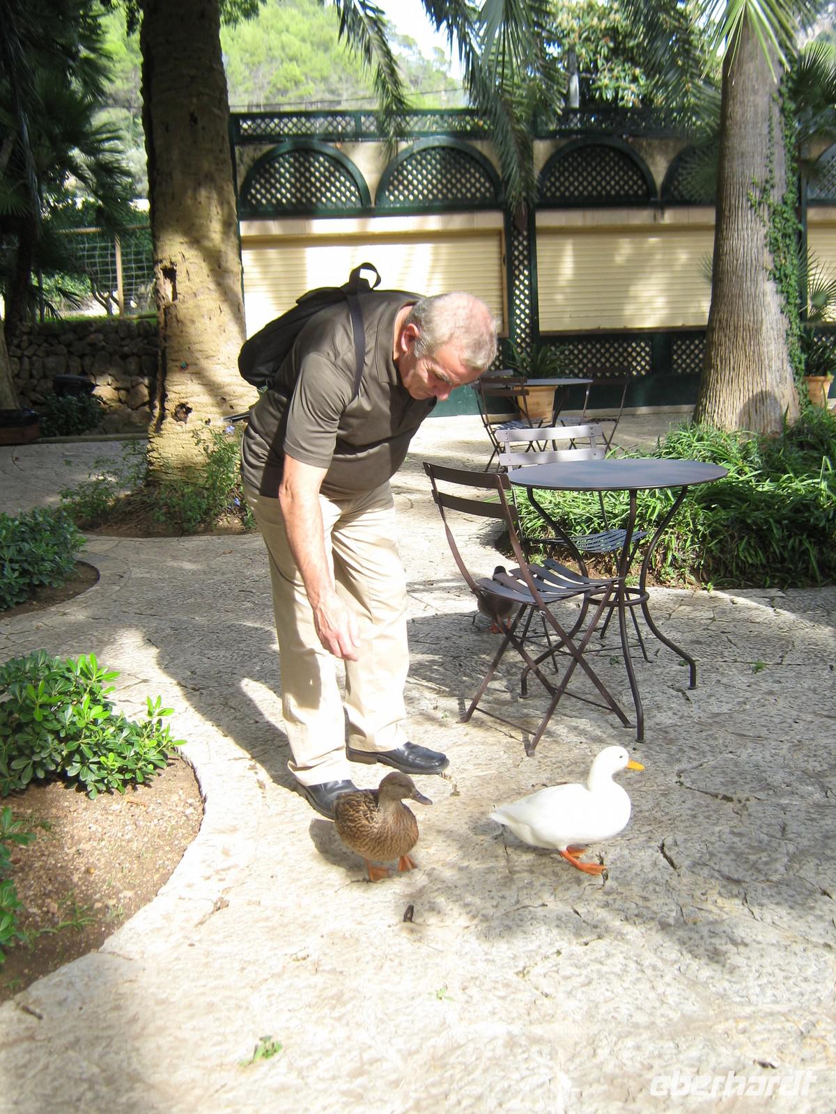 Die erste Station der Ausflügler ist Port d'Andratx, die Stadt der Schönen und Reichen. Als wir die malerische Bucht erreichen, scheint alles noch etwas verschlafen, nur langsam öffnen die Geschäfte und Boutiquen. Wir bummeln entlang der Promenade, trinken einen Kaffee mit Meerblick und beobachten das Treiben im Hafen. Weiter geht es entlang der Küste, wieder mit vielen Fotostopps. Von einem bringt uns unser Busfahrer Toni sogar selbstgepflückte wilde Erdbeeren mit - lecker! Zum späten Vormittag erreichen wir das Erlebnisgut „La Granja". Eintritt gibt's allerdings nicht, bevor man sich nicht mit 2 traditionell angezogenen Damen fotografiert hat. So kaufen sich einige am Ausgang noch ein schönes Souvenir. Wir besichtigen zuerst die Gartenanlage, werden immer von einem Plätschern begleitet. Überall fließt an den Felswänden Wasser herunter, um sich später zu sammeln, Überreste eines maurischen Bewässerungssystems, immer noch funktionstüchtig. Nachdem wir den Garten ausgiebig besichtigt haben, folgt das Herrenhaus, welches auch komplett für Besucher zugänglich ist. Es ist wie eine kleine Zeitreise. In dem Herrenhaus befinden sich neben den typischen Salons, Schlafzimmern und Wirtschaftsräumen auch jede erdenkliche traditionelle Werkstatt, größtenteils noch original ausgestattet - einfach interessant! Die folgende Verkostung von Feigenbrot, Käse, Krapfen mit verschiedenen Marmeladen und der so typischen Sobrasada gönnen wir uns eine Pause in dem angrenzenden Café und beobachten mallorquinische Kinder, wie sie sich in dem weitläufigen Garten austoben können. Am frühen Nachmittag machen wir uns dann auf den Heimweg, nicht ohne ein paar inseltypische Speisen im Gepäck zu haben.