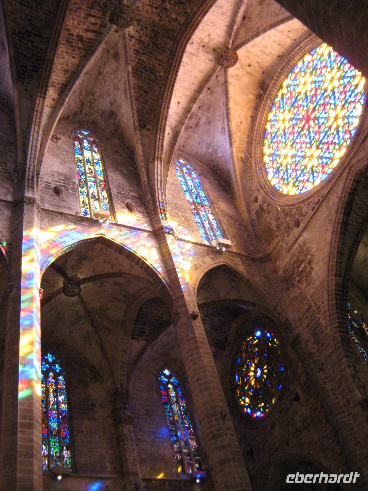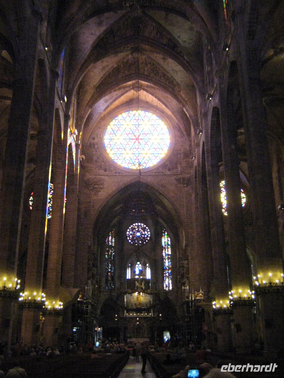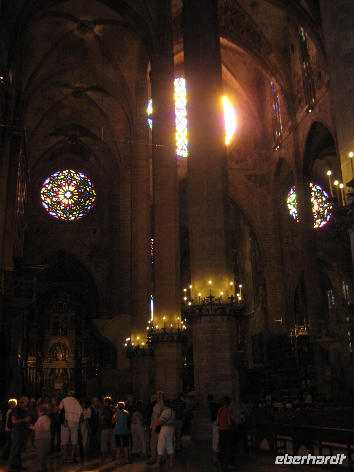 Am nächsten Morgen treffen wir uns in der Lobby unseres Hotels „Gran Fiesta", um zum ersten Ausflug zu starten. Bevor wir nach Palma fahren, lernen wir Magdalena kennen, unsere durch und durch sympathische Reiseleiterin, mit welcher wir in einer Woche die komplette Insel kennenlernen werden. Begrüßt werden wir mit einem katalanischen „Buon Dia", der einheimischen Version des spanischen „Buenos Dias". Mit dem Bus werden wir von Platja direkt nach Palma gefahren, entlang des Sandstrandes, später entlang der beeindruckenden Kulisse der mallorquinischen Hauptstadt. Unser erster Halt ist das Schloss Bellver, oberhalb von Palma gelegen. Das mittelalterlich Castell, welches 1315 fertig gestellt wurde, bietet einen atemberaubenden Rundblick über den ganzen Süden, im Südwesten bis ins Tramuntana-Gebirge. Selbst Cabrera, die kleine Insel im Südosten, ist an dem heutigen Tag sichtbar. Magdalena erzählt viel über die Geschichte des Schlosses, welche immer eng mit der Geschichte Palmas verbunden war. Nach einer knappen Stunde haben wir jede Ecke des kreisrunden Castells besichtigt und machen uns auf in die Stadt. Direkt vor der riesigen Kathedrale halten wir erneut und beginnen den Stadtbummel durch die größte Altstadt Europas. Wir bestaunen den Garten des Almudaina-Palastes, in welchem jede in Europa wachsende Palmenart zu bestaunen ist. Immer wieder macht Magdalena kurze Stopps, um uns die Geschichte der Insel anhand der Bauwerke zu erklären. Kurz vor der Kathedrale treffen wir dann auch wieder unsere Fahrradfahrer, welche den gesamten Weg per Rad zurückgelegt haben. Gemeinsam betreten wir die riesige Kathedrale, katalanisch „La Seu". Das Innere des Baus ist beeindruckend. Der Südost-Giebel des Baus ist geschmückt durch eine aus 1000 Einzelscheiben bestehenden Fensterrosette, welche immer das einfallende Licht in Regenbogenfarben färbt. Wir lassen die Architektur auf uns wirken, die Blicke meist staunend nach oben gerichtet. Überall wird deutlich, dass der berühmte katalanische Architekt Antoni Gaudí auch hier seine Finger im Spiel hatte, sei es der ausgefallene Altar oder auch, wie wir von Magdalena erfahren, die komplette Elektrizität des Gebäudes. Die gewöhnungsbedürftige moderne Gestaltung der Kapelle des Allerheiligsten im rechten Seitenschiff ist dann aber doch das Werk eines Anderen und wahrscheinlich sogar für Gaudí zu ausgefallen. Am Ausgang finden wir uns trotz des Menschengewirrs wieder und setzen unseren Stadtbummel fort. Vorbei am Rathaus samt Vorplatz mit einem uralten Olivenbaum, folgenden wir unserer Reiseleiterin entlang der Carrer Colom hin zum Plaça Mayor und finden uns mitten im Getümmel der quirligen Stadt wieder. Im Mercat Olivar können wir dann auch sehen, wo die Einheimischen ihre frischen Zutaten für die mallorquinische Küche kaufen. Am Plaça d'Espanya löst sich unsere Gruppe auf. Wer mag, kann Palma individuell erkunden, Magdalena fährt mit dem Rest der Gruppe mit dem öffentlichen Bus zurück zum Hotel. Überhaupt ist man von Platja de Palma pefekt an die Hauptstadt angebunden, sodass auch eigenständige Erkundungen gerade am Abend jeden Tag möglich sind. Zum Abendessen sind dann alle wieder da, auch unsere Fahrradfahrer haben ihren Ausflug in und um die mallorquinische Hauptstadt geschafft.