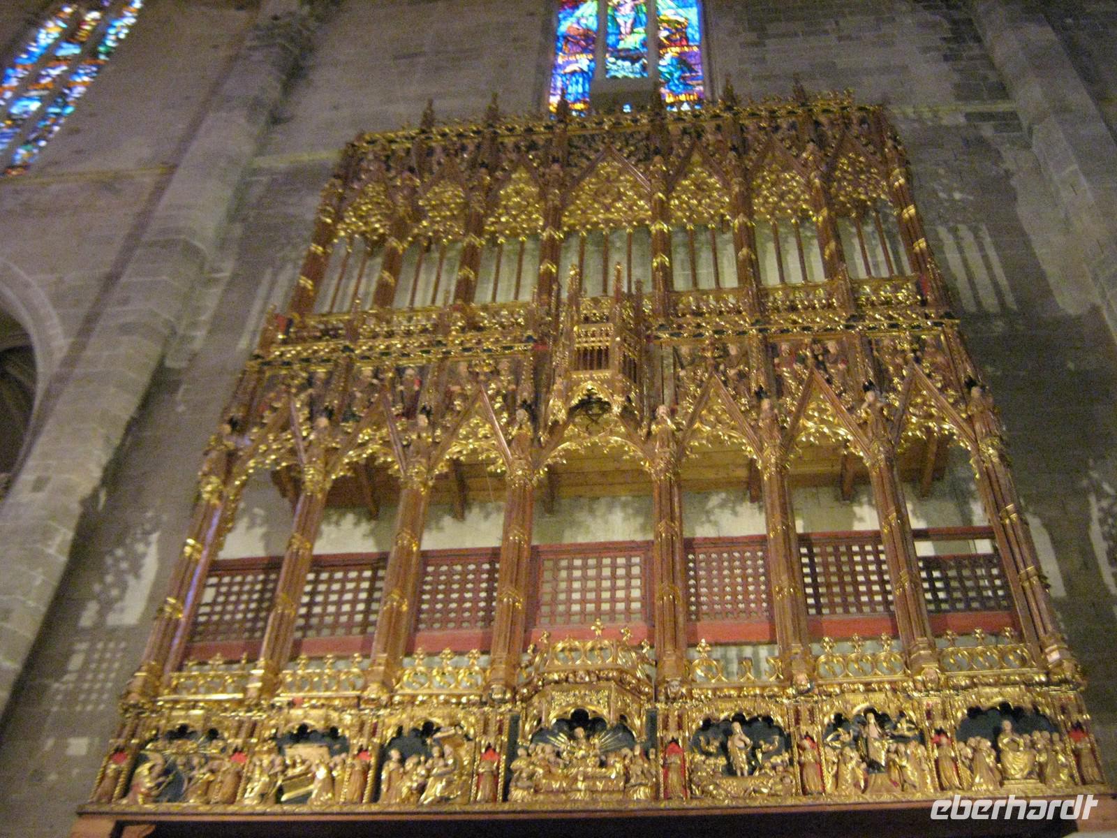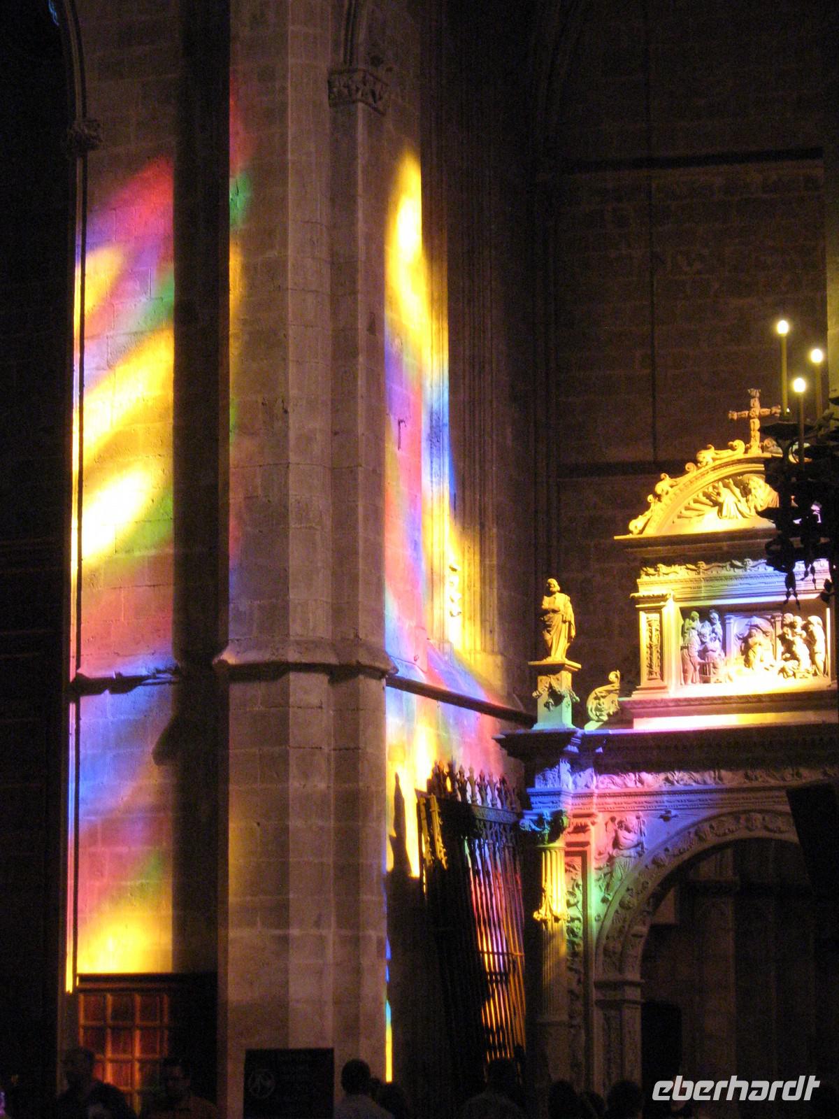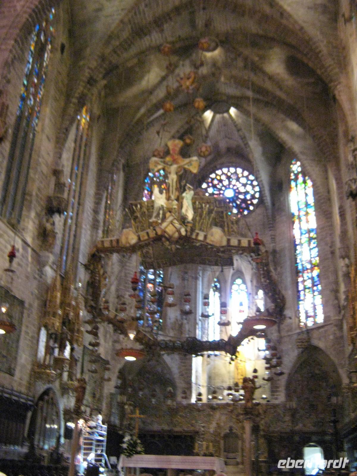 Am nächsten Morgen treffen wir uns in der Lobby unseres Hotels „Gran Fiesta", um zum ersten Ausflug zu starten. Bevor wir nach Palma fahren, lernen wir Magdalena kennen, unsere durch und durch sympathische Reiseleiterin, mit welcher wir in einer Woche die komplette Insel kennenlernen werden. Begrüßt werden wir mit einem katalanischen „Buon Dia", der einheimischen Version des spanischen „Buenos Dias". Mit dem Bus werden wir von Platja direkt nach Palma gefahren, entlang des Sandstrandes, später entlang der beeindruckenden Kulisse der mallorquinischen Hauptstadt. Unser erster Halt ist das Schloss Bellver, oberhalb von Palma gelegen. Das mittelalterlich Castell, welches 1315 fertig gestellt wurde, bietet einen atemberaubenden Rundblick über den ganzen Süden, im Südwesten bis ins Tramuntana-Gebirge. Selbst Cabrera, die kleine Insel im Südosten, ist an dem heutigen Tag sichtbar. Magdalena erzählt viel über die Geschichte des Schlosses, welche immer eng mit der Geschichte Palmas verbunden war. Nach einer knappen Stunde haben wir jede Ecke des kreisrunden Castells besichtigt und machen uns auf in die Stadt. Direkt vor der riesigen Kathedrale halten wir erneut und beginnen den Stadtbummel durch die größte Altstadt Europas. Wir bestaunen den Garten des Almudaina-Palastes, in welchem jede in Europa wachsende Palmenart zu bestaunen ist. Immer wieder macht Magdalena kurze Stopps, um uns die Geschichte der Insel anhand der Bauwerke zu erklären. Kurz vor der Kathedrale treffen wir dann auch wieder unsere Fahrradfahrer, welche den gesamten Weg per Rad zurückgelegt haben. Gemeinsam betreten wir die riesige Kathedrale, katalanisch „La Seu". Das Innere des Baus ist beeindruckend. Der Südost-Giebel des Baus ist geschmückt durch eine aus 1000 Einzelscheiben bestehenden Fensterrosette, welche immer das einfallende Licht in Regenbogenfarben färbt. Wir lassen die Architektur auf uns wirken, die Blicke meist staunend nach oben gerichtet. Überall wird deutlich, dass der berühmte katalanische Architekt Antoni Gaudí auch hier seine Finger im Spiel hatte, sei es der ausgefallene Altar oder auch, wie wir von Magdalena erfahren, die komplette Elektrizität des Gebäudes. Die gewöhnungsbedürftige moderne Gestaltung der Kapelle des Allerheiligsten im rechten Seitenschiff ist dann aber doch das Werk eines Anderen und wahrscheinlich sogar für Gaudí zu ausgefallen. Am Ausgang finden wir uns trotz des Menschengewirrs wieder und setzen unseren Stadtbummel fort. Vorbei am Rathaus samt Vorplatz mit einem uralten Olivenbaum, folgenden wir unserer Reiseleiterin entlang der Carrer Colom hin zum Plaça Mayor und finden uns mitten im Getümmel der quirligen Stadt wieder. Im Mercat Olivar können wir dann auch sehen, wo die Einheimischen ihre frischen Zutaten für die mallorquinische Küche kaufen. Am Plaça d'Espanya löst sich unsere Gruppe auf. Wer mag, kann Palma individuell erkunden, Magdalena fährt mit dem Rest der Gruppe mit dem öffentlichen Bus zurück zum Hotel. Überhaupt ist man von Platja de Palma pefekt an die Hauptstadt angebunden, sodass auch eigenständige Erkundungen gerade am Abend jeden Tag möglich sind. Zum Abendessen sind dann alle wieder da, auch unsere Fahrradfahrer haben ihren Ausflug in und um die mallorquinische Hauptstadt geschafft.