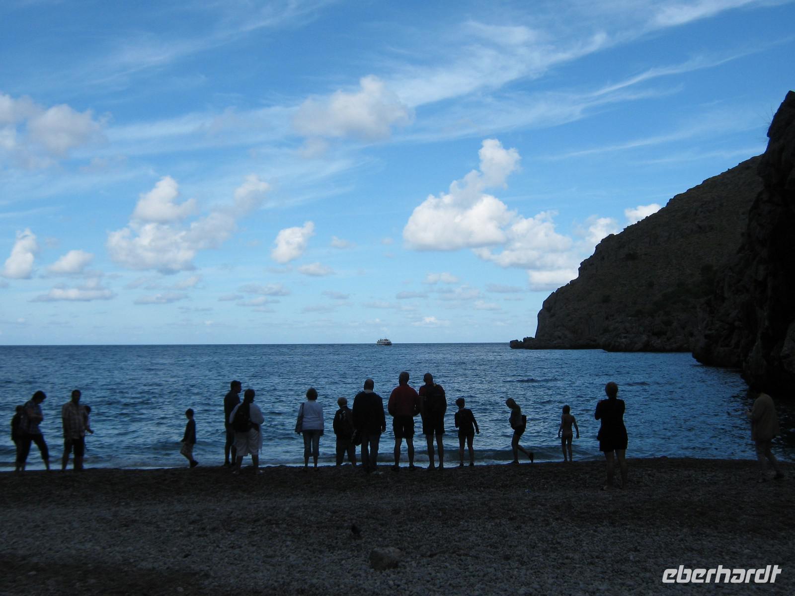 Wochenmärkte sind auf Mallorca immer noch typisch und so starten wir am Mittwoch nach Sineu, um uns den größten dieser Art mal etwas genauer anzusehen. Wir fahren ins Zentrum der Insel, sind fast die ersten Gäste, die den Markt erreichen, viele Händler bauen gerade noch ihre Stände auf. Magdalena führt uns kurz über den Markt, erklärt wo was ist, gibt kulinarische Tipps. Wir schlendern individuell los, können anfangs noch entspannt über den Vieh- und Wochenmarkt gehen, ehe es eine halbe Stunde später merklich voller wird. Nun ist auch klar, warum Magdalena so zeitig da sein wollte. Wer den Ständen der Händler folgt, wird automatisch hinauf zu der alles dominierenden Pfarrkirche Nostra Senyora dels Angels geführt. Erst im Inneren kommt man kurz zur Ruhe, ehe draußen erneut die Hektik des Marktes wartet. Mittlerweile müssen wir uns schon fast etwas durchdrängeln, bevor wir den Bus erreichen. Toni fährt ins weiter gen Norden, wo wir in Port de Pollença erneut in ein Boot steigen. Wir fahren entlang der Halbinsel Formentor, werden zu Beginn sogar von Delfinen begleitet. Der Leuchtturm scheint uns lange Zeit zu beobachten, ansonsten sind an Land kaum noch Gebäude zu entdecken. Das altehrwürdige Hotel „Formentor" sei hier ausgenommen. An der Spitze der Halbinsel scheint uns der Wettergott dann zu verlassen. Es beginnt zu nieseln, die Sicht wird schlechter. In Platja Formentor gießt es dann aus allen Eimern. Wir beschließen, zu warten, bis der Regen etwas abnimmt, um den kurzen Fußweg zum Bus zurückzulegen. Doch als wir losgehen, scheint sich nach 200m Fußweg der Himmel über uns zu öffnen und überall scheint nur noch Wasser zu sein. Angekommen im Bus sind wir alle ziemlich durchnässt, beschließen allerdings, uns dadurch unsere Urlaubslaune nicht verderben zu lassen. Von Alcudia sehen wir aufgrund der mittlerweile beschlagenen Scheiben nicht mehr ganz so viel, allerdings haben wir zum Mittag noch Zeit, die Stadt etwas zu Fuß zu erkunden. Der Großteil bevorzugt allerdings das Aufwärmen in einem der vielen kleinen Cafés und so lernen auch mallorquinische Kellner, wie man Grog macht! Die Weiterfahrt nach Port de Alcudia ist kurz, der Aufenthalt an dem wunderschönen Sandstrand dafür umso länger. Die Sonne lässt sich wieder von Ihrer besten Seite blicken, wir stehen am Strand, beobachten das Meer und lassen uns von den Sonnenstrahlen aufwärmen.