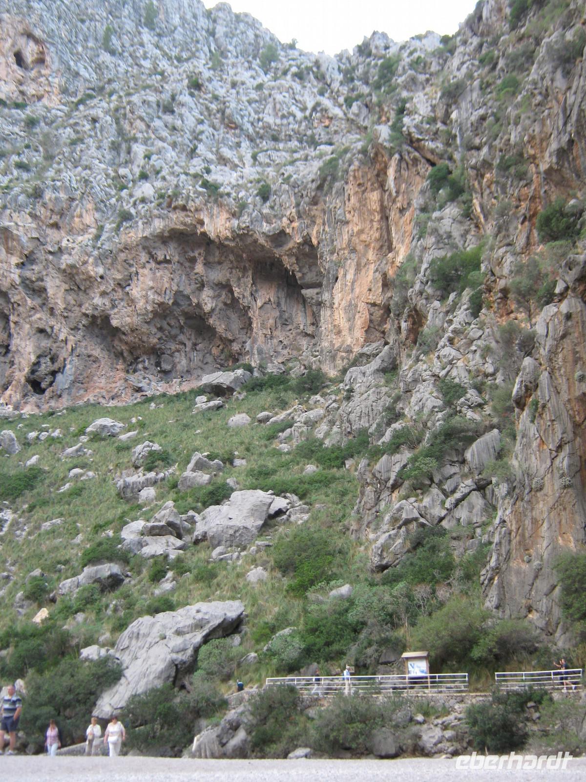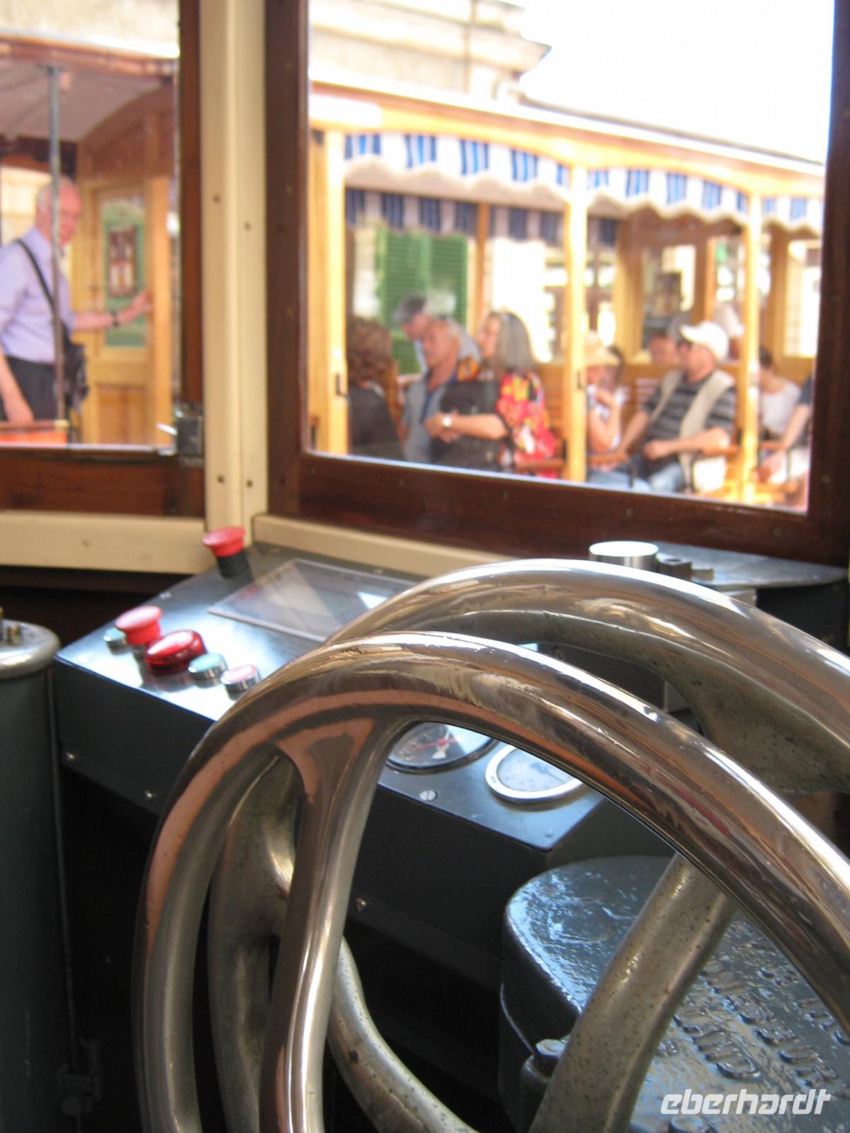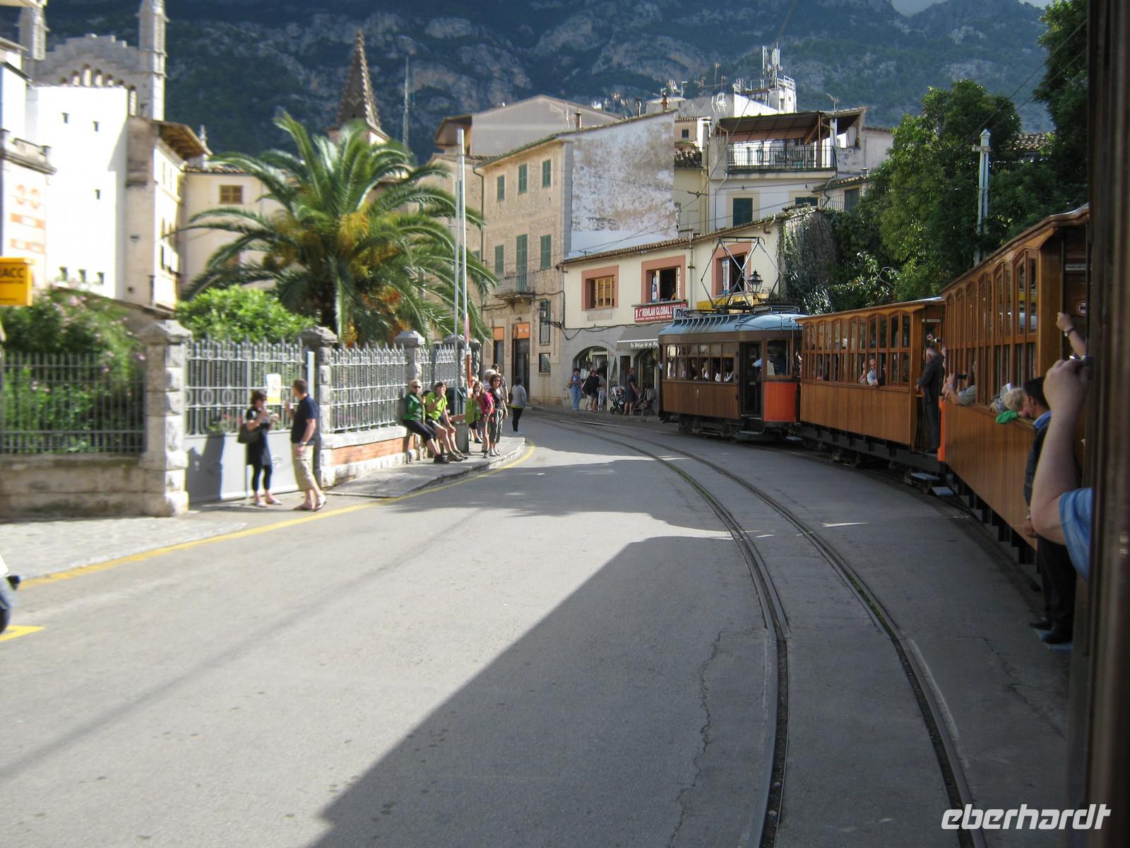 Mallorca per Bus, Schiff, Straßenbahn und Eisenbahn- für den heutigen Tag haben wir uns eine ganze Menge vorgenommen. Vorbei an Inca fahren wir in den Nordwesten des Tramuntana-Gebirges, machen erneut ein paar tolle Fotostopps. Für die erste Pause halten wir dann an einem kleinen Kiosk, kommen in Genuss des typisch mallorquinischen „Herbas", einem Kräuterschnaps, welchen wir hier sogar selbstgebrannt erstehen konnten. Nach einem kurzen Abstecher zum Gorg Blau, einem großen Stausee im Gebirge, kommt das erste Highlight des Tages - die Serpentinenstraße hinab nach Sa Calobra. Links und rechts geht es steil bergab. Die Bauweise, vor allem des berühmten Krawattenknotens, ist schon ziemlich beeindrucken. Angekommen in Sa Calobra folgen wir zu Fuß der Ausschilderung hin zur Torrent de Pareis. Die Paradiesschlucht sieht aus, als hätte jemand einen Keil in die gewaltigen Felsen gehauen. Bis zur Ablegezeit unseres Bootes gehen wir Mittagessen und genießen die immer wieder hervorlukende Sonne. Gegen 14Uhr sitzen wir in Verkehrsmittel Nummer 2, werden von den Wellen durchgeschaukelt und fahren mit dem Schiff nach Port de Soller. Es ist auffallend, dass es hier am Westufer kaum Strände, dafür viele abgelegene Buchten gibt. Angekommen in Port de Soller suchen erstmal alle Augen Magdalenas auffallenden Leuchturm-Schirm, wir warten bis alle ausgestiegen sind und machen uns dann auf den kurzen Weg zu der alten Straßenbahn, welche das Hafenstädchen mit Soller verbindet. Wir haben einen ganzen Waggon für uns und so können wir erneut ganz in Ruhe beobachten, wie sich die Landschaft in Richtung Landesinnere verändert. In Soller ist dann die Zeit doch etwas knapp. Wir haben eine gute halbe Stunde, um von dem alten Bahnhof einen kurzen Abstecher in die Altstadt zu machen. Doch dieser lohnt sich! Am Plaça de la Constitutió herrscht das blühende Leben. Ein Eis im Schatten der riesigen Pfarrkirche Sant Bartomeu ist fast ein Muss! Wer den Schienen der Straßenbahn erneut nach oben folgt, findet auch einfach den Rückweg und kurze Zeit später sitzen wir in einem der Wahrzeichen Mallorcas, dem „Roten Blitz". Obwohl nicht rot, ist so doch sehr nostalgisch und die Fahrt ein Erlebnis. Immer wieder verdunkelt es sich schlagartig und wir fahren in einen der riesigen Tunnel, nur um danach wieder einen wunderschönen Ausblick zu haben. Es dauert eine knappe Stunde, ehe der Zug hält und wir unsere Endstation erreicht haben. Toni wartet schon mit seinem Bus auf uns und so werden wir erneut sicher nach Hause gebracht.