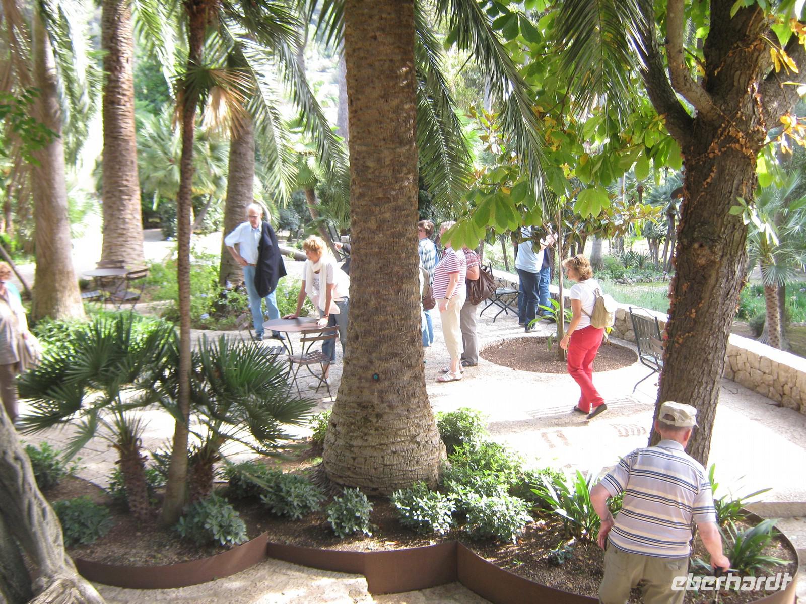 Der heutige Tag führt uns erneut ins Gebirge. Mit dem Bus machen wir uns auf nach Valldemossa, der kleinen, hoch gelegenen Stadt, in welcher Chopin und George Sand einen Winter verbrachten. Nach kurzem Fußweg erreichen wir das alte Kloster, erneut sind wir die erste Gruppe, welche zur Besichtigung da ist und haben somit viel Ruhe, um Magdalenas Ausführungen zu lauschen. Die Klosterkirche, eine alte Apotheke und die Gemächer sind stille Zeugen einer vergangenen Zeit. Bevor wir das Kloster verlassen, lauschen wir einem wundervollen Klavierkonzert mit Werken von Chopin, welches die Führung wunderbar abrundet. Den Rest des Morgens nutzt jeder, um die Stadt individuell zu erkunden oder bei einem Kaffee die wärmende Oktobersonne zu genießen. Später fahren wir erneut entlang der Küste, machen immer wieder kleine Fotostopps an faszinierenden Aussichtspunkten, wie der „Löchrigen", einer seltsamen Felsformation bei Deià. Auf den riesigen Olivenhainen sieht man Arbeiter bei der Olivenernte, laut Magdalena ist es schon die zweite in diesem Jahr. Wir halten erneut in Port de Soller, diesmal mit mehr Zeit, um das Städtchen zu erkunden, die heute wieder strahlende Sonne an der Promenade zu genießen oder beim Mittagessen mallorquinische Köstlichkeiten zu probieren. Der weitere Weg führt uns nun erneut etwas ins Landesinnere, wir passieren die Strecke, welche wir vor 2 Tagen schon mit dem „Roten Blitz" befahren haben. Diesmal halten wir allerdings, um ein weiteres Kleinod dieser Insel zu besichtigen - die arabischen Gärten von Alfabia. Während der ganzen Zeit sind wir fast allein, nur vereinzelt sind weitere Touristen unterwegs. So haben wir mehr Zeit, uns den vielen versteckten Schönheiten zu widmen, seien es kleine Fontänen, eigenartig verwachsene alte Olivenbäume oder einfach nur freche Enten, welche ganz gern etwas von uns zu essen haben wollen. Wir schlendern, vertiefen uns oft in Gespräche und genießen die Ruhe. Der abschließende Rundgang durch das alte Herrenhaus zeigt uns sogar ein Gemach, in welchem einst eine spanische Königin nächtigte. Highlight ist dann noch eine alte Olivenpresse, an welcher Magdalena ansehnlich erklärt, wie das Öl früher hergestellt wurde. So langsam schlendern wir zurück, lassen abends den Tag diesmal an der Hotelbar ausklingen.
