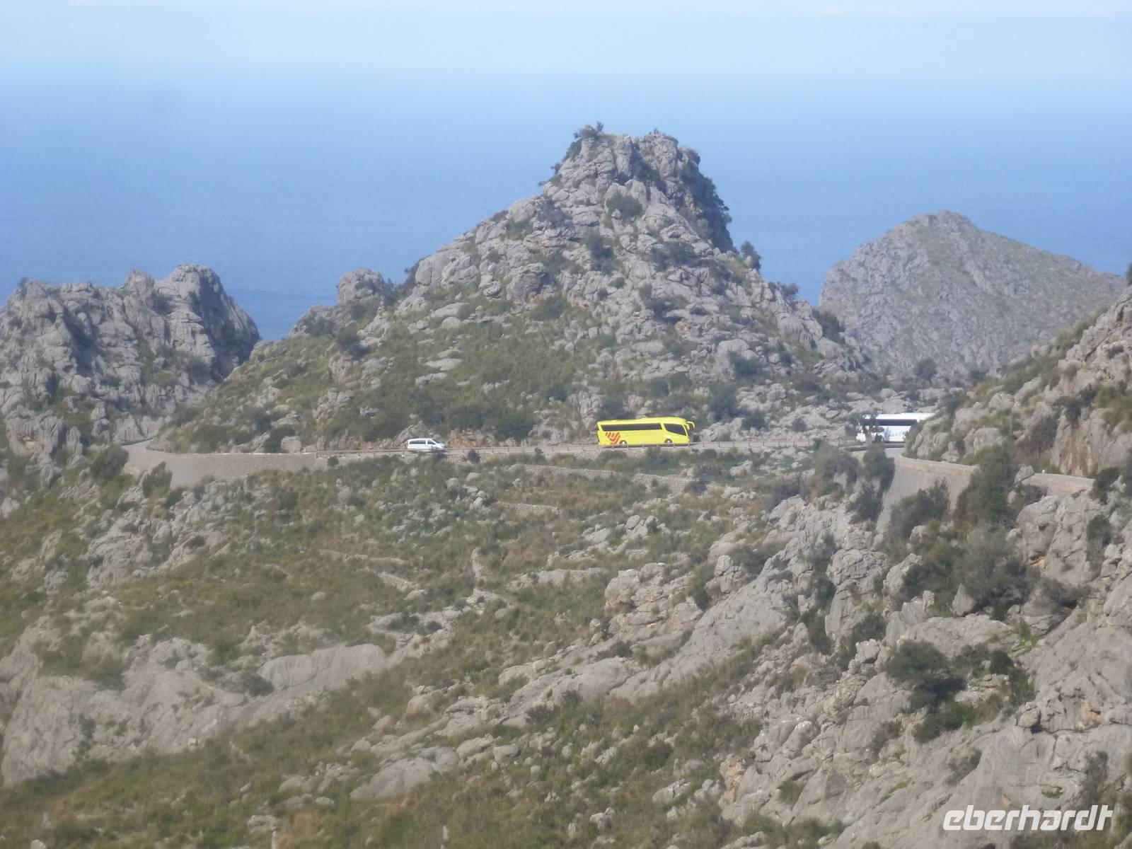 Vom Bahnhof in Palma starten wir unsere heutige Entdeckungstour mit der nostalgischen Eisenbahn dem „Roten Blitz" aus dem Hause Siemns. Durch zahlreiche Tunnel, vorbei an Orangen-, Zitronen- und Olivenplantagen erreichen wir den kleinen Küstenort Soller. Weiter ging es mit einer Straßenbahn Baujahr 1913 ruckelnd und quitschend zum Hafen - Porte de Soller. Auf der 3.Etappe erreichen wir mit einem Schiff entlang der felsigen Westküste, die romantische Bucht von Sa Calobra. Einige Gäste wanderten durch einen in den Berg gehauenen Tunnel zur romantischen Schlucht Torrente de Pareis, andere genossen die warmen Sonnenstrahlen. Unser Fahrer Jose erwartete uns am Nachmittag und wir starteten über eine enge, äußerst spektakuläre Serpentinenstraßen des Tramuntana - Gebirges, in Richtung Palma. Von weitem konnten wir den Gipfel des höchsten Berges der Insel, dem 1443m hohem Puig Mayor, sehen. Zurück im Hotel angekommen, verabschieden wir unsere Busbesatzung und ein aufregender, erlebnisreicher Tag geht zu Ende.