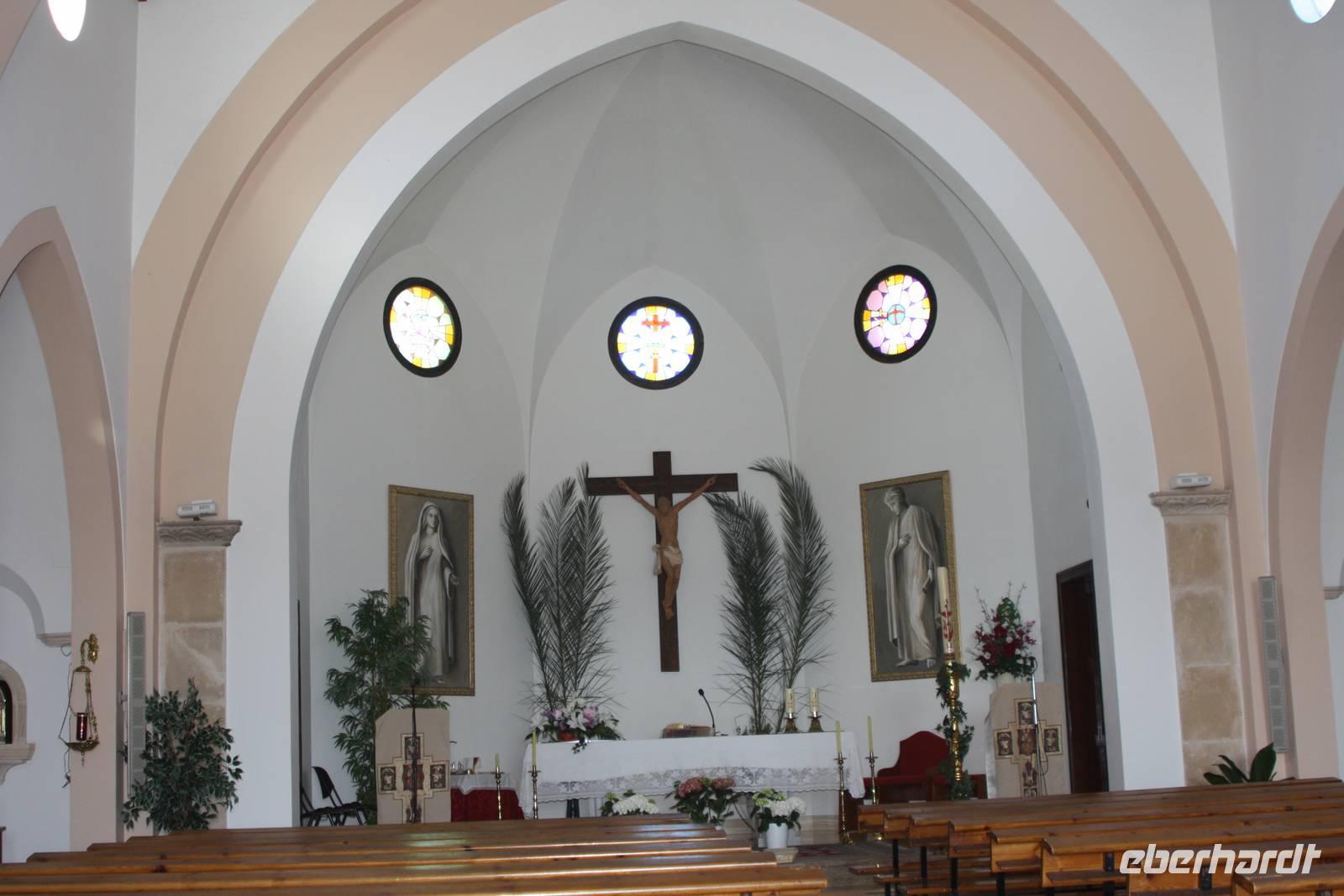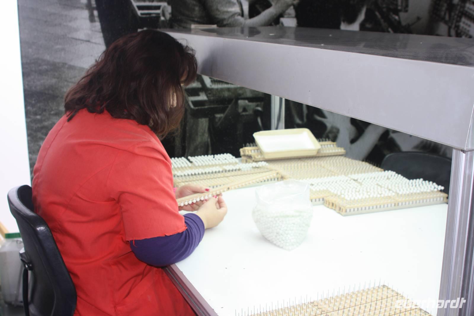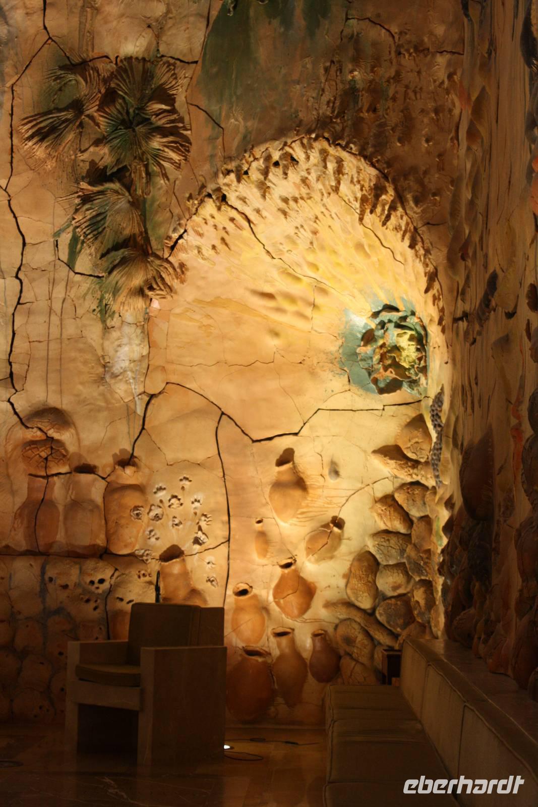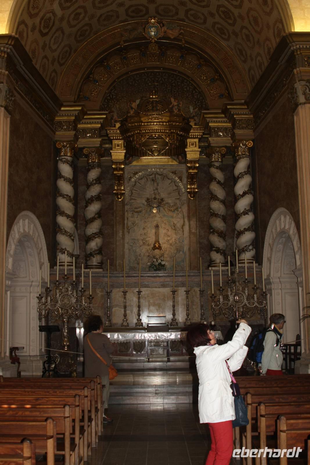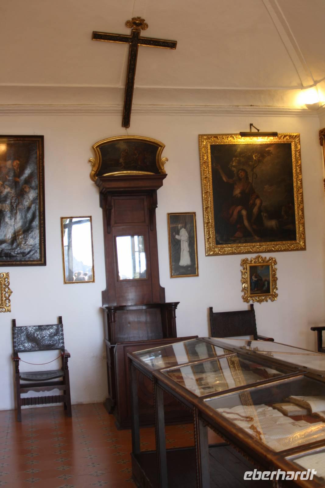 Unser letzter gemeinsamer Tag mit Magdalena und Toni bricht an. Leicht verspätet erreichen die beiden unser Hotel aber die Verspätung hat natürlich auch ihren Grund: Magdalena hat einige Zitronen aus ihrem Garten für uns gepflückt und hat sie nun vorab auf unsere Sitzreihen verteilt. Was für eine gelungene Überraschung. Die goldenen Zitronen riechen noch ganz frisch. Kein Wunder, blühen die Zitronenbäume hier auf Mallorca doch alle drei bis vier Monate. Unser erstes Ziel des Tages ist San Salvador. Vorbei an Campos und Felanitx säumen zahlreiche Mandel- und Johannisbrotbäume unseren Weg, bevor wir erneut über Serpentinen San Salvador erreichen. Gut geübt wie unser Chauffeur Toni ist, bringt er uns sicher hinauf in das Wallfahrtsörtchen. Hier oben thront eine Wallfahrtskapelle, die für ihre Verhältnisse doch eher schlicht gestaltet ist. Von hier oben genießen wir auch einen guten Ausblick auf das Mittelmeer, den auch heute haben wir großes Glück mit dem Wetter. Zur nächsten vollen Stunde, also 11 Uhr, dürfen wir mit dem Bus wieder hinab in Richtung Manacor auf. Der Ort ist bekannt für seine Majorica-Perlen. Neben der Fabrik, in der seit über 120 Jahren die Perlen erschafft werden, besuchen wir die zentrale Verkaufsstelle und den Ausstellungsraum. Hier bewundern wir echte Juwelen von Perlen. Die Majorica-Perle setzt sich aus einem Opalinkristall aus vielfachen feinen Schichten „Perlenessenz" zusammen, einem Extrakt, das aus den organischen Elementen des Mittelmeers gewonnen wird. Im oberen Geschoss können wir die einzelnen Arbeitsschritte der Verarbeitung der Perle von der Gewinnung bis zum Schmuck anschauen. Nachdem wir im benachbarten Gebäude Souvenirs aus Olivenbaumholz ersteigert haben, bringen uns Toni und Magdalena nach Porto Cristo, wo wir unsere Mittagspause verbringen.