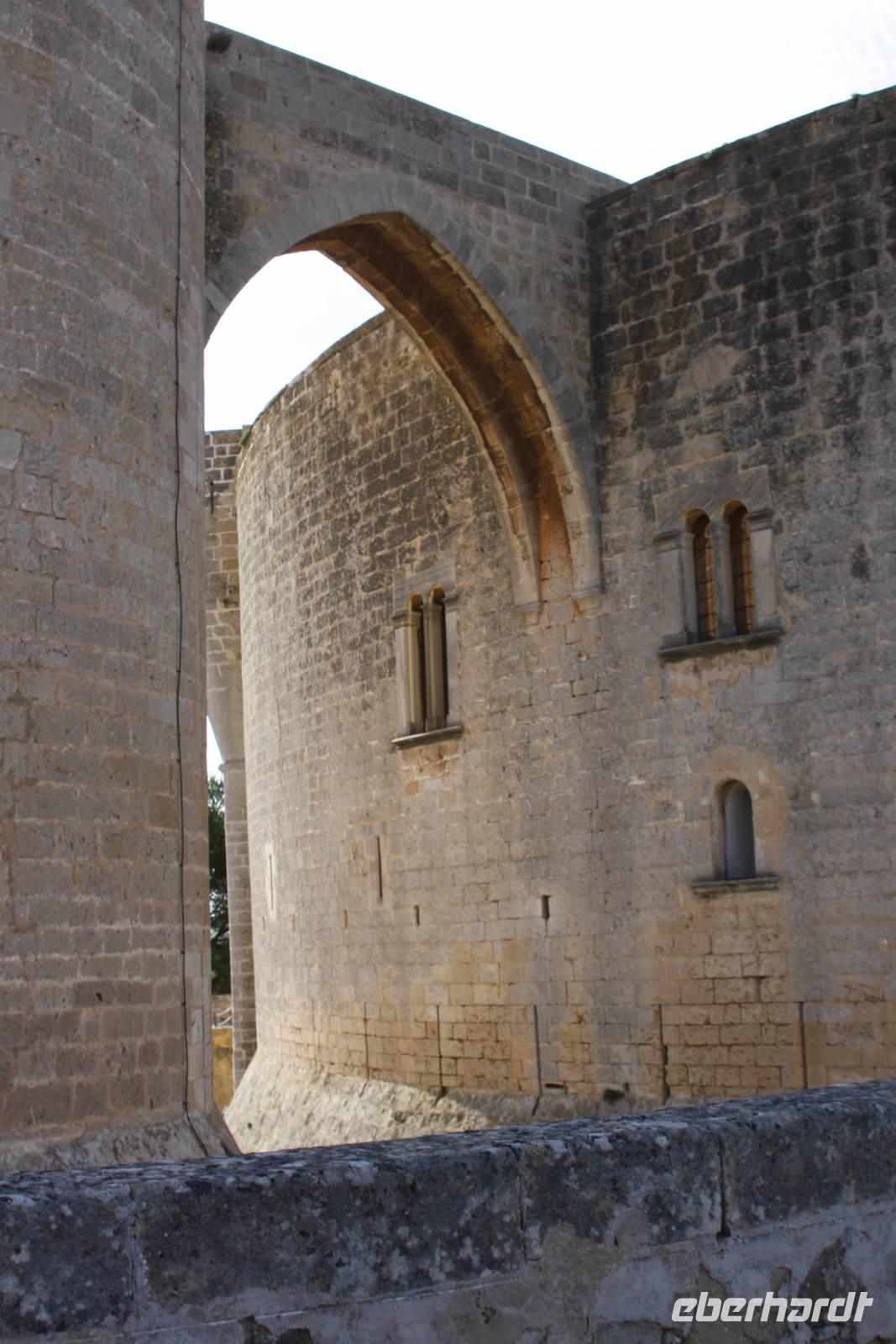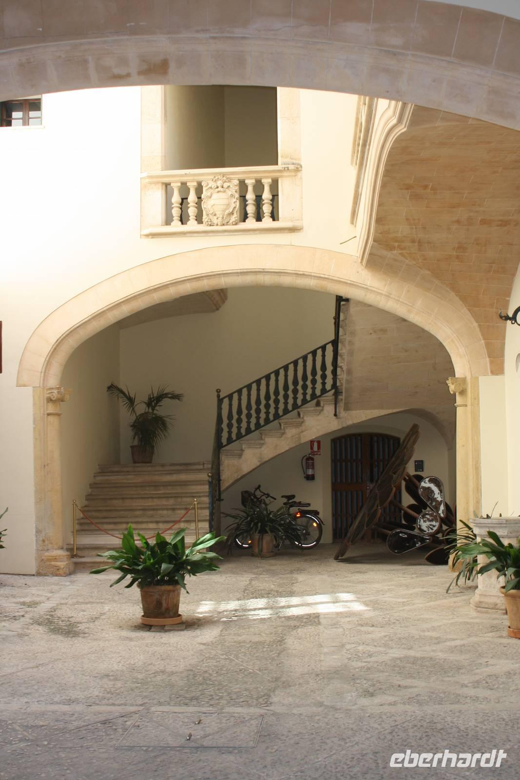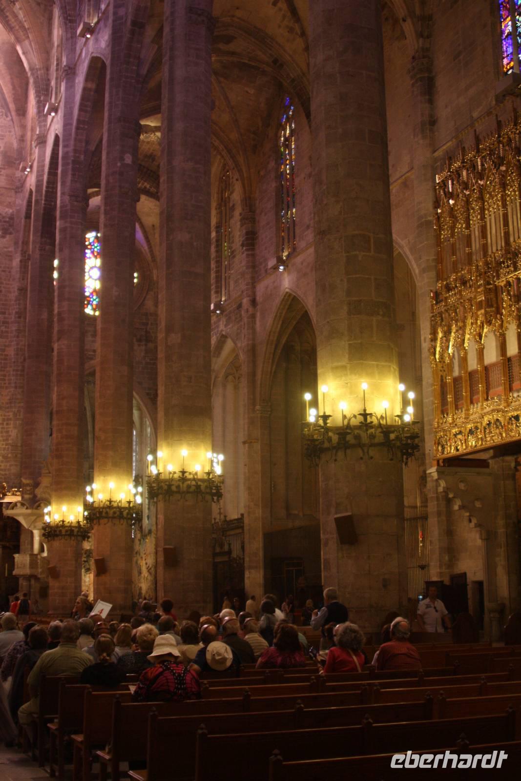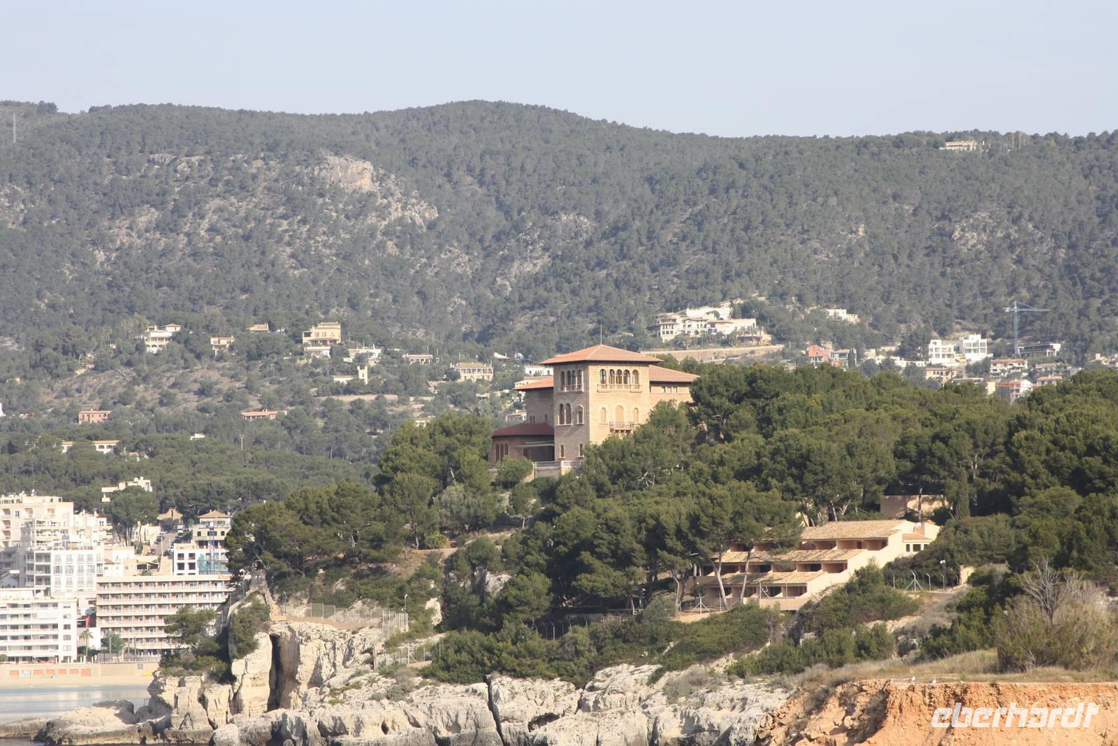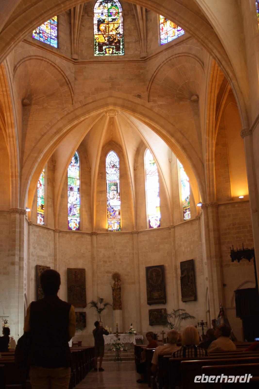 Um kurz vor um neun treffen wir an der Rezeption unsere örtliche Reiseleiterin für die kommende Woche: Magdalena. Markenzeichen: gelber Schirm. So kann ja nichts mehr schief gehen. Auch der Bus wartet schon auf uns und so fahren wir in die Hauptstadt der Balearen, nach Palma de Mallorca. Vorbei an der berühmten Kathedrale erreichen wir das Hard Rock Cafe Mallorca. Noch ist nicht sehr viel los in der Stadt. Nur einige Kreutzer liegen schon im Hafen und deren Ausflüge werden sicher auch bald los gehen. Unser erstes Ziel am heutigen Tag ist Schloss Bellver, welches auf einer Höhe von 113 Metern über der Stadt thront und von einem grünen Pinienwald umgeben ist. Magdalena holt unsere Eintrittskarten und führt uns im Schloss Bellver, dem einstigen Sommersitz der spanischen Könige. Mit ihrem kreisrunden Grundriss ist das Schloss einzigartig in Spanien. Magdalena erklärt uns die wechselhafte Geschichte des Castells und wir bestaunen die zweigeschossigen Arkandengänge. Über Treppen gelangen wir auf die Dachplattform und bewundern von hier den schönen Blick auf Palma mit seinem Jachthafen und der Kathedrale. Anschließend nutzen wir die Zeit, auch die Innenräume des Castells zu besichtigen. Zwar ist das Schloss wenig möbliert oder gar dekoriert aber der Thronsaal und das Kaminzimmer sind eindeutig erkennbar. Zurück am Bus bringt uns José entlang des Hafens zur gewaltigen Kathedrale, dem Wahrzeichen Palma de Mallorcas. Auch hier erfahren wir eine Führung durch Magdalena. Zunächst teilt sie uns Kopfhörer aus, damit wir sie besser durch ihr Mikrofon verstehen können. Der Dom, oder La Seu, wie sie die Mallorquiner nennen, ist auch als „Kathedrale des Lichts" bekannt. Insbesondere die große Fensterrossette mit ihren über 1.000 bunten Einzelscheiben sorgt für ein einmaliges Farbenspiel im Inneren des Doms. Ganz besonders beeindruckend ist der Altar, der von Antoni Gaudi stammt und stark an den Altar in der La Sagrada Familia in Barcelona erinnert. Die Kathedrale ist wirklich sehr imposant und eindrucksvoll. Gegen Mittag spazieren wir zusammen mit Magdalena durch die engen Gassen der Stadt und werfen einen kurzen Blick in die Innenhöfe der Stadt. Weiter geht es über den Placa Major zu einem der drei großen Märkte der Stadt. Heute ist Montag und die Stände sind aufgrund des Wochenendes nicht alle besetzt und besonders die Fischstände haben geschlossen, dennoch erhalten wir einen guten Einblick in das alltägliche Leben der Mallorquiner. Frisches Obst und Gemüsestände finden sich neben zahlreichen Fleischereien, die saftigen Schinken, Salamis und weitere Wurstsorten. Wer einen Hunger verspürt, kann sich an den Tapas-Ständen eine Kleinigkeit holen, eben typisch spanisch. Der restliche Nachmittag steht uns frei zur Verfügung. Ein Großteil der Gruppe fährt zusammen mit Magdalena zurück zu unserem Hotel in Playa de Palma und verbringt die Zeit beim Schwimmen im Mittelmeer oder bei einem Spaziergang entlang der Promenade. Gemeinsam mit Familie Hauswald bleibe ich noch in der Stadt. Zunächst bestellen wir uns in einem kleinen Restaurant einen Kaffee. Danach spazieren wir durch die Straßen der Hauptstadt, unter anderem auch über die Blumenstraße und der La Rambla. Wir bestaunen die Pflanzenpracht, ein Institut und die Hinterhöfe der vielen Gassen. Zum Abschluss unseres Aufenthaltes nehmen wir in einem Restaurant gegenüber der Kathedrale Platz und bestellen uns einen typischen Sangria, der uns sehr gut schmeckt. Mit dem Linienbus Nummer 15 gelangen wir schließlich zurück zu unserem Hotel, wo wir wieder gemeinsam mit der Gruppe zu Abend essen.