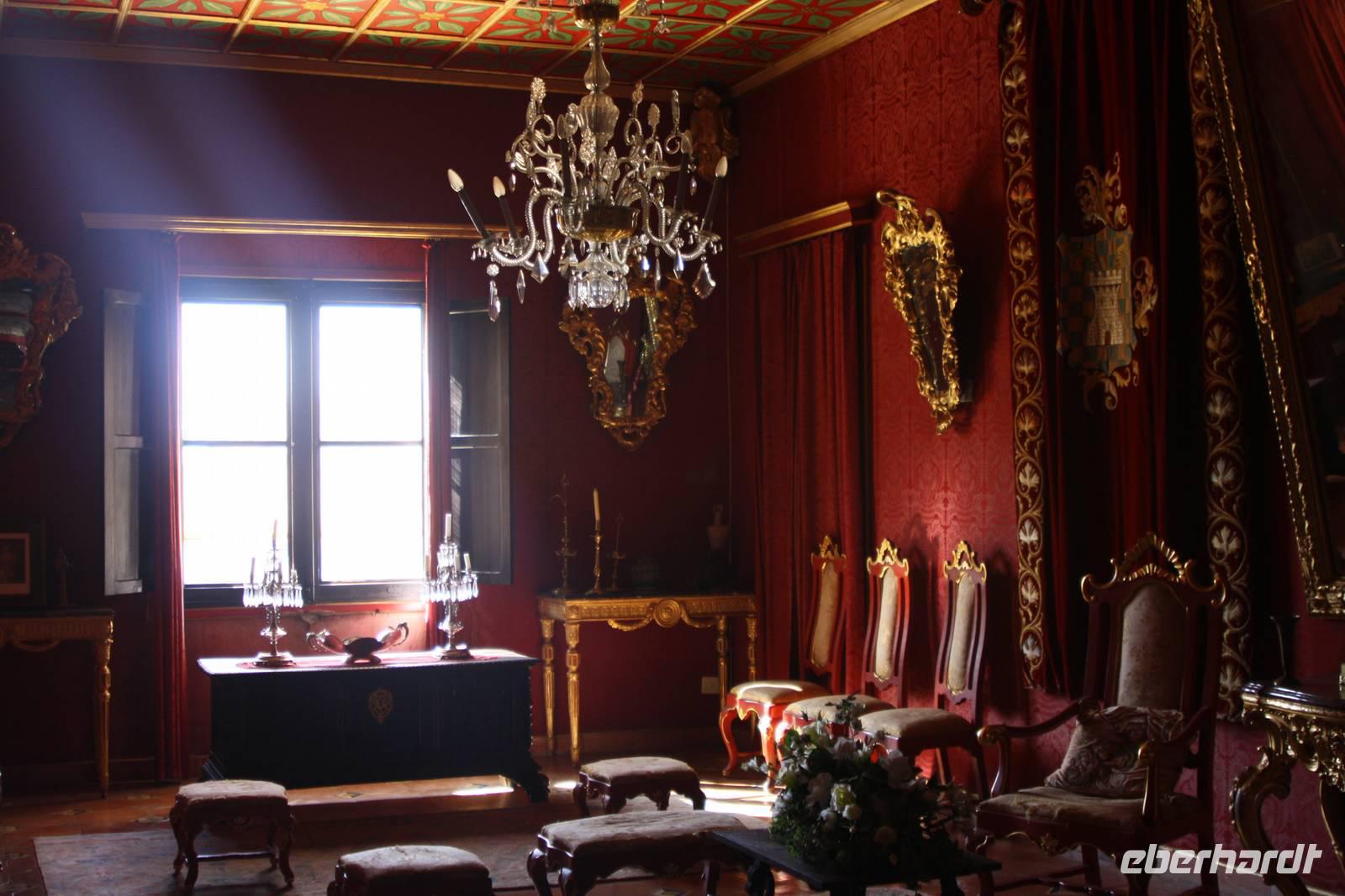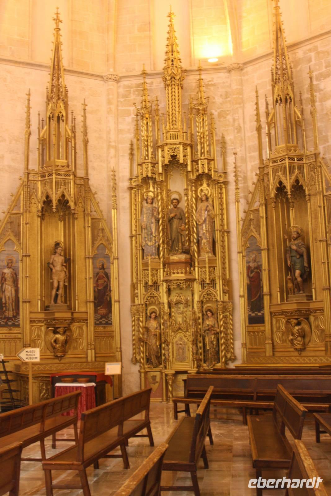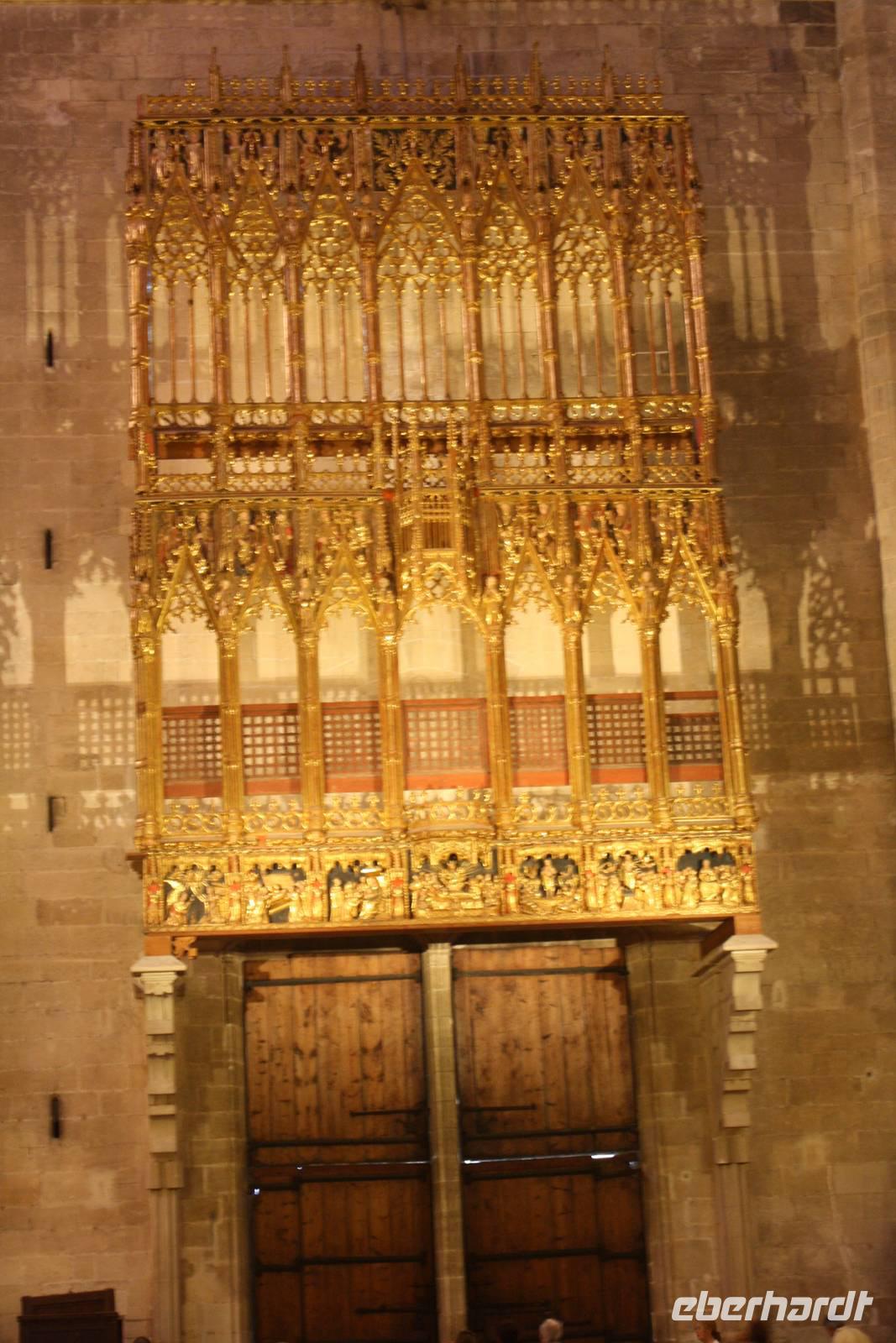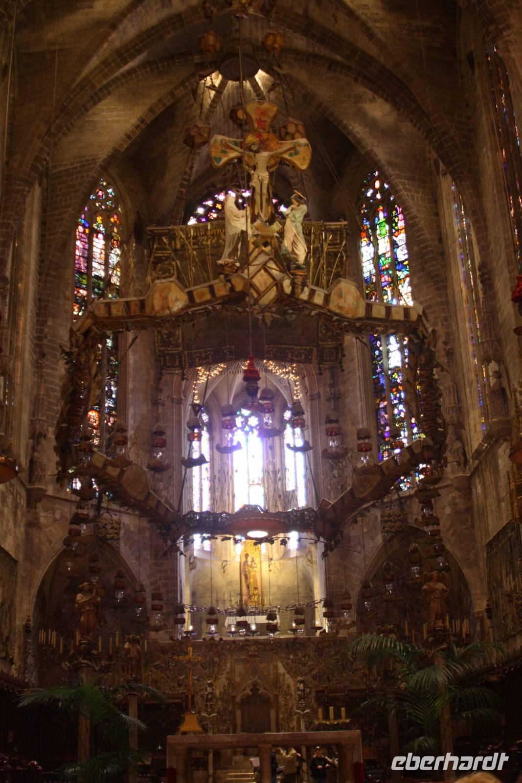 Um kurz vor um neun treffen wir an der Rezeption unsere örtliche Reiseleiterin für die kommende Woche: Magdalena. Markenzeichen: gelber Schirm. So kann ja nichts mehr schief gehen. Auch der Bus wartet schon auf uns und so fahren wir in die Hauptstadt der Balearen, nach Palma de Mallorca. Vorbei an der berühmten Kathedrale erreichen wir das Hard Rock Cafe Mallorca. Noch ist nicht sehr viel los in der Stadt. Nur einige Kreutzer liegen schon im Hafen und deren Ausflüge werden sicher auch bald los gehen. Unser erstes Ziel am heutigen Tag ist Schloss Bellver, welches auf einer Höhe von 113 Metern über der Stadt thront und von einem grünen Pinienwald umgeben ist. Magdalena holt unsere Eintrittskarten und führt uns im Schloss Bellver, dem einstigen Sommersitz der spanischen Könige. Mit ihrem kreisrunden Grundriss ist das Schloss einzigartig in Spanien. Magdalena erklärt uns die wechselhafte Geschichte des Castells und wir bestaunen die zweigeschossigen Arkandengänge. Über Treppen gelangen wir auf die Dachplattform und bewundern von hier den schönen Blick auf Palma mit seinem Jachthafen und der Kathedrale. Anschließend nutzen wir die Zeit, auch die Innenräume des Castells zu besichtigen. Zwar ist das Schloss wenig möbliert oder gar dekoriert aber der Thronsaal und das Kaminzimmer sind eindeutig erkennbar. Zurück am Bus bringt uns José entlang des Hafens zur gewaltigen Kathedrale, dem Wahrzeichen Palma de Mallorcas. Auch hier erfahren wir eine Führung durch Magdalena. Zunächst teilt sie uns Kopfhörer aus, damit wir sie besser durch ihr Mikrofon verstehen können. Der Dom, oder La Seu, wie sie die Mallorquiner nennen, ist auch als „Kathedrale des Lichts" bekannt. Insbesondere die große Fensterrossette mit ihren über 1.000 bunten Einzelscheiben sorgt für ein einmaliges Farbenspiel im Inneren des Doms. Ganz besonders beeindruckend ist der Altar, der von Antoni Gaudi stammt und stark an den Altar in der La Sagrada Familia in Barcelona erinnert. Die Kathedrale ist wirklich sehr imposant und eindrucksvoll. Gegen Mittag spazieren wir zusammen mit Magdalena durch die engen Gassen der Stadt und werfen einen kurzen Blick in die Innenhöfe der Stadt. Weiter geht es über den Placa Major zu einem der drei großen Märkte der Stadt. Heute ist Montag und die Stände sind aufgrund des Wochenendes nicht alle besetzt und besonders die Fischstände haben geschlossen, dennoch erhalten wir einen guten Einblick in das alltägliche Leben der Mallorquiner. Frisches Obst und Gemüsestände finden sich neben zahlreichen Fleischereien, die saftigen Schinken, Salamis und weitere Wurstsorten. Wer einen Hunger verspürt, kann sich an den Tapas-Ständen eine Kleinigkeit holen, eben typisch spanisch. Der restliche Nachmittag steht uns frei zur Verfügung. Ein Großteil der Gruppe fährt zusammen mit Magdalena zurück zu unserem Hotel in Playa de Palma und verbringt die Zeit beim Schwimmen im Mittelmeer oder bei einem Spaziergang entlang der Promenade. Gemeinsam mit Familie Hauswald bleibe ich noch in der Stadt. Zunächst bestellen wir uns in einem kleinen Restaurant einen Kaffee. Danach spazieren wir durch die Straßen der Hauptstadt, unter anderem auch über die Blumenstraße und der La Rambla. Wir bestaunen die Pflanzenpracht, ein Institut und die Hinterhöfe der vielen Gassen. Zum Abschluss unseres Aufenthaltes nehmen wir in einem Restaurant gegenüber der Kathedrale Platz und bestellen uns einen typischen Sangria, der uns sehr gut schmeckt. Mit dem Linienbus Nummer 15 gelangen wir schließlich zurück zu unserem Hotel, wo wir wieder gemeinsam mit der Gruppe zu Abend essen.