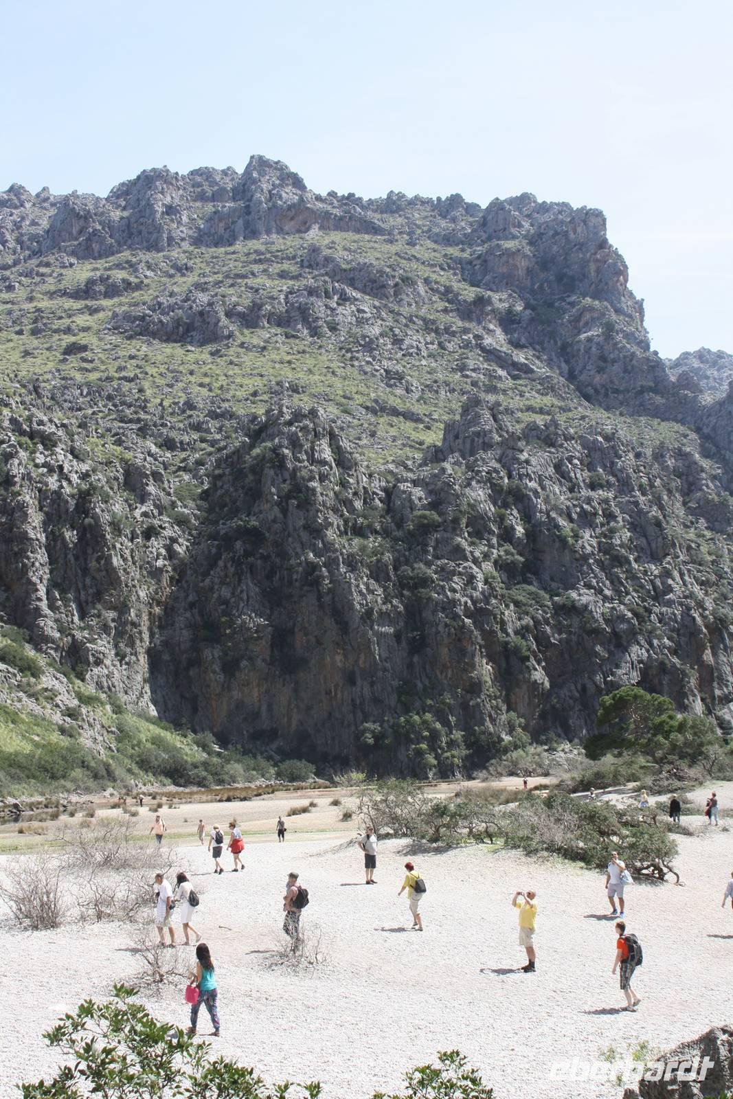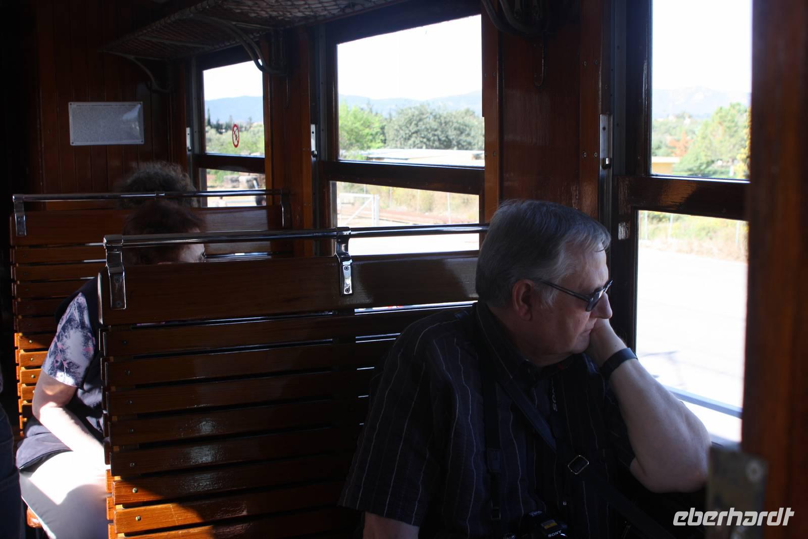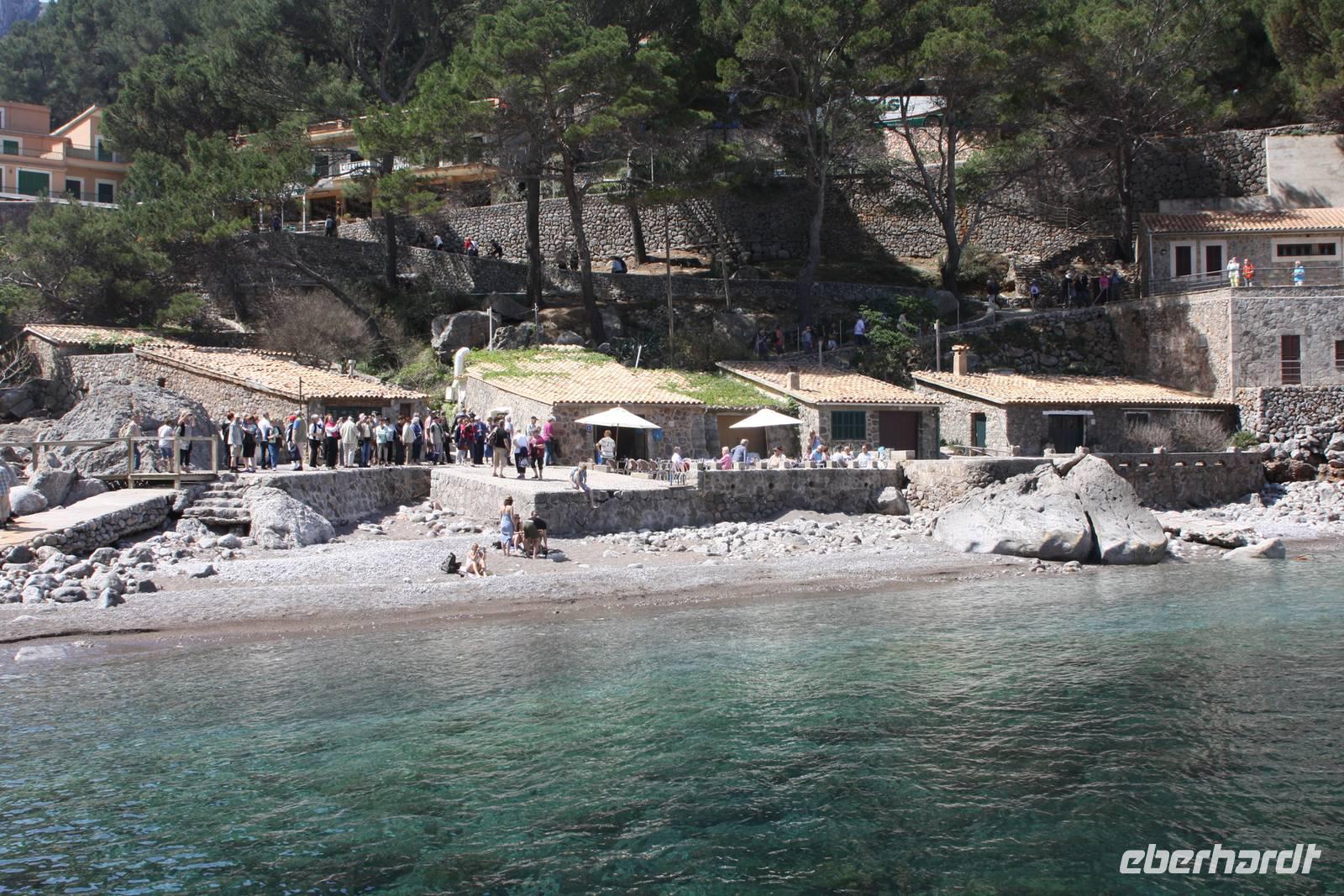 Auch unser heutiger Ausflug, die Inselrundfahrt, startet pünktlich um neun Uhr mit Magdalena. Neu an Bord begrüßen wir unseren Bus-Chauffeur Toni. Da wir die Fahrkarten für den „Roten Blitz" schon für heute Vormittag bekommen haben, stellen wir das Programm um. Noch haben wir Zeit bis zur Abfahrt und daher unternehmen Toni und Magdalena noch eine kleine Rundfahrt durch Palma mit uns. Wir fahren vorbei an der teuersten Einkaufsstraße Mallorcas und dem Theater Palmas zur La Rambla, der Straße, auf der wahnsinnig viele, bunte und schöne Blumensträuße verkauft werden. Anschließend erreichen wir die Bahnstation des „Roten Blitz". Unsere Gruppe hat sogar einen Wagon für sich allein. Pünktlich 10:00 Uhr legt der „Rote Blitz" los in Richtung Soller. An uns ziehen fabelhafte mallorquinische Villen, Olivenhaine und kleine Städtchen vorbei. Durch mehrere Tunnel erreichen wir nach rund einer halben Stunde einen Stopp, von dem wir ein einzigartiges Fotomotiv auf Soller haben. Angekommen am Bahnhof von Soller steigen wir auch gleich in die Straßenbahn um, die uns zum Hafen von Soller bringt. Während unserer Fahrt weht uns der erfrischen Duft von Orangen, die Sonne strahlt vom azurblauen Himmel - besser kann es uns nicht gehen. Im Hafen von Soller besteigen wir den Katamaran, der uns nach Sa Calobra bringt. Mit einem Jäckchen begleitet sitzen wir auf dem Oberdeck des Schiffes und lassen die Felsformationen der Küste an uns vorbeiziehen. In Sa Calobra, einem kleinen touristischen Ort mit vielen Restaurants und Souvenirläden verbringen wir unsere Mittagspause. Wer sich nicht an typischen Tapas stärken möchte, unternimmt eine kleine, leichte Wanderung zur nahegelegenen Paradiesschlucht, Torrent de Pareis. Am zeitigen Nachmittag erwartet uns Chauffeur Toni am Bus und wir gelangen über die Serpentinen des Tramuntana-Gebirges nach Inca. Zwischendurch eröffnen sich immer wieder neue Ausblicke auf das mallorquinische Gebirge und das Mittemeer. In Inca, bekannt für Lederwaren, halten wir für eine letzte Kaffeepause. Die Lederwaren, die hier angepriesen werden, sind doch nicht die günstigsten im Kaufpreis und daher bringen uns Magdalena und Toni ohne neue Lederwarenartikel zurück zu unserem 4-Sterne-Hotel „Acapulco Playa" in Playa de Palma.