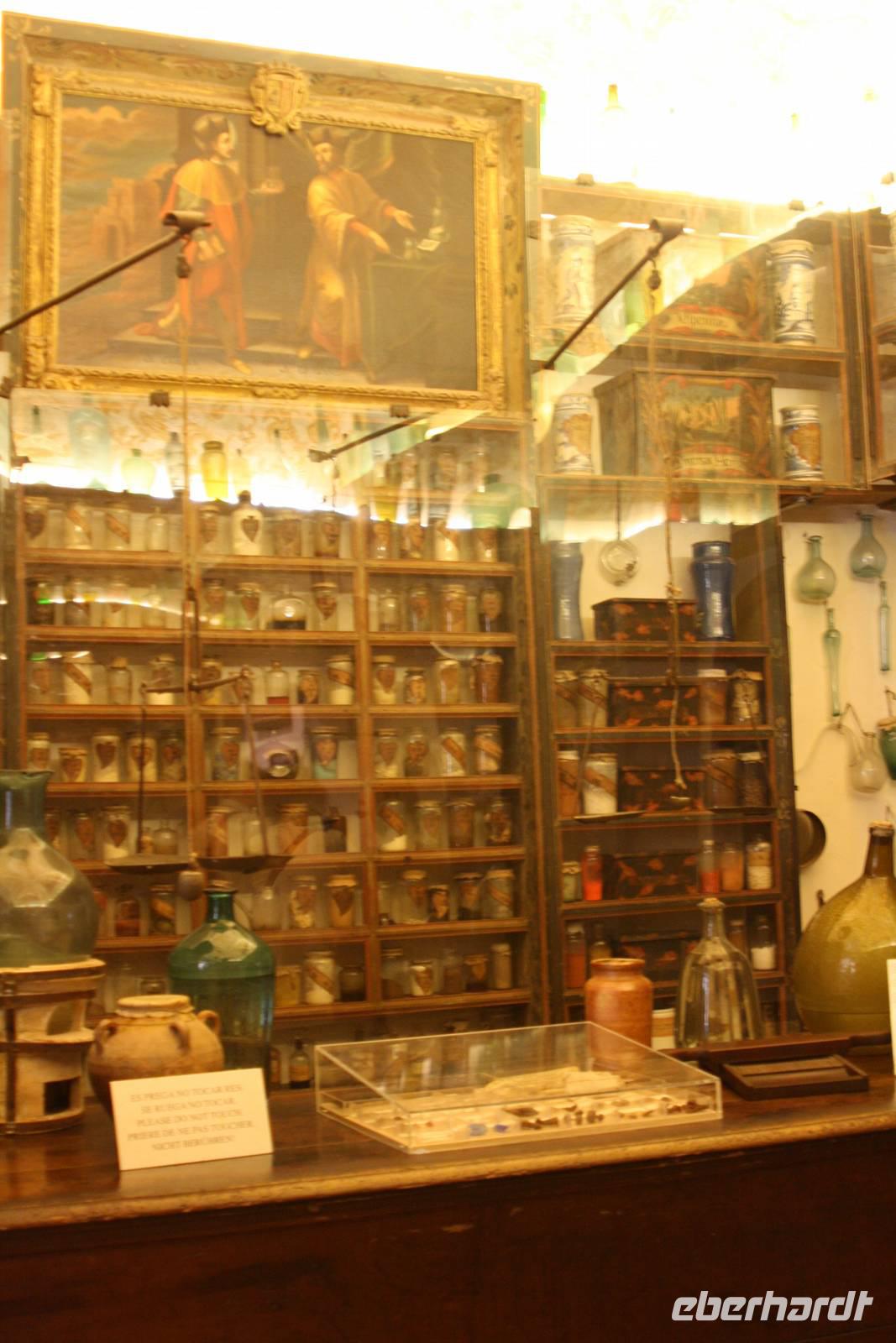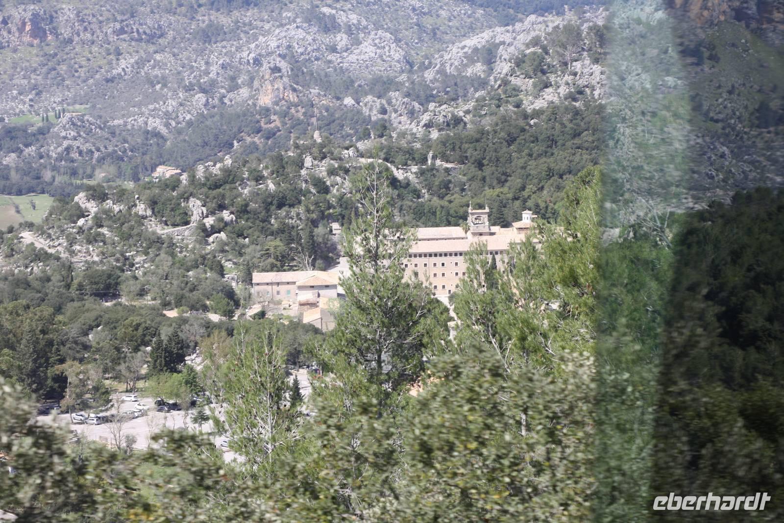 Neuer Tag und wieder strahlenstes Wetter für uns. Aber nach dem langen Winter in Deutschland haben wir uns das gute Wetter ja auch mehr als verdient. Pünktlich neun Uhr holt uns Magdalena wieder am Hotel ab und diesmal geht es wieder Richtung Nordwesten der Insel, nach Valldemossa, Hier im beschaulichen kleinen Örtchen besuchen wir zunächst das Kartäuserkloster, indem Frederic Chopin mit seiner Frau George Sand den Winter 1838/39 lebten. Wir finden uns im Altarraum des Klosters wieder, indem die Führung durch Magdalena beginnt. Besonders die Rossette und das große Atrium sind markant für diesen Raum. Als wir diesen verlassen, stehen wir vor zwei riesengroßen Puppen, die Frederic Chopin mit seiner Frau darstellen, ein Geschenk Polens an Mallorca. Über den Kreuzgang erreichen wir die Apotheke, die bereits im Jahr 1725 existierte. Hier finden sich noch heute wertvolle katalanische Apothekertöpfe aus Keramik und alte mallorquinische Glasbehälter, die zum Teil noch mit Originalarzneimittel befüllt sind. Im Garten des Hauses genießen wir einen traumhaften Ausblick auf die Stadt bevor wir zu den Mönchszellen gelangen. Auf der gegenüberliegenden Seite des Klosters erreichen wir schließlich die Wohnräume der Familie Chopin/Sands und bekommen einen Eindruck, wie sie damals residierten. Höhepunkt unseres Besuches in Valldemossa ist ein kleines, klassisches Konzert mit Musik von Chopin, natürlich. Andächtig lauschen wir den Klängen des Pianisten, der so wundervoll für uns spielt. Anschließend verbringen wir noch etwas Zeit in Valldemossa und haben so die Möglichkeit, die Köstlichkeiten des Ortes zu probieren wie beispielsweise Mandelmilch, Mandelkuchen oder aber auch Kartoffelkuchen, den es nur hier in Valldemossa gibt.