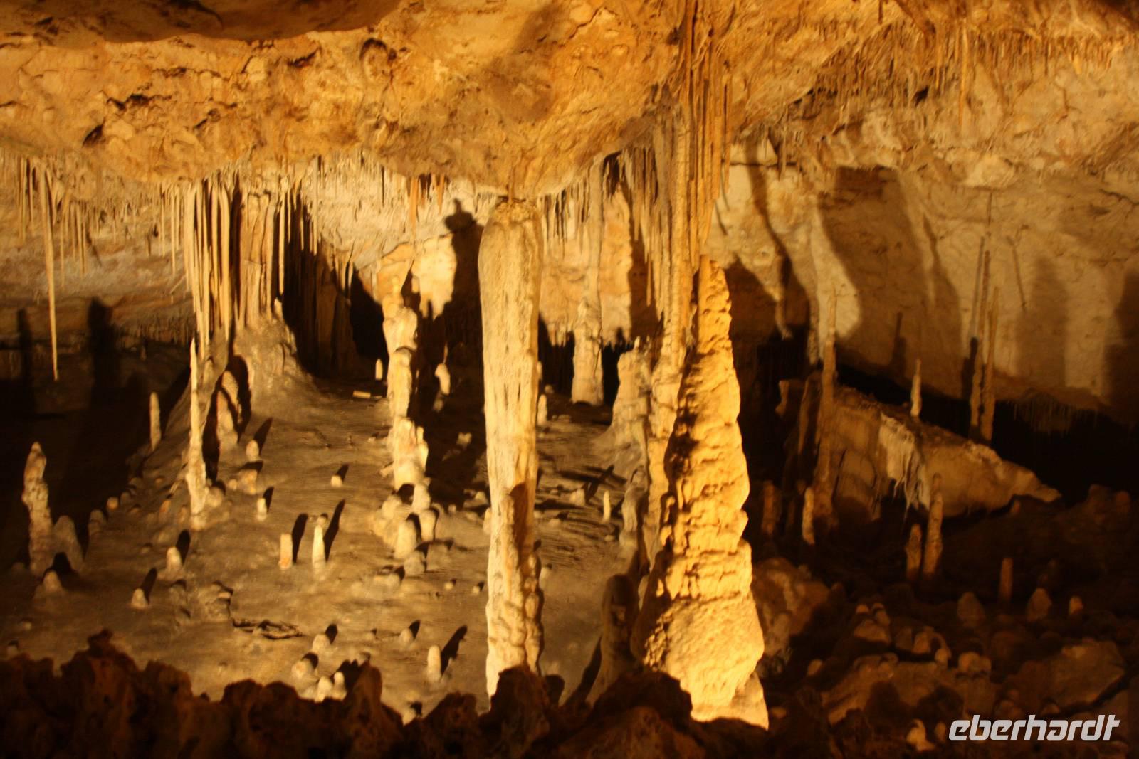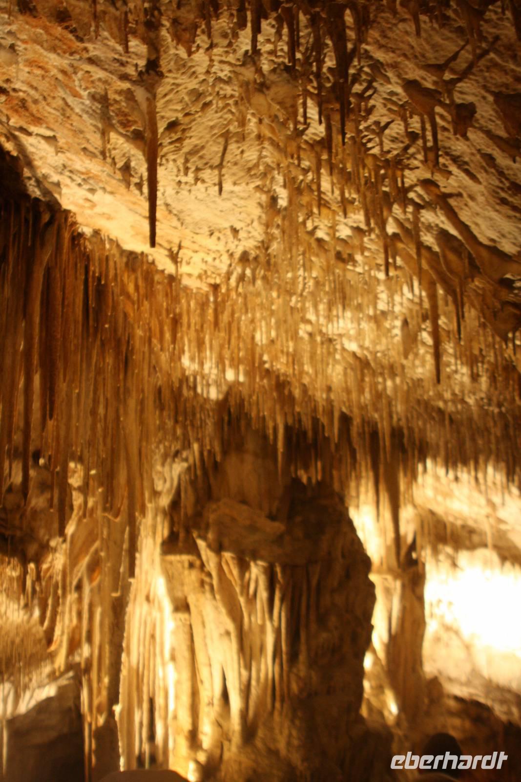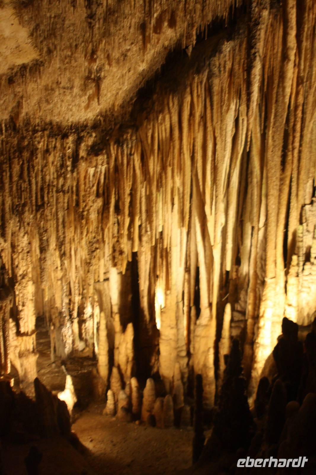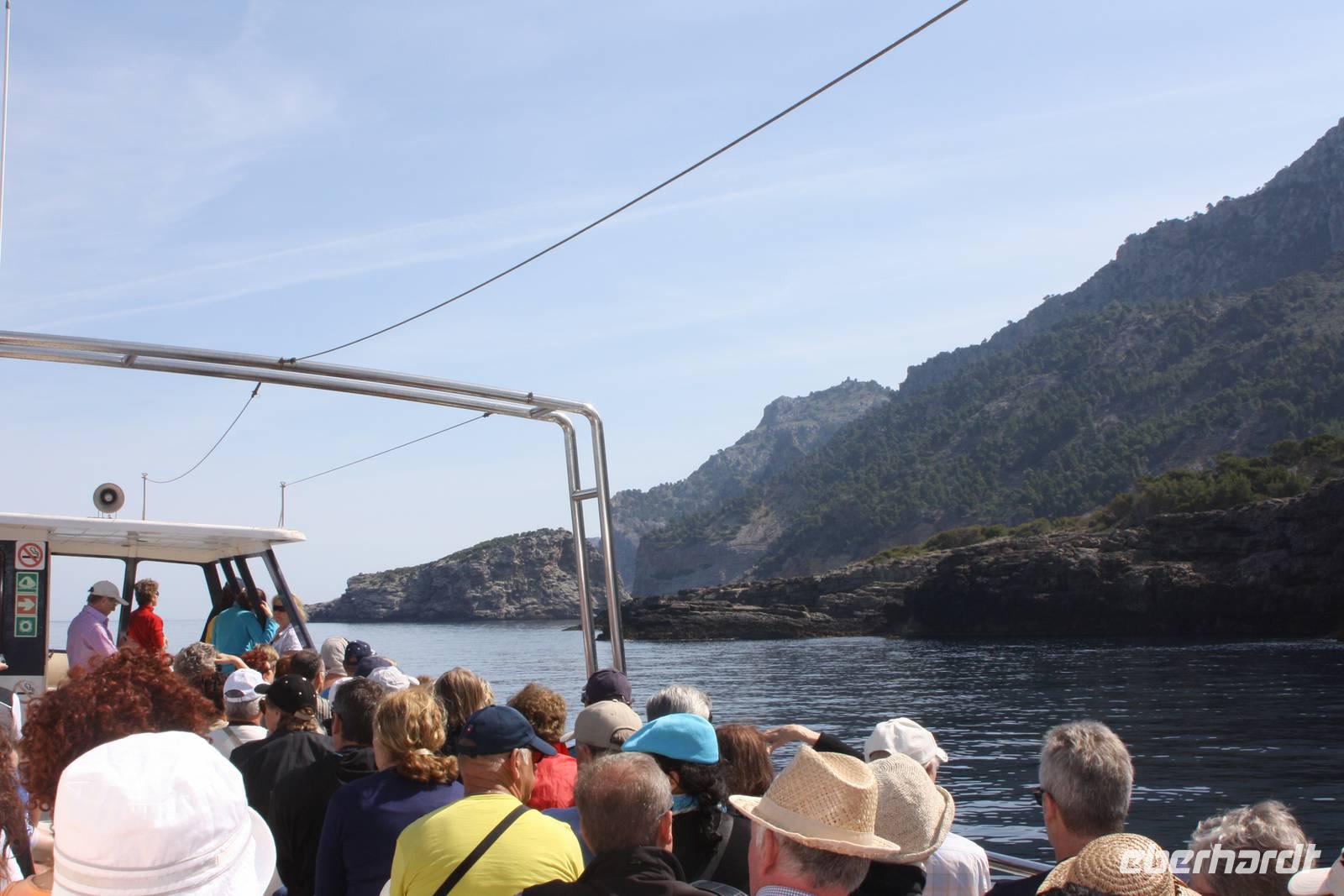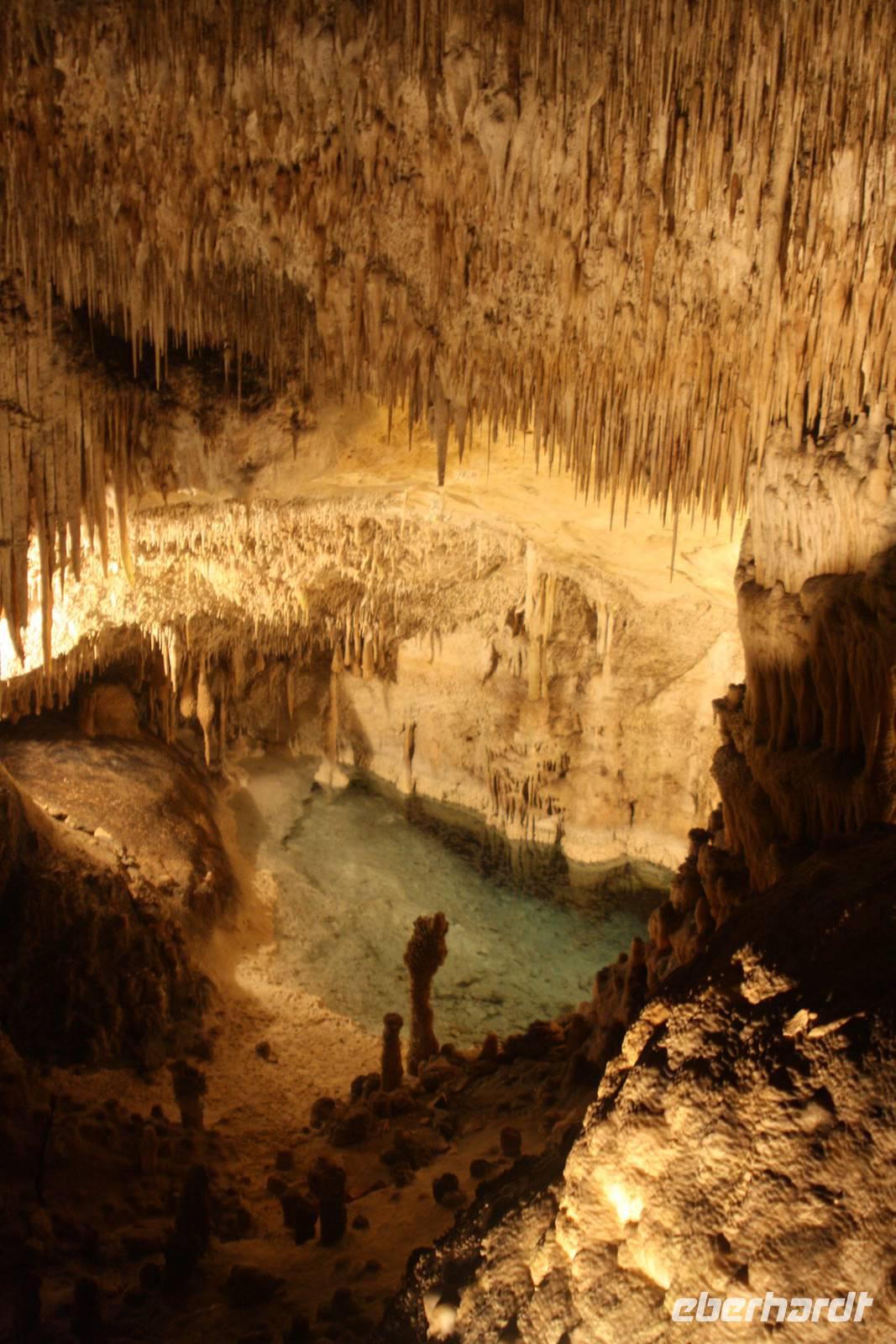 Um pünktlich zwei Uhr ist unser Einlass zu den bekanntesten Höhlen auf der Insel, den Drachenhöhlen. In ihrem Inneren befindet sich der Martelsee, einer der größten unterirdischen Seen der Welt. Die Höhlen sind unvergleichbar wegen der Lichtspiele, die durch Dr. Buigas geplant und realisiert wurden. Nach einem längeren Spaziergang, rund 1000 Meter lauschen wir in der Grotte klassischer Musik, die auf kleinen Booten dargeboten wird. Die letzten zweihundert Meter legen wir teilweise mit den Booten und dann über Stufen zurück, bevor wir nach mehr als einer Stunde wieder dem Tageslicht begegnen.