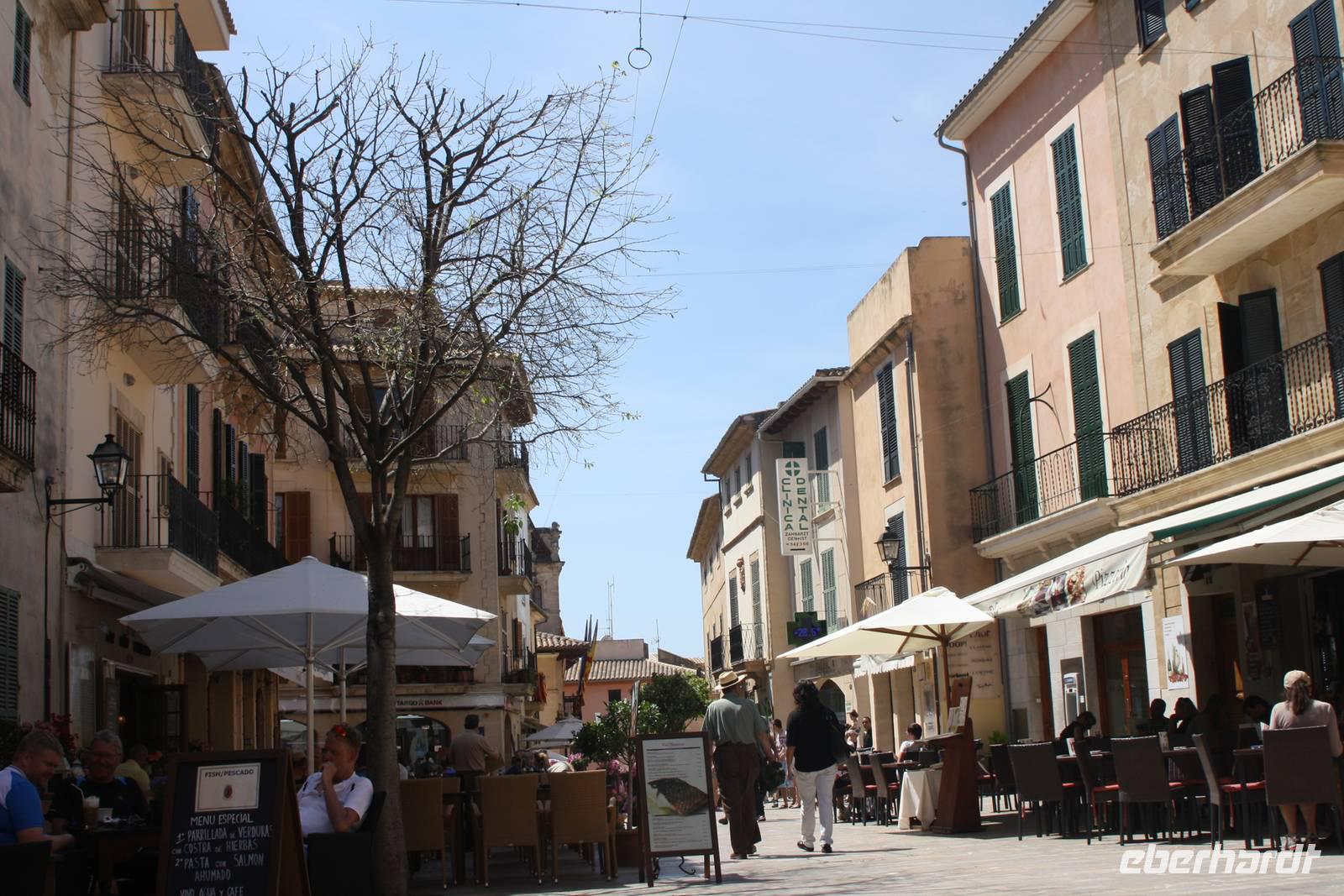Ja heute feiern wir schon das Bergfest unserer Reise (die Zeit vergeht im wunderschön, sonnigen Mallorca wirklich sehr schnell) und Magdalen entführt uns zu einem Ausflug, der uns zunächst in die Mitte der Insel, nach Sineu. Unterhalb der thronenden Kirche findet jeden Mittwoch der Wochenmarkt statt. Gemeinsam mit Magdalena spazieren wir zum Hauptplatz und sie zeigt uns, wo wir welche Waren finden können. Dann haben wir freie Zeit, um individuell über den Markt zu bummeln und kleine Souvenirs zu ersteigern. Hier gibt es wirklich vieles: Kleidung, Pflanzen, frisches Brot, Wurst, Käse, Schmuck, Schuhe und lebende Tiere wie Ziegen, Esel, Schafe und Hunde suchen hier einen neuen Besitzer. Wir lassen uns durch die vielen Gänge des Marktes treiben, die uns hoch zur Pfarrkirche führen. Hie rum die Kirche herum haben die Obst- und Gemüsehändler ihre Stände aufgebaut und bieten ihre frische Waren den Einheimischen und den Gästen an. Gegen eine kleine Spende besichtigen wir den Inneraum der Pfarrkirche nebst kleinem Museum. Über Llubi und Muro erreichen wir am Mittag den Hafen von Pollenca und steigen auf ein zweigeschossiges Motorboot an. Der Kapitän des kleinen Schiffes bringt uns in die Bucht von Formentor. Die wieder mitgenommene Jacke wärmt uns bei der leichten Brise. Da wir auch heute wieder ein mehr als vorzeigbares Wetter genießen, haben wir auch eine hervorragende Sicht auf das Meer, die nebelumschleiernde Insel und auf die Bucht von Formentor mit dem 5-Sterne-Hotel „Formentor". Nach einer kurzen Pause fahren wir erneut über die Serpentinen des Tramuntana-Gebirges und halten für einen Fotostopp am Mirador de la Creueta. Von dem terrassenförmigen Aussichtsbalkon genießen wir einen klaren Blick auf die vorgelagerte Felsinsel Illa Colomer. Unsere Mittagspause verbringen wir in der wunderschönen, kleinen Stadt Alcudia, welches den Titel „Kulturerbe der Menschheit" trägt. Hauptanziehungspunkt des Städtchens ist die noch gut erhaltene mittelalterliche Stadtmauer, die man auch besteigen kann. Aber auch die Pfarrkirche Sant Jaume, die in Stadtmauer integriert ist bzw. das imposante Rathaus im Herzen von Alcudia unterzeichnen den einzigartigen Charme des Städtchens. Nachdem wir uns mit Tapas und Kaffee gestärkt haben, bringt uns Chauffeur Toni über die Autobahn nach St. Eugenia. Hier überraschen wir unsere Gruppe mit einer Weinprobe in der Kellerei „Vinja Taujana". Inmitten der großen Weinbottiche ist ein großer Tisch mit kleinen Broten aufgebaut. Daneben finden wir jede ein Glas. Mit diesen dürfen wir die Weine des Hauses probieren, in rot, weiß und rosé. Natürlich lassen wir es uns gut schmecken und nicht nur eine Flasche lassen wir geleert zurück. Da Geschmäcker verschieden sind, finden dann auch alle Weinarten Absatz und wir erschweren unser Gepäck mit diesem köstlichen Wein. Die Rückfahrt nach Palma de Playa ist somit noch ausgelassener als die Tage zuvor, obwohl, bei dieser guten Gruppe kehren wir eigentlich jeden Tag fröhlich zurück. Am Hotel verabschieden wir uns von Magdalena und bedienen uns am wieder sehr reichhaltigen Buffet des Hotels. Den Abend lassen wir gemütlich bei einem Caipirinha in der Hotelbar ausklingen.
