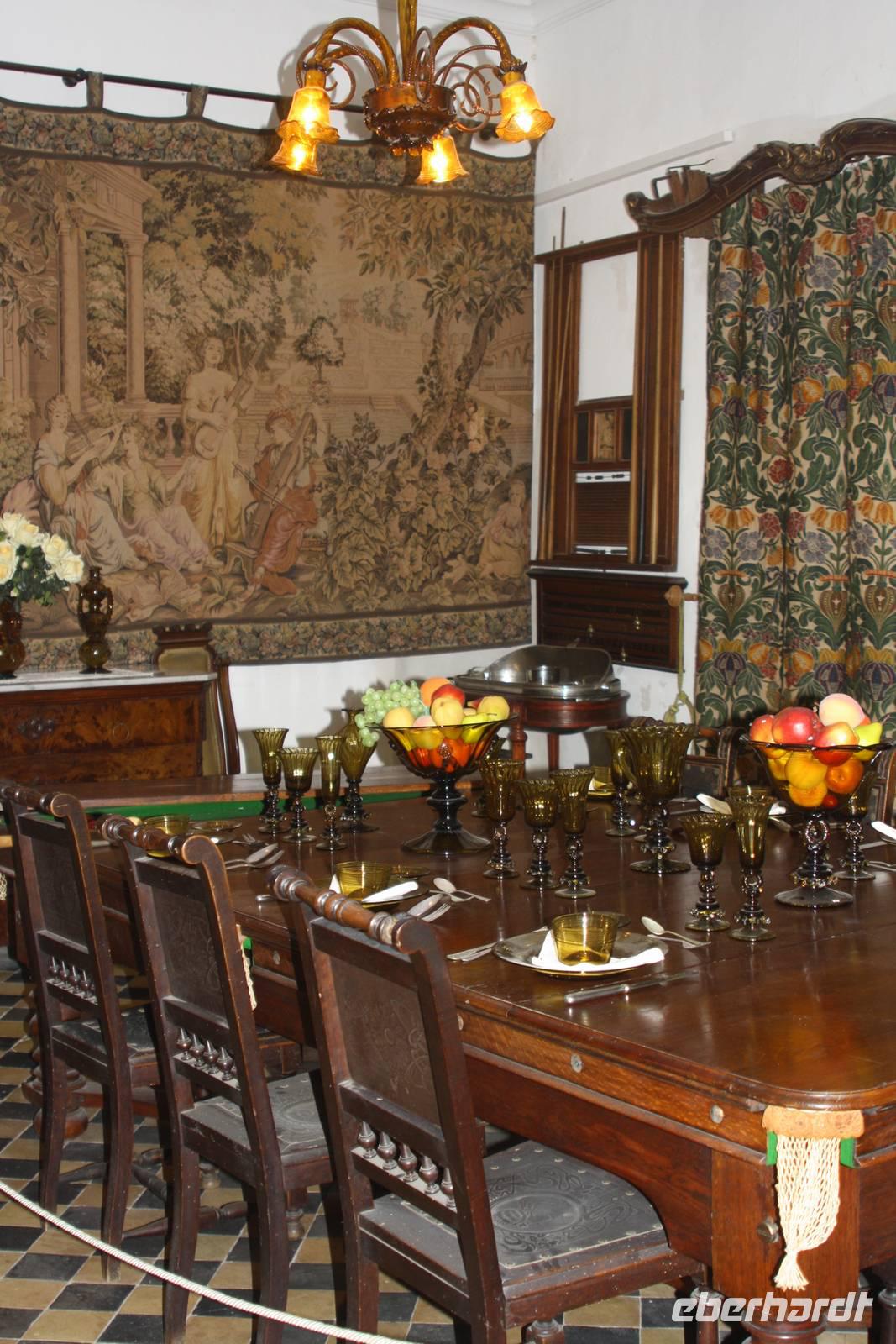 Nach vier erlebnisreichen Tagen können die Gäste meiner Gruppe heute einen freien Tag genießen. Alternativ bietet Eberhardt TRAVEL einen fakultativen Ausflug nach Port d'Andratx und Esporles an. Glücklicherweise melden sich fast alle Gäste zu dem Ausflug an und so steht schon zu Beginn der Reise fest, dass dieser Ausflug auch stattfindet. Pünktlich wie immer holen uns Toni und Magdalena am 4-Sterne-„Grupotel Acapulco Playa" ab. Über die Autobahn erreichen wir wieder die Autobahn in Richtung Palma. Vorbei an der Kathedrale von Palma und dem Jachthafen machen wir einen ersten Fotostopp am Hafen von Palma. Von hier aus schauen wir auf das Schloss Bellver, auf die Küstenstrecke vor Palma und auf die Residenz, in der die spanische Königsfamilie ihre Sommerferien verbringt. Weiter fahren wir über die Autobahn in Richtung Andratx. In dieser Region verbringen auch zahlreiche deutsche Prominente wie Herbert Grönemeyer oder Michael Schumacher ihre Ferien. Im Hafen von Port d'Andratx parken zahlreiche Jachten, mit denen die Prominenz ihre freie Zeit vor der Küste verbringt. Hier haben wir die erste Pause des Tages. Ein kleiner Spaziergang entlang der Promenade oder ein Kaffee in einem der kleinen Restaurants lohnt sich dabei auf jeden Fall. Über die Serpentinen des Tramuntana-Gebirges fahren wir durch kleine Ortschaften und erreichen in der Mittagszeit „La Granja" kurz vor Esporles gelegen. „La Granja" ist eine Art Freilichtmuseum. 1239 trat der Graf Nuno Sans „La Granja" zur Gründung des ersten Zisterziensklosters der Insel an den im Jahre 1089 gegründeten Zisterzienserorden ab. 200 Jahre später zogen die Mönche in das Bernhardinerkloster von Palma um und verkauften „La Granja" an Mateo Vida. Dessen Familie lebte dort 200 Jahre, bevor sie es an die Familie Fortuny weitergab. Der jetzige Eigentümer, Herr Colom, restaurierte das Gut mit seiner Familie ab 1968 und erwarb es schließlich in den achtziger Jahren. Wir haben nun die Gelegenheit, die Schönheit des Dorfes auf uns wirken zu lassen. Auf dem Rundgang besichtigen wir zunächst den Außenbereich, zudem unter anderem ein Waschhaus, eine Werkstatt, zahlreiche Tiere, eine Sammlung landwirtschaftlicher Werkzeuge und eine Färberei gehören. Mittelpunkt des Gartens ist der schon zu Römerzeiten vorhandene Wasserfall, der aus zehn Metern Höhe in die Tiefe plätschert. Im Herrenhaus bestaunen wir die einzelnen Zimmer, wie die Schlafzimmer, Apotheke, Bäder, der Empfangssalon, der Speisesaal, einen Weinkeller und eine Destillieranlage. Einzelheiten wie eine Puppenstube, alte Puppen und Chemiewerkzeuge machen den besonderen Reiz des Hauses aus. Nachdem wir alle Räume besichtigt haben, verkosten wir die hier hergestellten Weine, Feigenbrot, Kräppelchen und Marmelade. Wir haben hier auch die Gelegenheit, einheimische Produkte wie Olivenöl, Wurst und Käse zu erwerben.