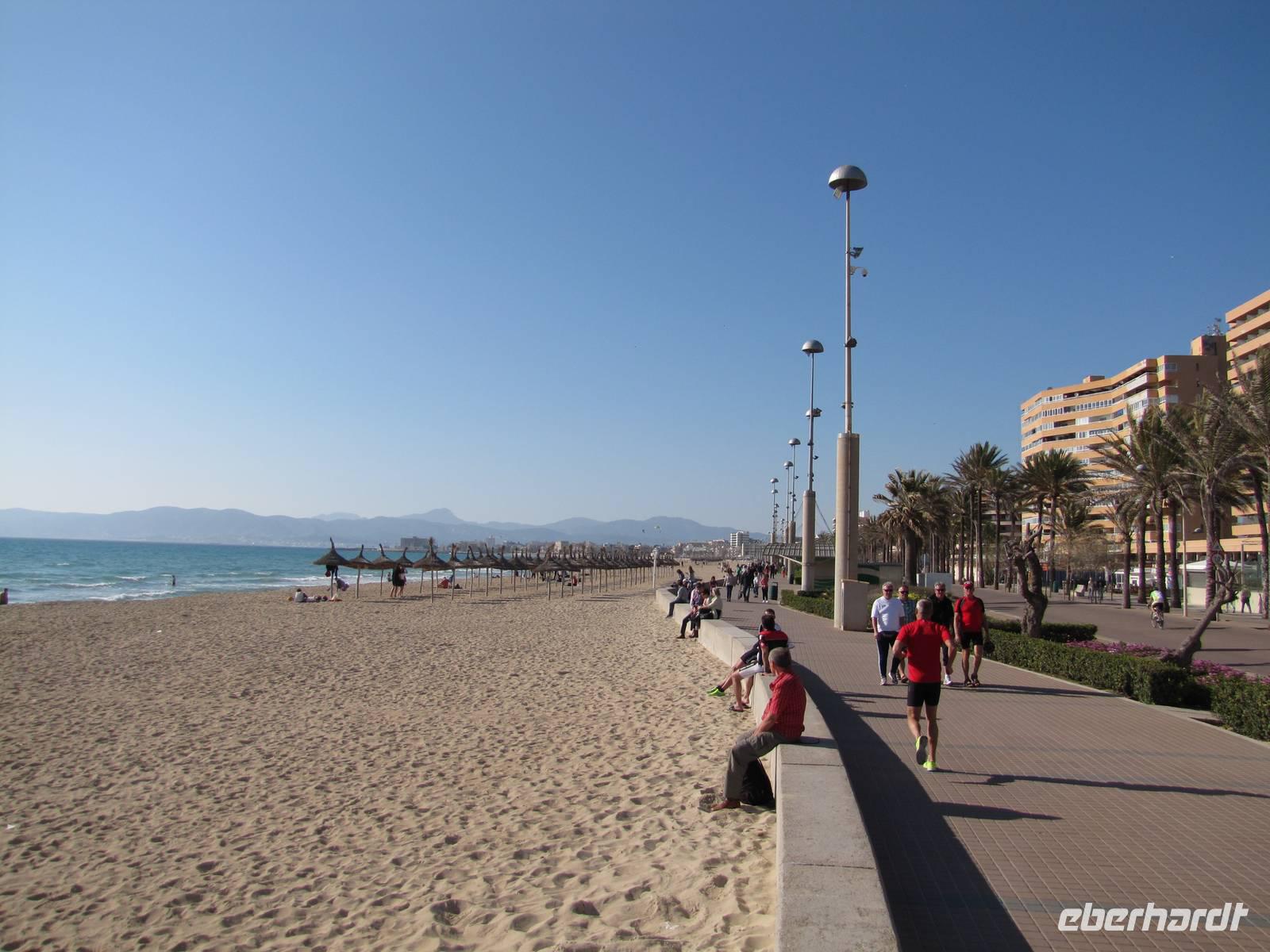 Unsere Reiseleiterin führte uns ca. 40min. in der Kathedrale umher und durch die Audioguides konnten wir sie sehr gut verstehen. Anschließend ging es weiter durch die engen Gassen der Altstadt zur bunten Markthalle „Mercat de L´Olivar". Dort gab es Früchte aller Art und spanische Wurst, Käse und andere Spezialitäten. Nach einem kleinen Rundgang fuhr ein Teil der Gruppe mit Magdalena zurück zum Hotel mit dem Linienbus, ein Teil blieb in der Stadt und der anderer Teil wanderte mit mir ca. 9Km von Palma bis nach El Arenal zum Hotel. Der weg verlief immer entlang der Küste, vorbei an vielen Hotels, Bars oder der Einflugschneise des Flughafens. Unterwegs machten wir eine Mittagspause und später noch einmal eine kleine Bierpause und nach 3 Stunden ca. erreichten wir wieder unser Hotel. Nach dieser recht sportlichen Tour hatten einige von uns viel Farbe abbekommen da die Sonne ununterbrochen schien.