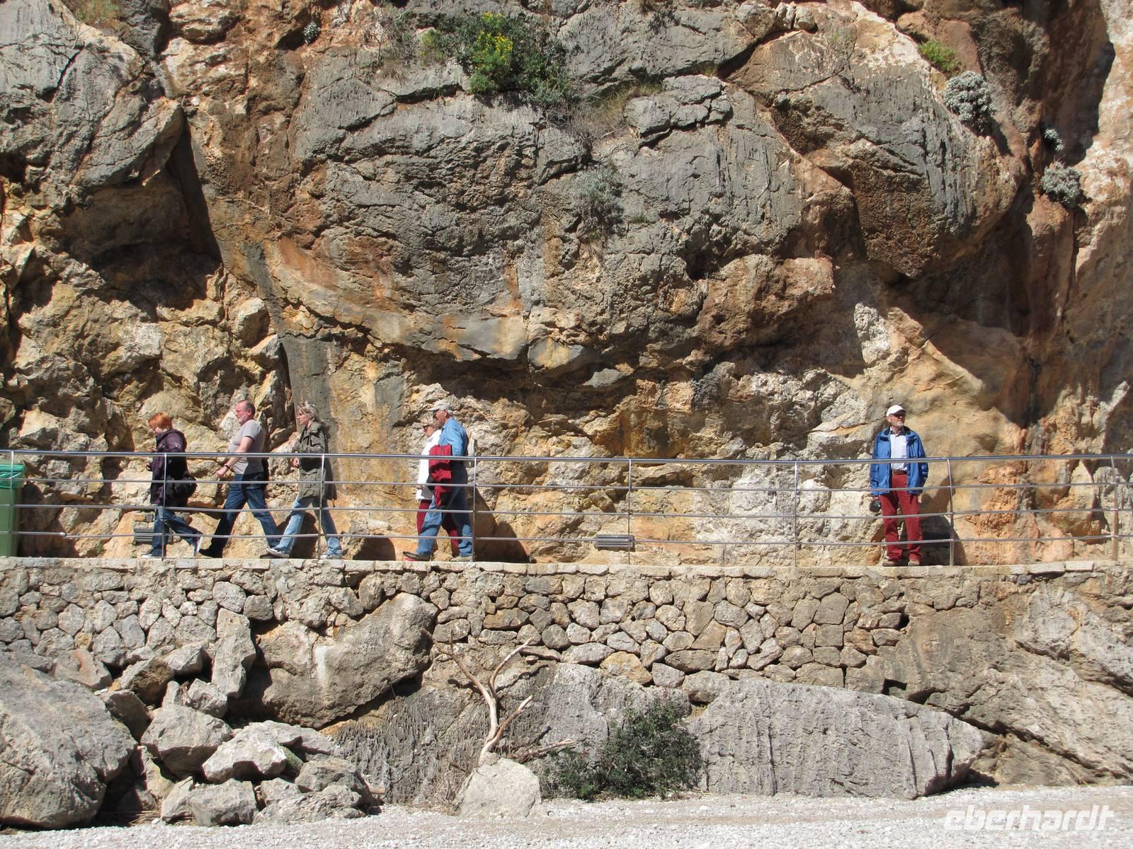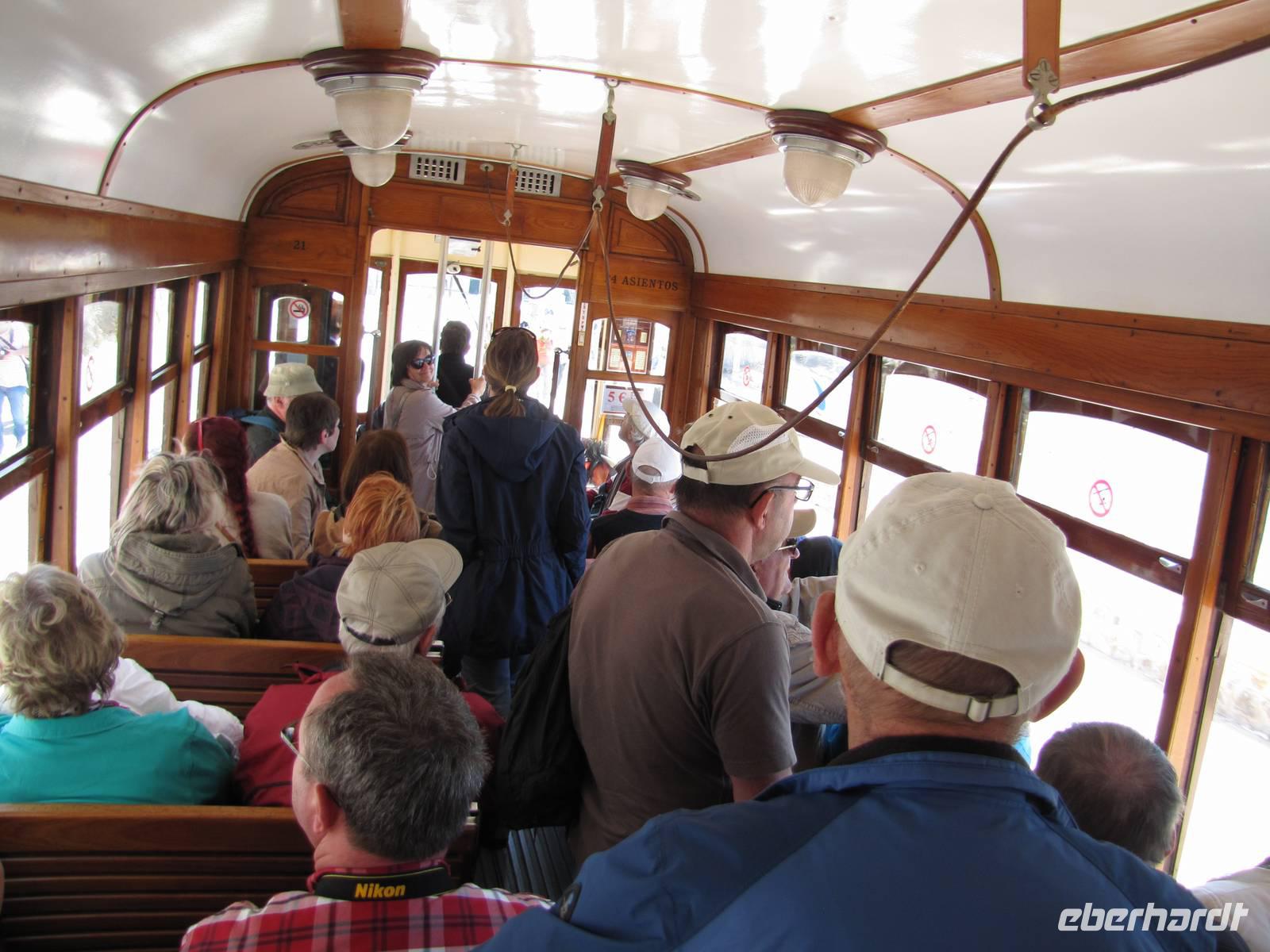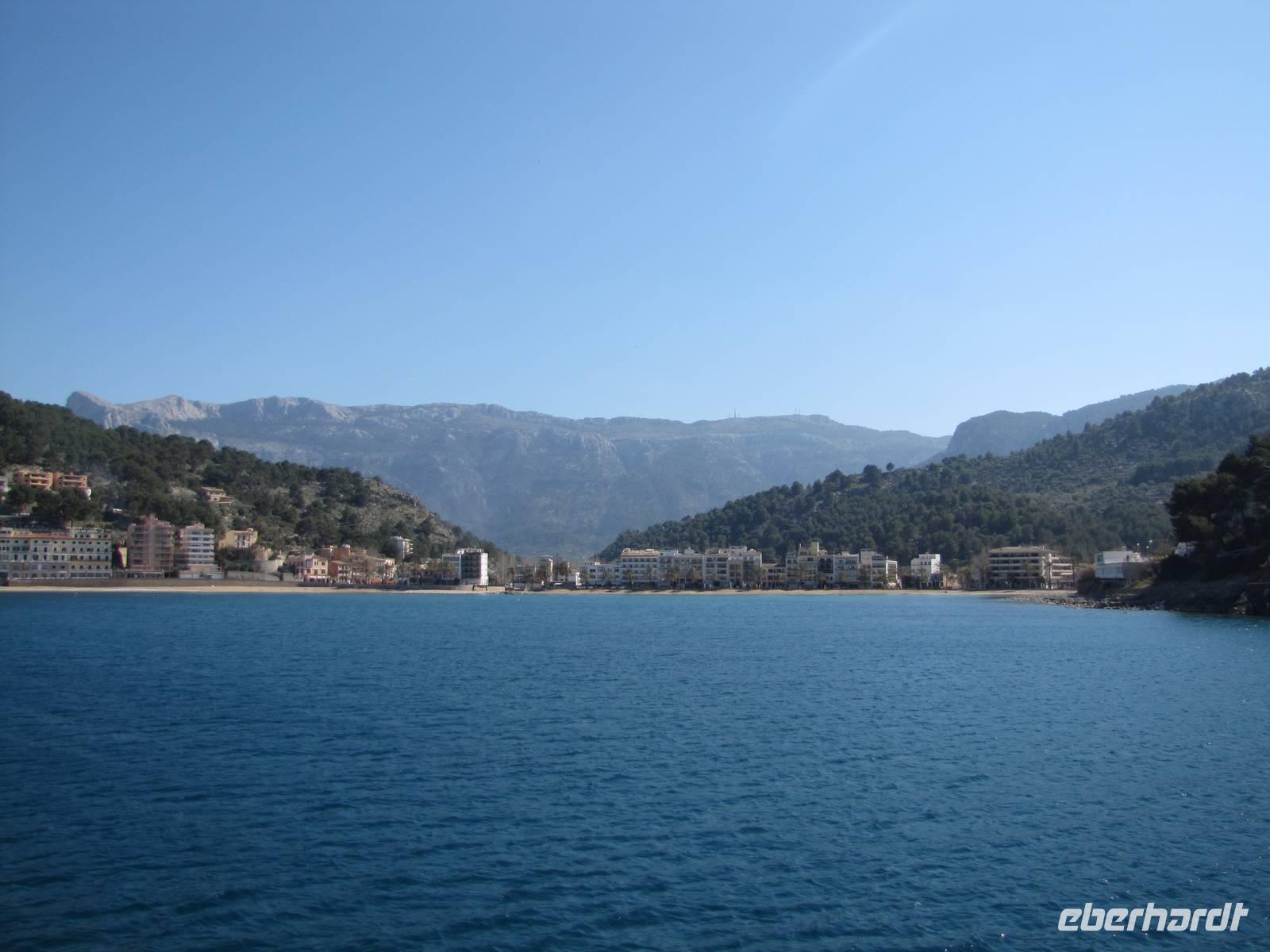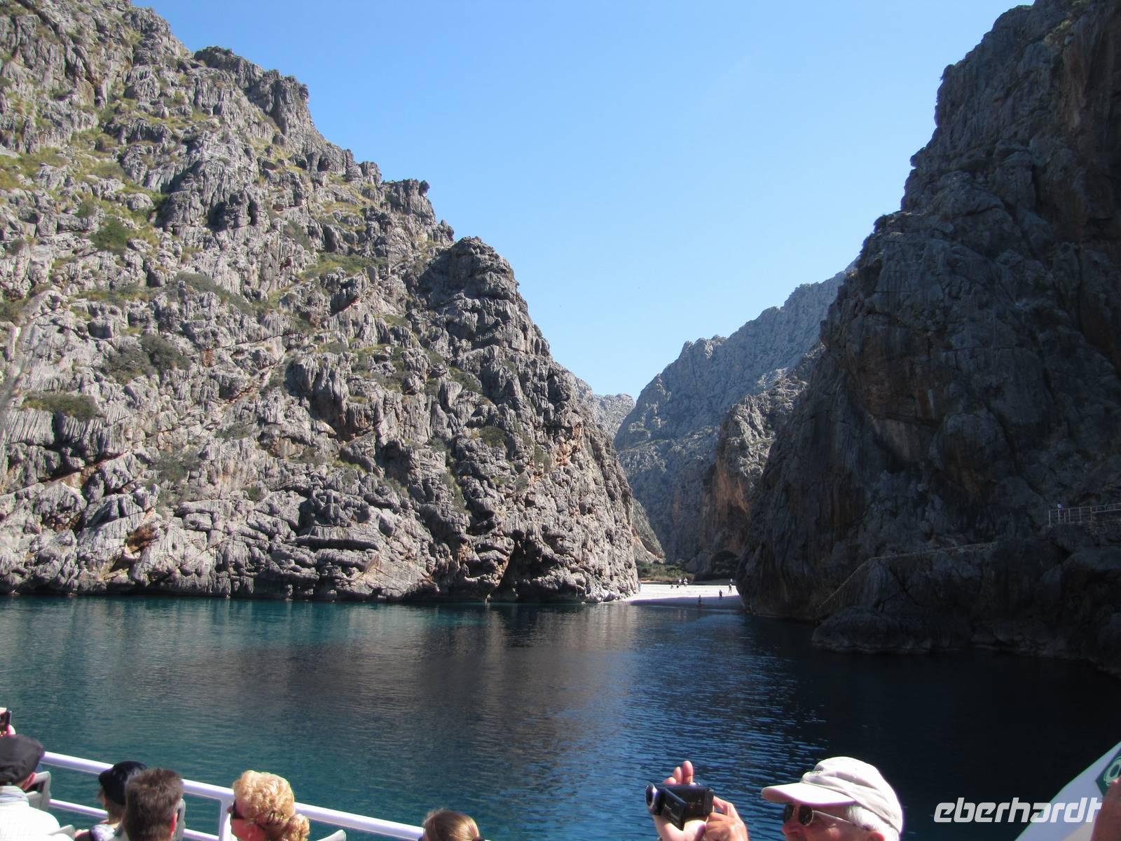Unterwegs stoppten wir für eine kleine Pause an einem Straßenstand, dort nutzten einige die Möglichkeit frisch gepressten Orangensaft zu trinken. Weiter ging es vorbei an einem Stausee, der die Wasserversorgung der Insel mit abdeckte und entlang steiler Felswände zum kleinen Hafenort Sa Calobra. Dort hatte jeder Zeit für eine ausgiebige Mittagspause und die Möglichkeit ca. 15min. in die benachbarte Schlucht zu spazieren. Gegen 13:30 trafen wir uns an der Bootsanlegestelle wieder um von da aus gemeinsam mit dem Boot weiter nach Porte de Soller zu fahren. Nach ca. eine Stunde Bootsfahrt bei wenig Wind und kaum Wellen erreichten wir das schöne Städtchen von wo aus wir mit der historischen Straßenbahn ca. 20min durch die Altstadt fuhren und danach in die nostalgische Eisenbahn aus dem 19. Jahrhundert umstiegen. Weiter ging es für 45min. im Zug bis kurz vor Palma. Die Eisenbahn, so erzählte uns Magdalena, wurde in London gebaut und 1911 nach Mallorca gebracht. Nach dieser schönen Bahnfahrt ging es mit dem Bus zurück zum Hotel. Nach einem schönen Tag ließen wir den Abend nach dem Abendessen bei einem kurzen Verdauungsspaziergang und einem Drink an der Bar ausklingen.