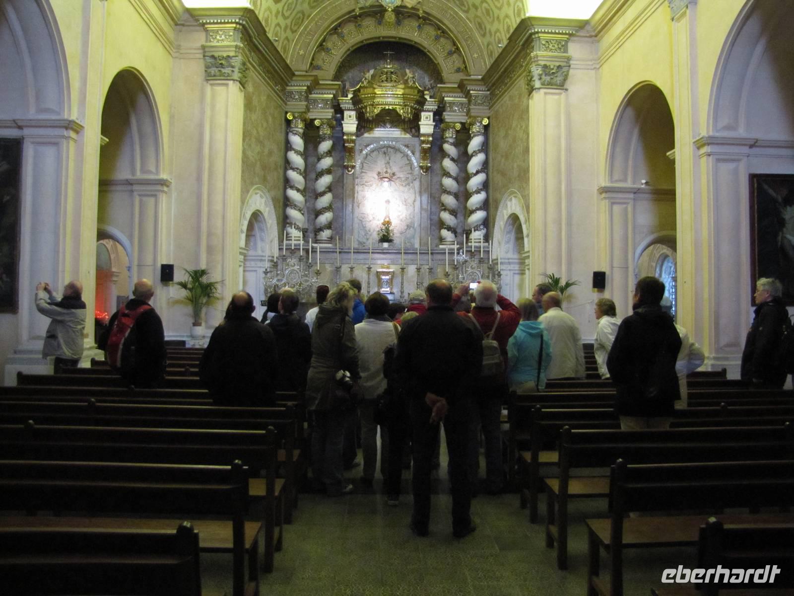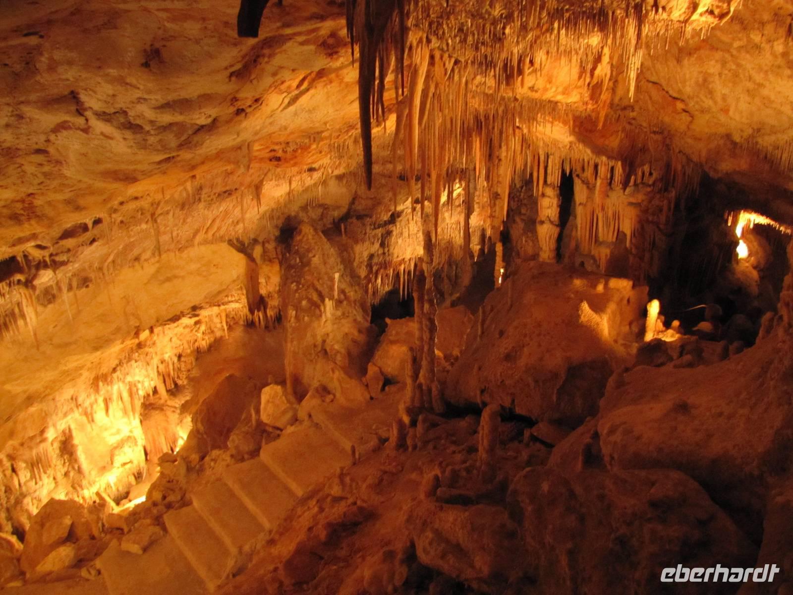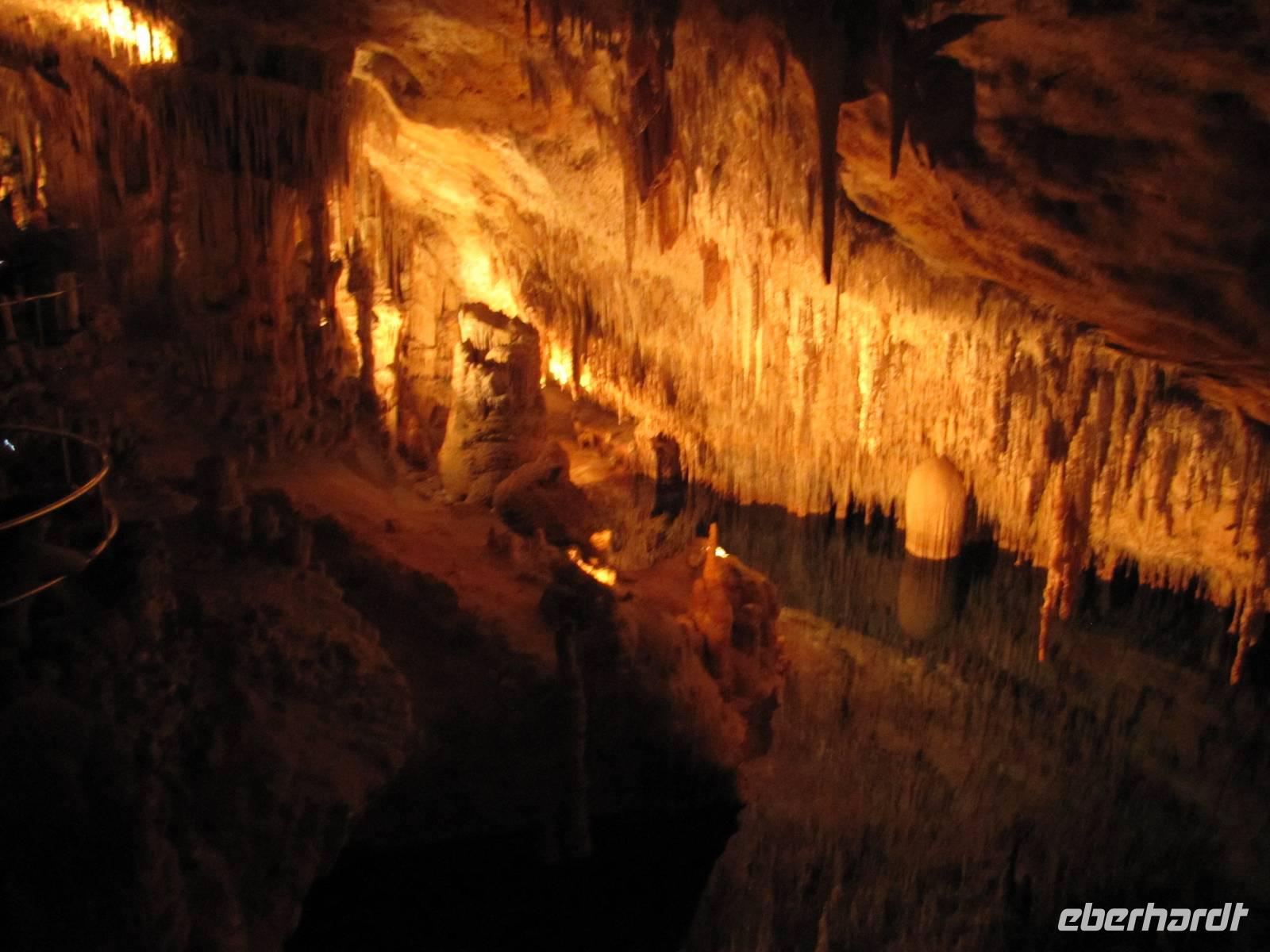 An unserem letzten Tag fuhren wir alle zusammen in den östlichen Teil der Insel, wo wir als erstes San Salvador, ein auf dem höchsten Berg der Umgebung gelegenes Heiligtum besuchten. Leider war heute der erste und einzige Tag an dem es bewölkt und nebelig war. So hatten wir leider keine gute Aussicht vom Berg aus ins Tal. Anschließend fuhren wir weiter zur bekanntesten Drachenhöhle Mallorcas. Ungefähr eine Stunde lang bestaunten wir die imposanten Stalaktiten und Stalakniten.